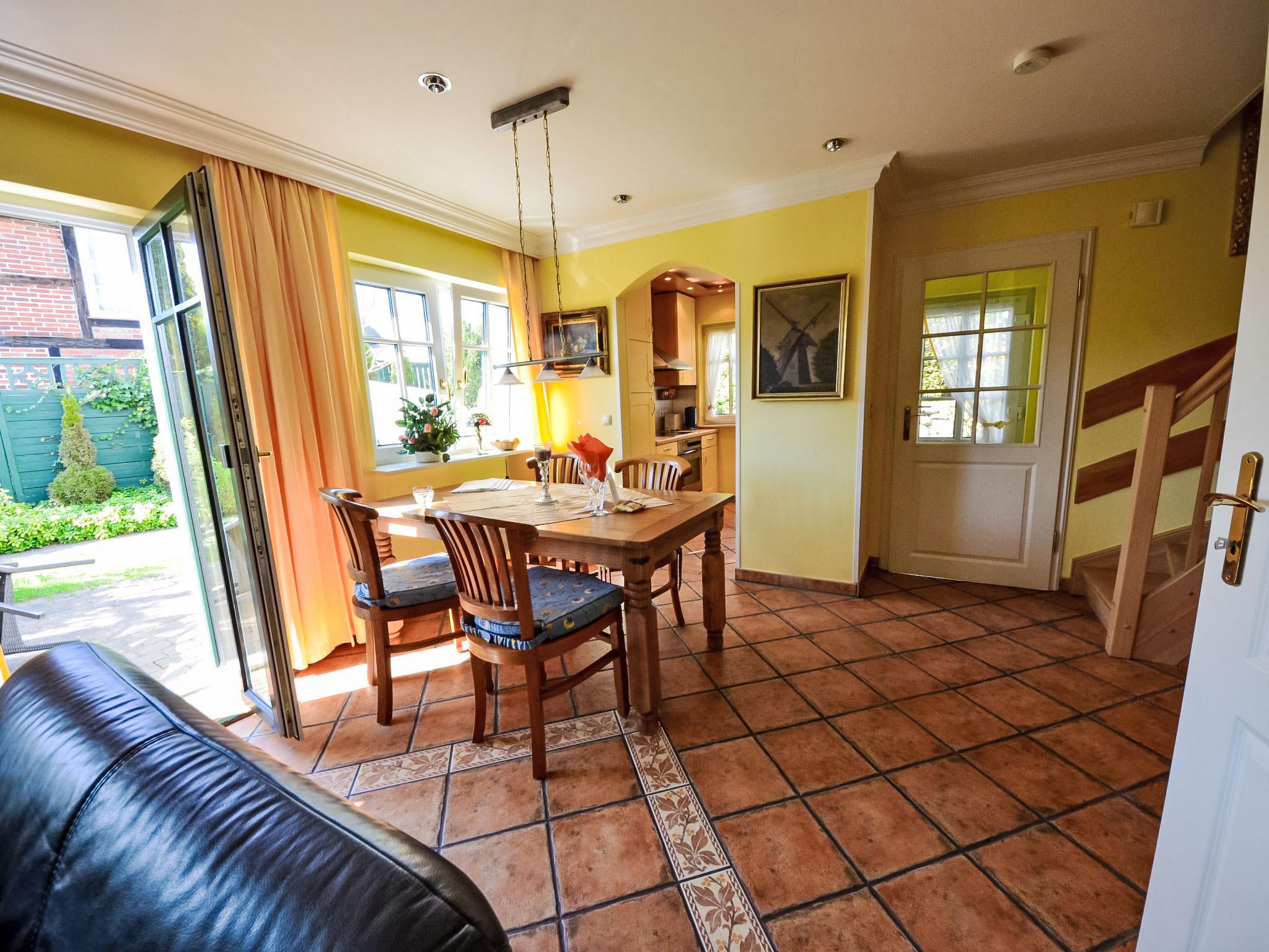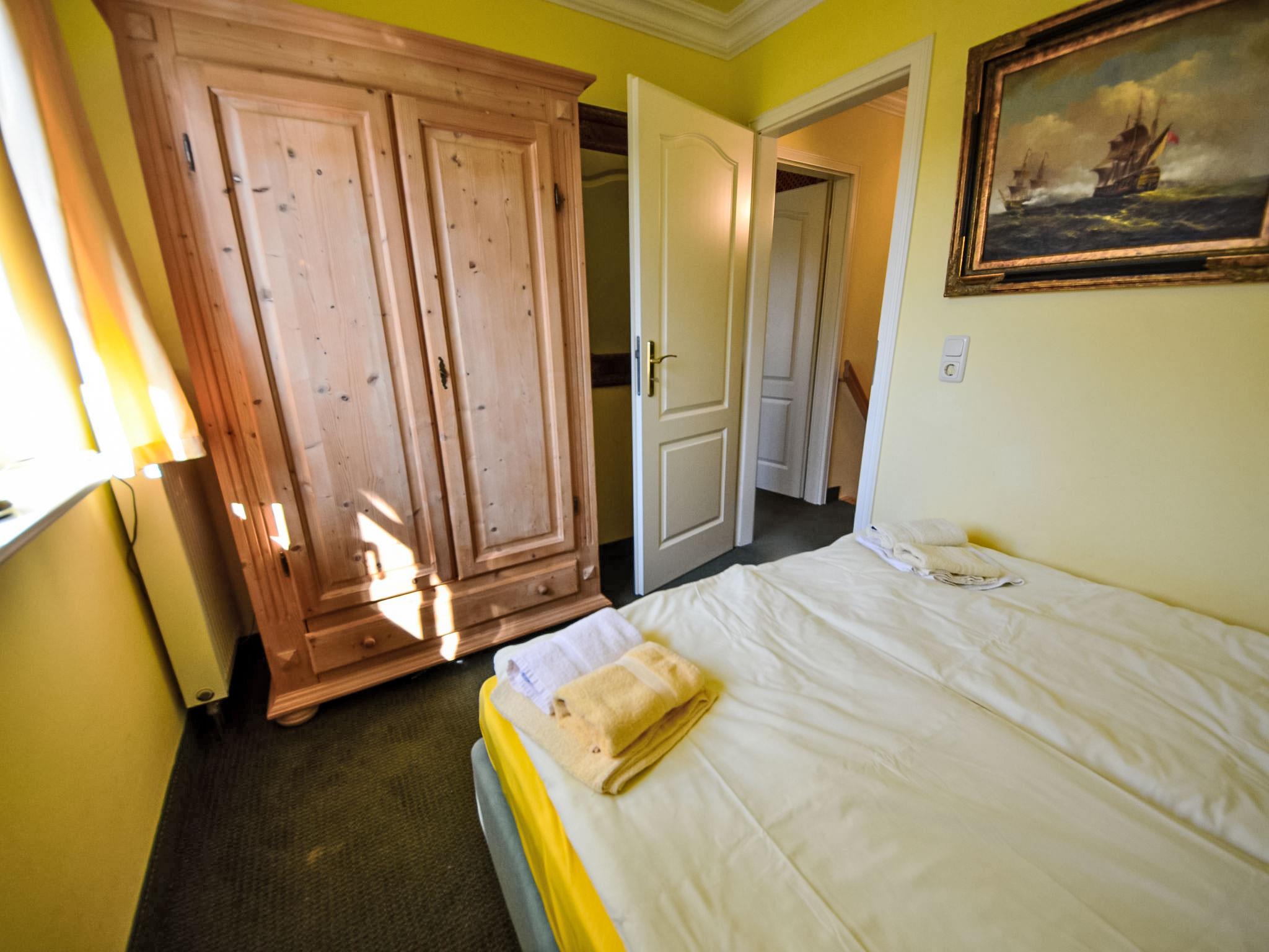 "Fischerhaus", 3-Zimmer-Reihenhaus 67 m2 auf 2 Stockwerken, im Erdgeschoss. Wohn-/Esszimmer mit Sat-TV, Video, CD und Stereoanlage. Offene Küche (Backofen, Geschirrspüler, Mikrowelle, elektrische Kaffeemaschine). Sep. WC. Obergeschoss: 2 abgeschrägte Doppelzimmer. Dusche/WC. Terrasse, kleiner Garten. Terrassenmöbel. Zur Verfügung: Waschmaschine, Wäschetrockner, Kinderhochstuhl. Internet (WLAN, gratis). Parkplatz (1 Auto) beim Haus. Bitte beachten: Nichtraucher-Haus. Maximal 1 Haustier/Hund erlaubt. Rauchmelder, Feuerlöscher. 1 kostenloser PKW-Stellplatz vorhanden, auf Wunsch und nach Vorbestellung können weitere Stellplätze zu je EUR 4.00/Tag in 300 m Entfernung bereitgestellt werden.