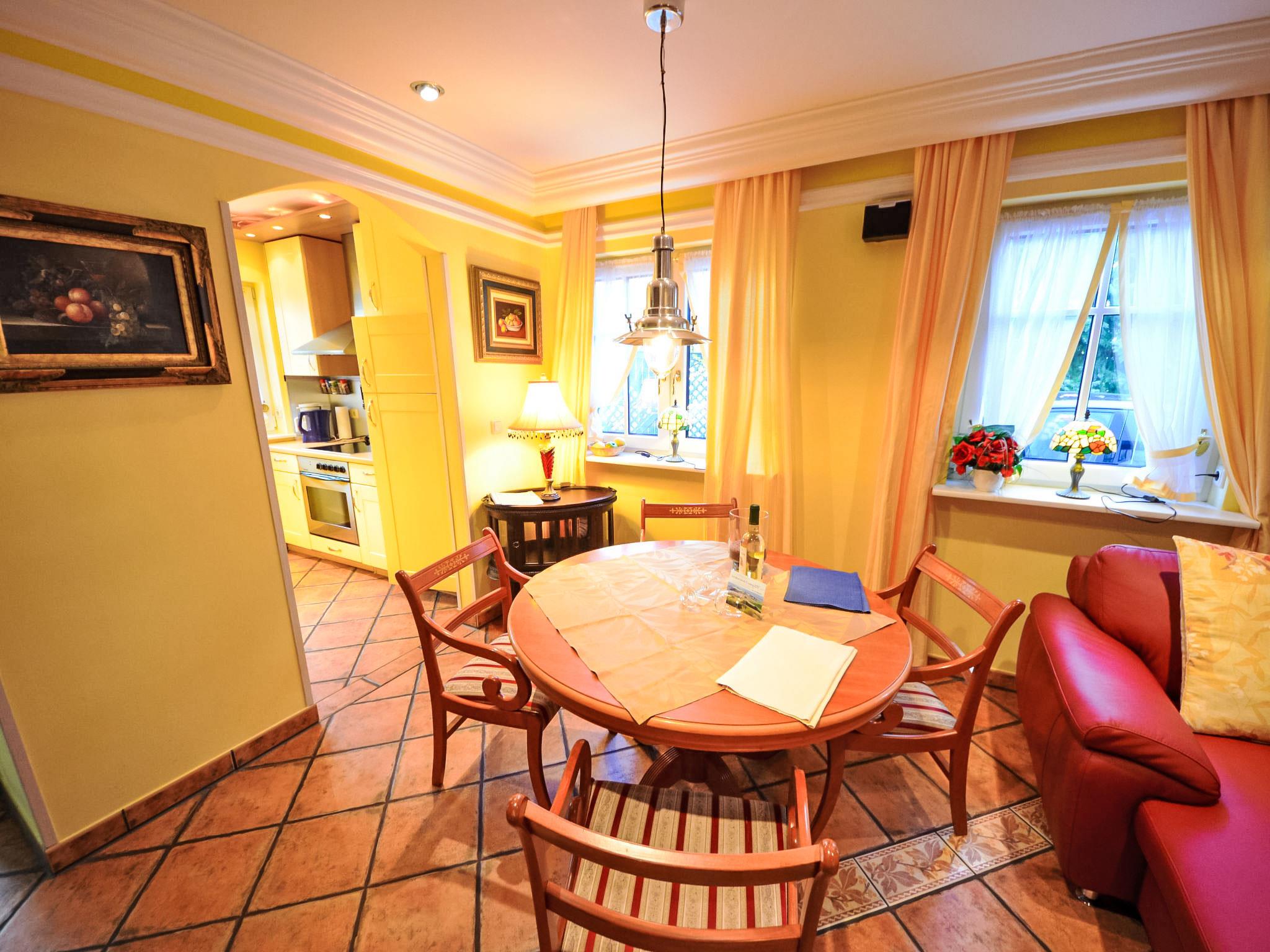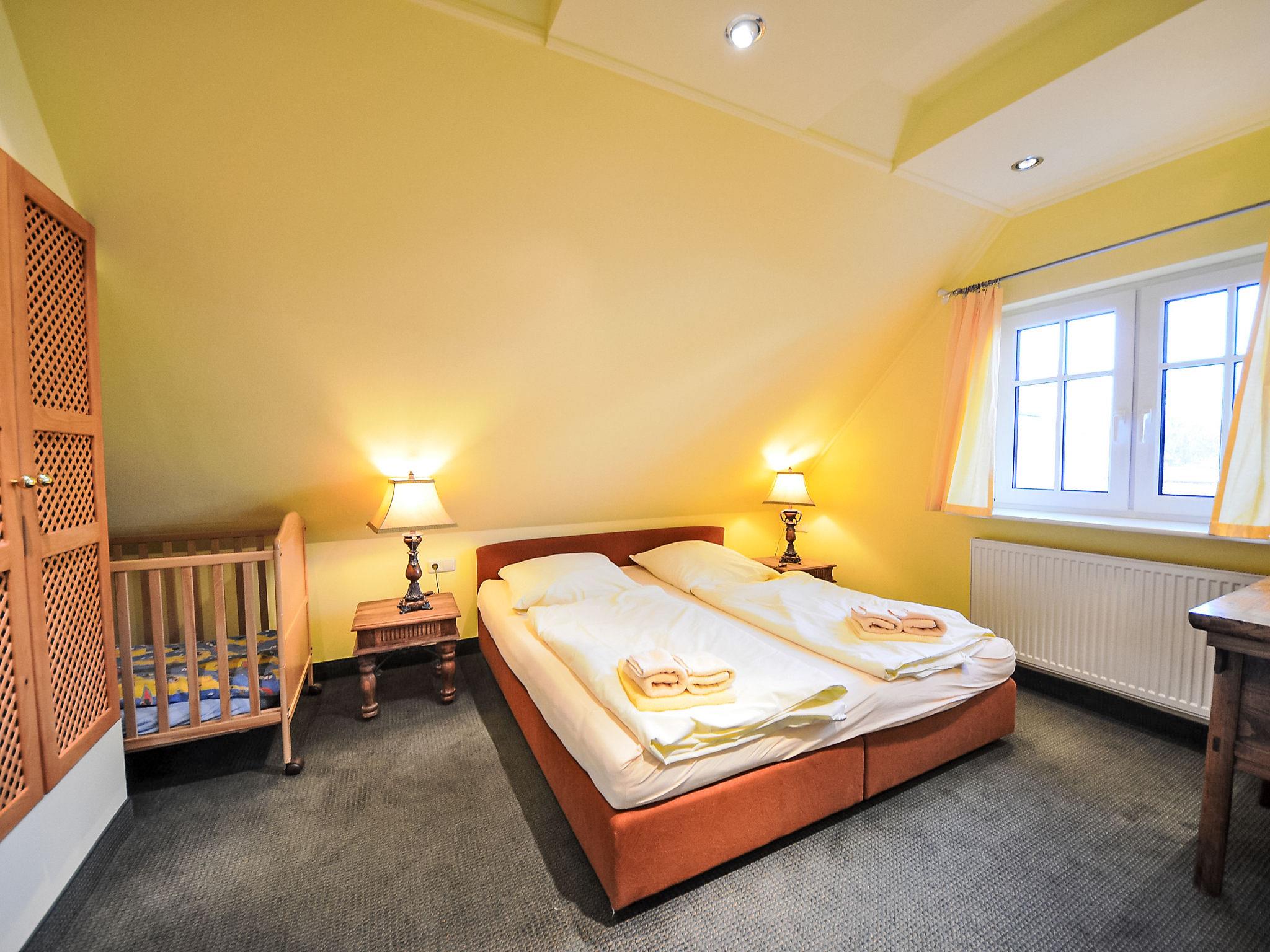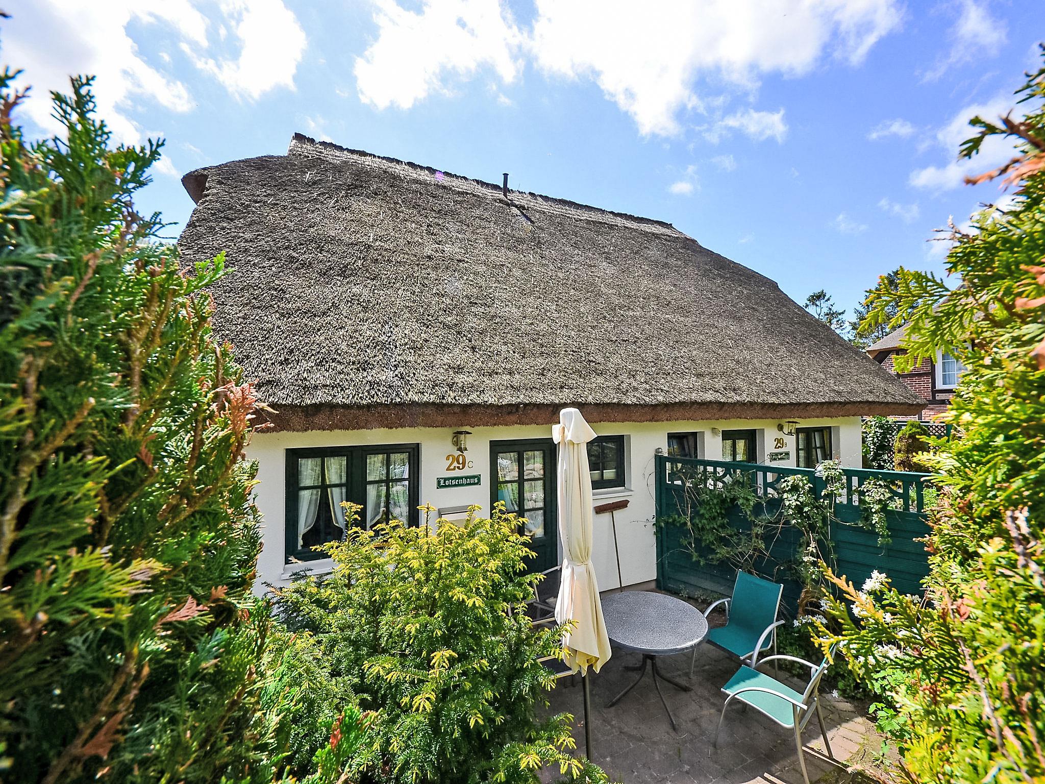 Reihenhaus. Im Ort, 700 m vom Meer, 2 km vom Strand. Im Hause: Zentralheizung. Parkplatz beim Haus. Lebensmittelgeschäft, Restaurant 200 m, Bushaltestelle 600 m, Bahnstation 20 km, Sandstrand 2 km, Freibad 13 km, Hallenbad 13 km, Badebucht 2 km. Golfplatz (18 Loch) 30 km, Reitstall 5 km. Die drei reetgedeckten Reihenhäuser und das dahinter liegende Doppelhaus (DE9098.120.1 und DE9098.120.2) sind hochwertig ausgestattet und die Inneneinrichtung ist bis ins Detail abgestimmt. Jedes Reihenhaus verfügt über einen mindestens 109 cm grossen TV-Bildschirm im Wohn-/Esszimmer.