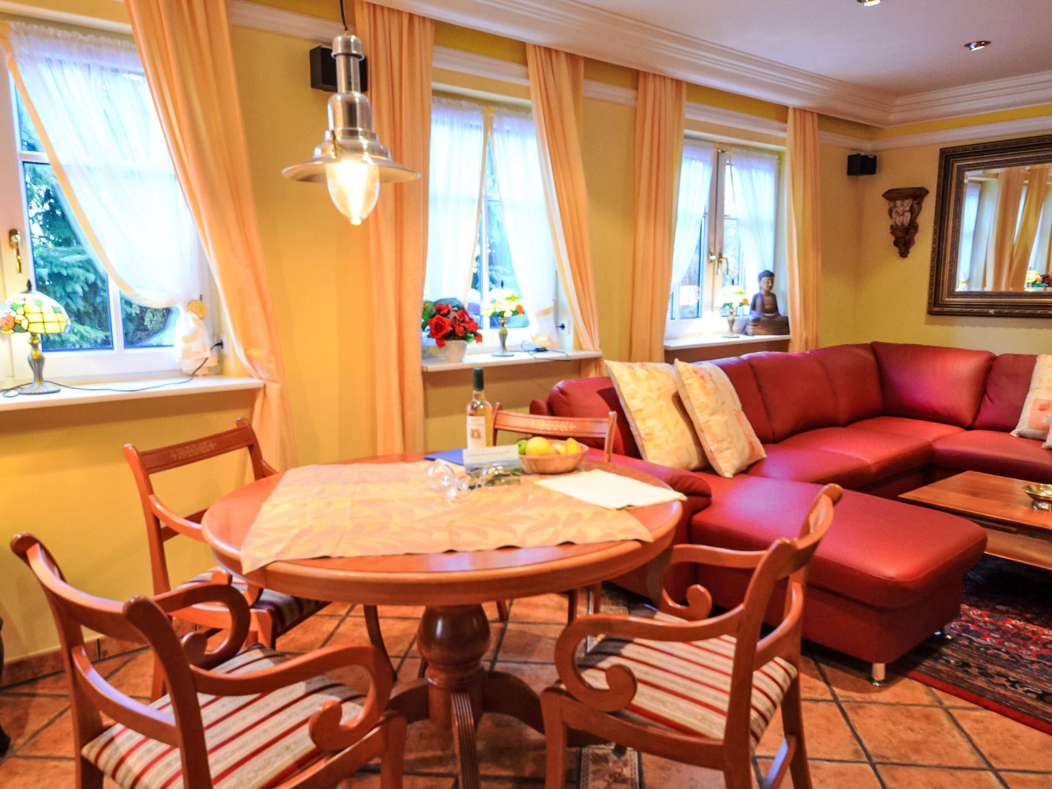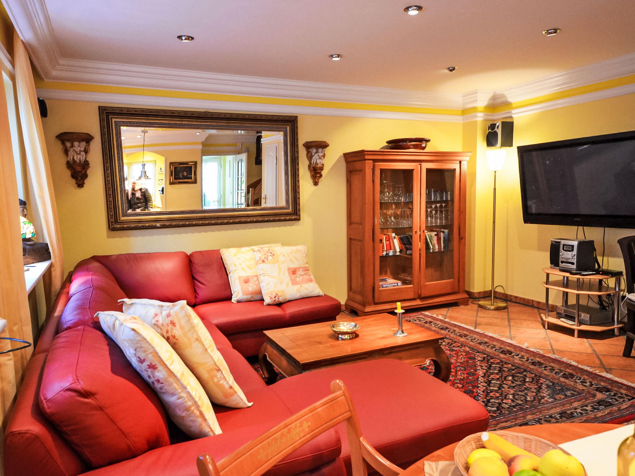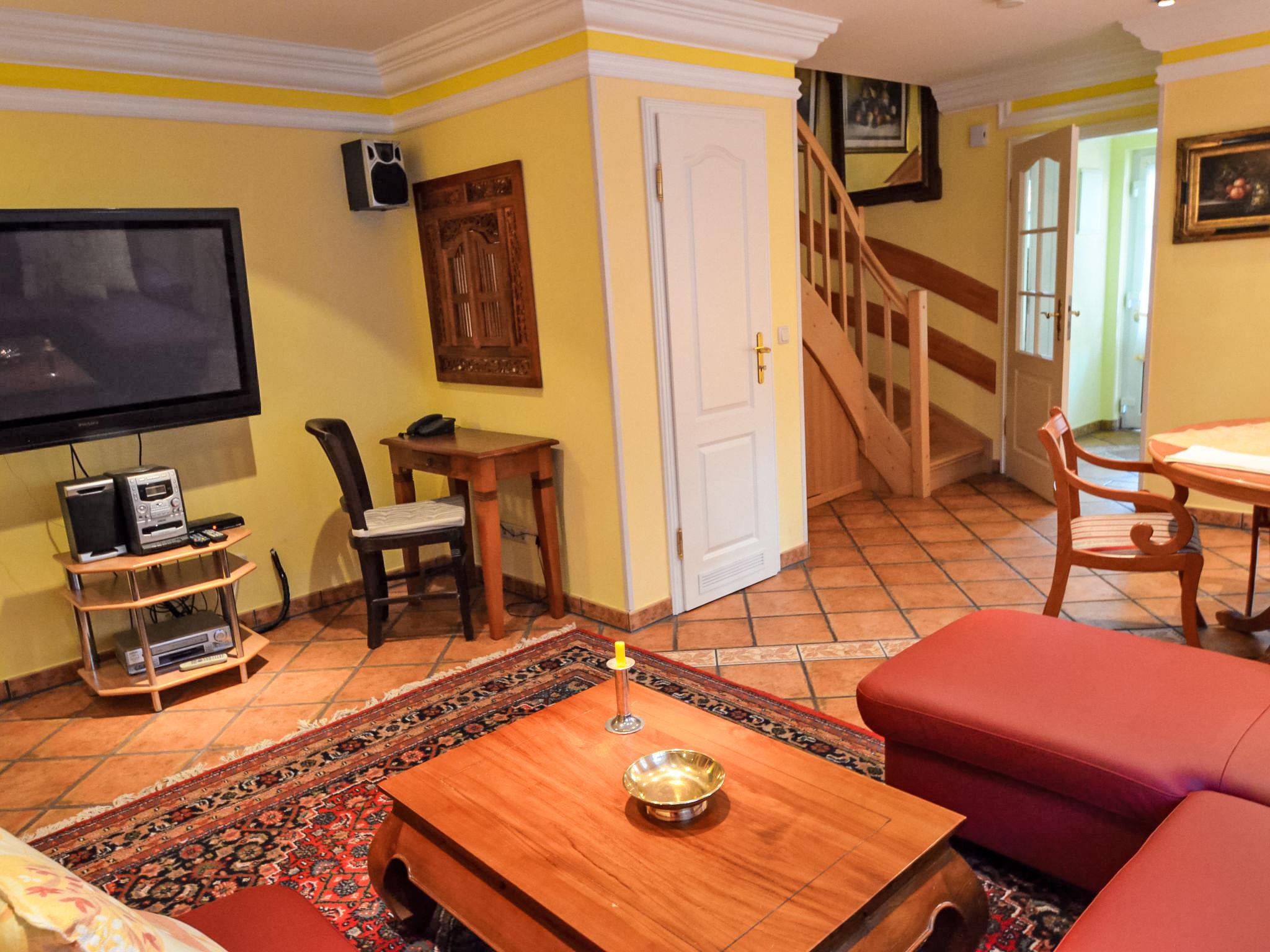 Reihenhaus. Im Ort, 700 m vom Meer, 2 km vom Strand. Im Hause: Zentralheizung. Parkplatz beim Haus. Lebensmittelgeschäft, Restaurant 200 m, Bushaltestelle 600 m, Bahnstation 20 km, Sandstrand 2 km, Freibad 13 km, Hallenbad 13 km, Badebucht 2 km. Golfplatz (18 Loch) 30 km, Reitstall 5 km. Die drei reetgedeckten Reihenhäuser und das dahinter liegende Doppelhaus (DE9098.120.1 und DE9098.120.2) sind hochwertig ausgestattet und die Inneneinrichtung ist bis ins Detail abgestimmt. Jedes Reihenhaus verfügt über einen mindestens 109 cm grossen TV-Bildschirm im Wohn-/Esszimmer.