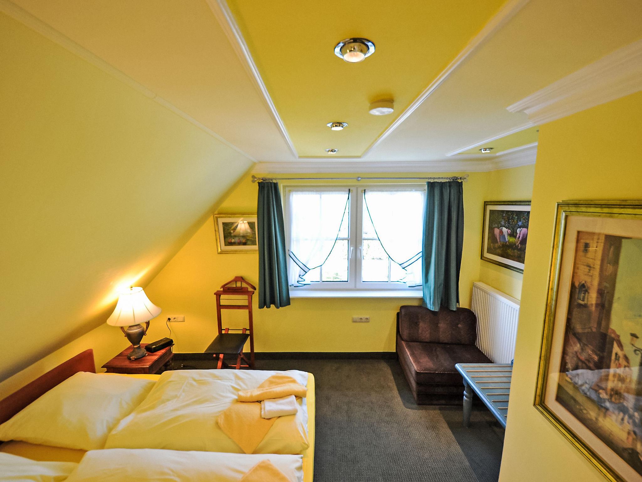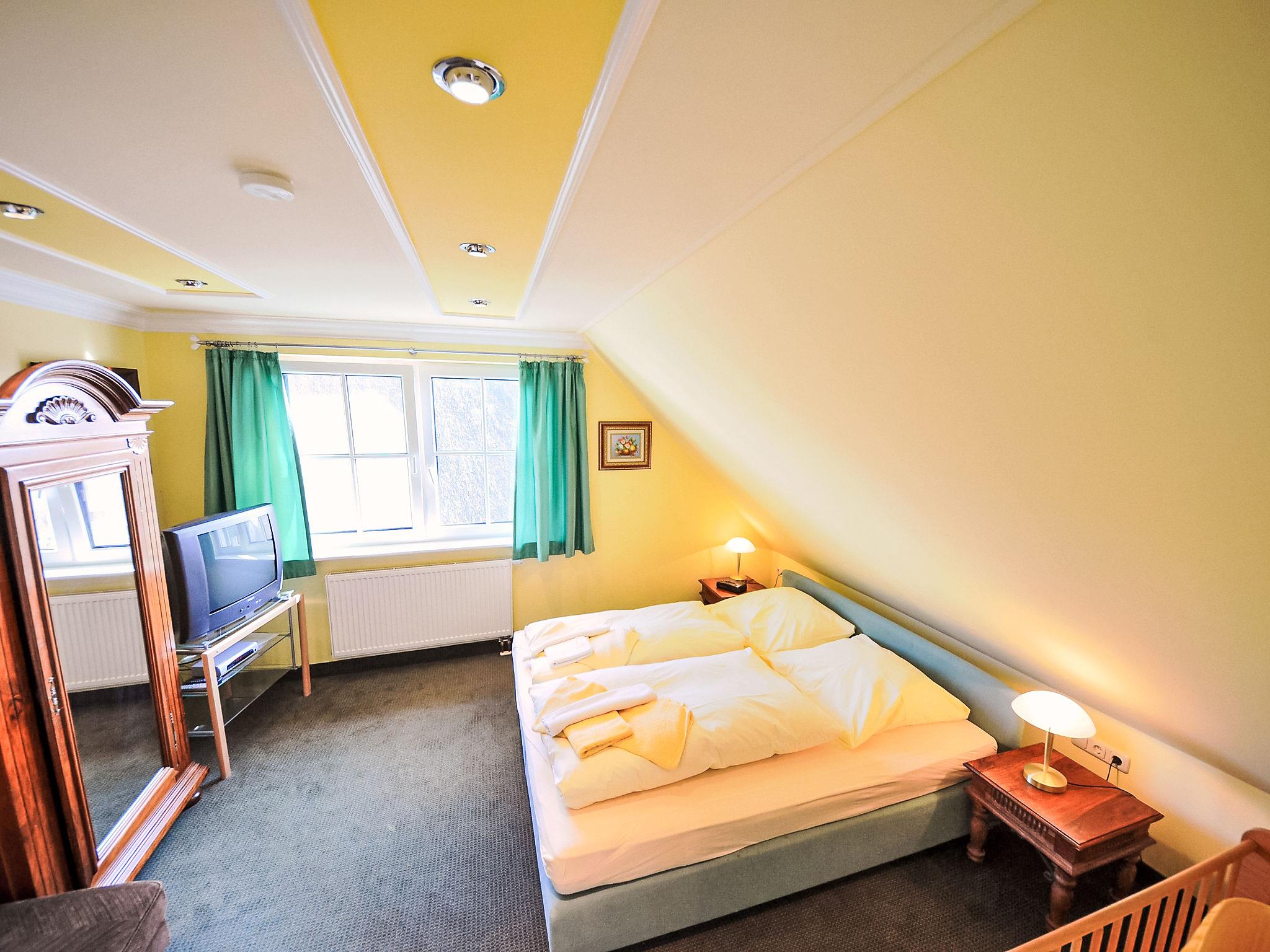 "Seeadler", 6-Zimmer-Doppelhaushälfte 103 m2 auf 3 Stockwerken, im Erdgeschoss. Wohn-/Esszimmer mit Sat-TV, Video, CD und Stereoanlage. 1 kleines Doppelzimmer. Offene Küche (Backofen, Geschirrspüler, Mikrowelle, elektrische Kaffeemaschine). Dusche/WC. Obergeschoss: 2 Doppelzimmer. Bad/Dusche/WC. Dachgeschoss: 2 abgeschrägte kleine Kinderzimmer, jedes Zimmer mit 1 Bett. Terrasse, kleiner Garten. Terrassenmöbel, Gartengrill. Zur Verfügung: Waschmaschine, Wäschetrockner, Kinderhochstuhl. Internet (Wireless LAN, gratis). Parkplatz (2 Autos) beim Haus. Bitte beachten: Nichtraucher-Haus. Maximal 1 Haustier/Hund erlaubt. Rauchmelder. Der TV-Bildschirm im Wohn-/Esszimmer ist 120 cm gross. 2 kostenlose PKW-Stellplätze vorhanden, auf Wunsch und nach Vorbestellung können weitere Stellplätze zu je EUR 4.00/Tag in 300 m Entfernung bereitgestellt werden.