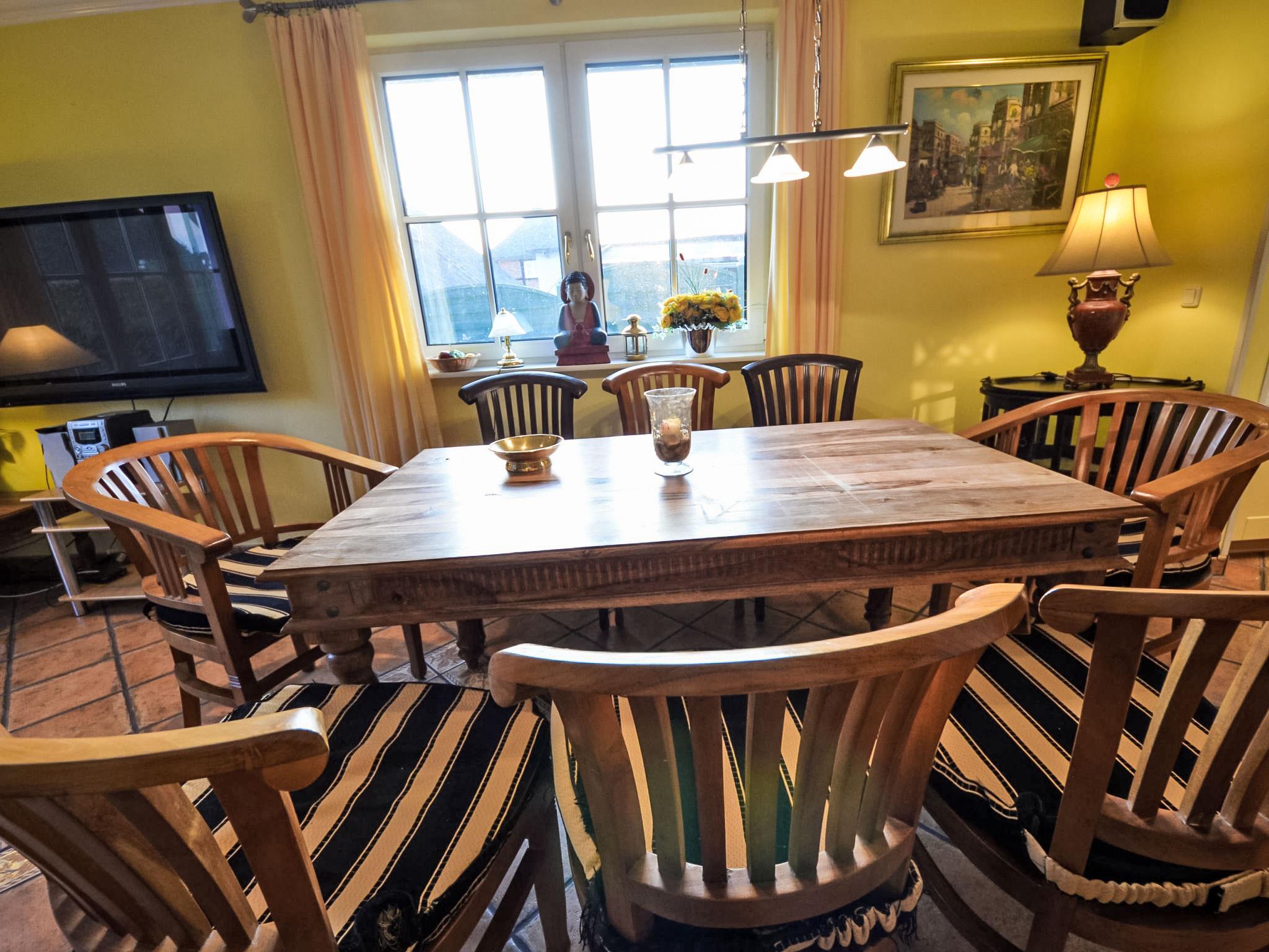 Doppelhaus. Im Ort, 700 m vom Meer, 2 km vom Strand. Im Hause: Zentralheizung. Parkplatz beim Haus. Lebensmittelgeschäft, Restaurant 200 m, Bushaltestelle 600 m, Bahnstation 20 km, Sandstrand 2 km, Freibad 13 km, Hallenbad 13 km, Badebucht 2 km. Golfplatz (18 Loch) 30 km, Reitstall 5 km. Das Doppelhaus und die drei davor liegenden, reetgedeckten, Reihenhäuser (DE9098.110.1 - DE9098.110.3) sind hochwertig ausgestattet und die Inneneinrichtung ist bis ins Detail abgestimmt. Jede Doppelhaushälfte verfügt über ein zweites Sat-TV (72 cm) in einem der Schlafzimmer.