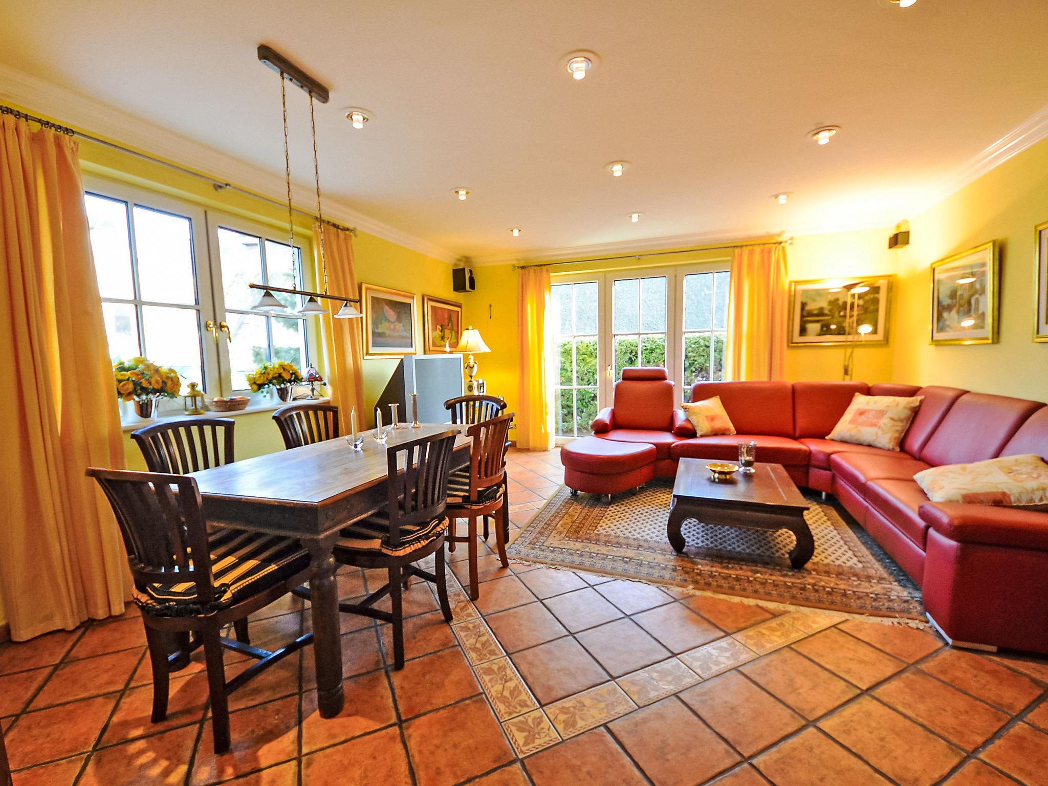 "Kormoran", 5-Zimmer-Doppelhaushälfte 100 m2 auf 3 Stockwerken, im Erdgeschoss. Wohn-/Esszimmer mit Sat-TV, Video, CD und Stereoanlage. Offene Küche (Backofen, Geschirrspüler, Mikrowelle, elektrische Kaffeemaschine). Dusche/WC. Obergeschoss: 2 Doppelzimmer. Bad/Dusche/WC. Dachgeschoss: 2 abgeschrägte kleine Kinderzimmer, jedes Zimmer mit 1 Bett. Terrasse, kleiner Garten. Terrassenmöbel, Gartengrill. Zur Verfügung: Waschmaschine, Wäschetrockner, Kinderhochstuhl. Internet (Wireless LAN, gratis). Parkplatz (2 Autos) beim Haus. Bitte beachten: Nichtraucher-Haus. Maximal 1 Haustier/Hund erlaubt. Rauchmelder. Der TV-Bildschirm im Wohn-/Esszimmer ist 109 cm gross. 2 kostenlose PKW-Stellplätze vorhanden, auf Wunsch und nach Vorbestellung können weitere Stellplätze zu je EUR 4.00/Tag in 300 m Entfernung bereitgestellt werden.