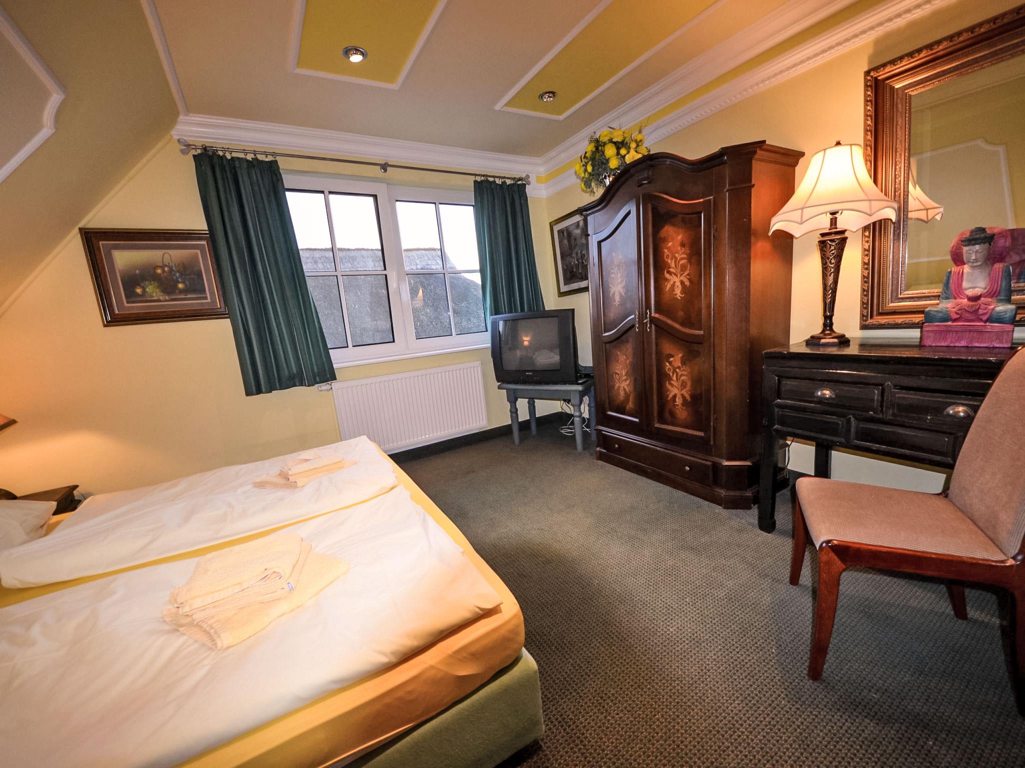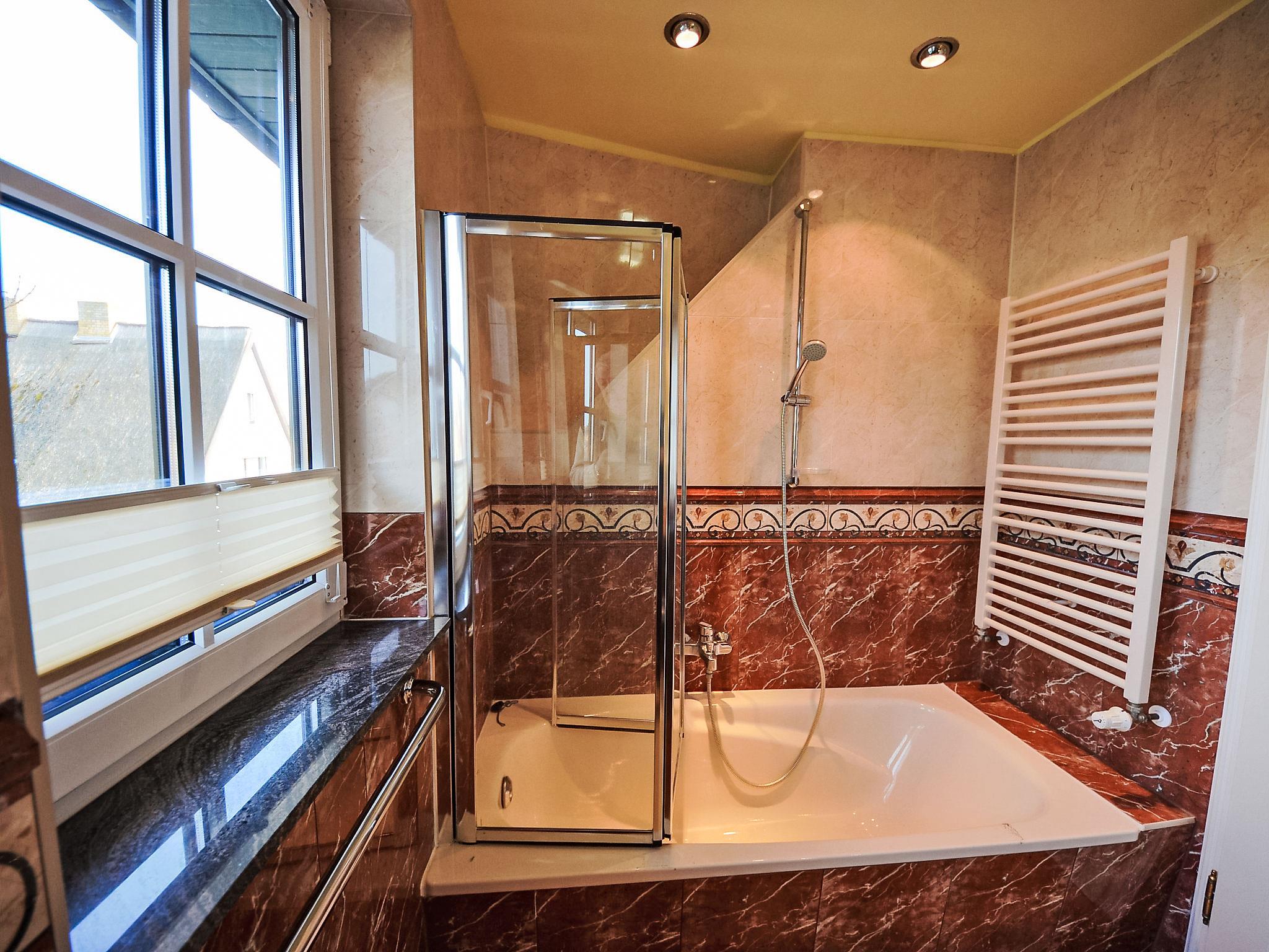 Doppelhaus. Im Ort, 700 m vom Meer, 2 km vom Strand. Im Hause: Zentralheizung. Parkplatz beim Haus. Lebensmittelgeschäft, Restaurant 200 m, Bushaltestelle 600 m, Bahnstation 20 km, Sandstrand 2 km, Freibad 13 km, Hallenbad 13 km, Badebucht 2 km. Golfplatz (18 Loch) 30 km, Reitstall 5 km. Das Doppelhaus und die drei davor liegenden, reetgedeckten, Reihenhäuser (DE9098.110.1 - DE9098.110.3) sind hochwertig ausgestattet und die Inneneinrichtung ist bis ins Detail abgestimmt. Jede Doppelhaushälfte verfügt über ein zweites Sat-TV (72 cm) in einem der Schlafzimmer.