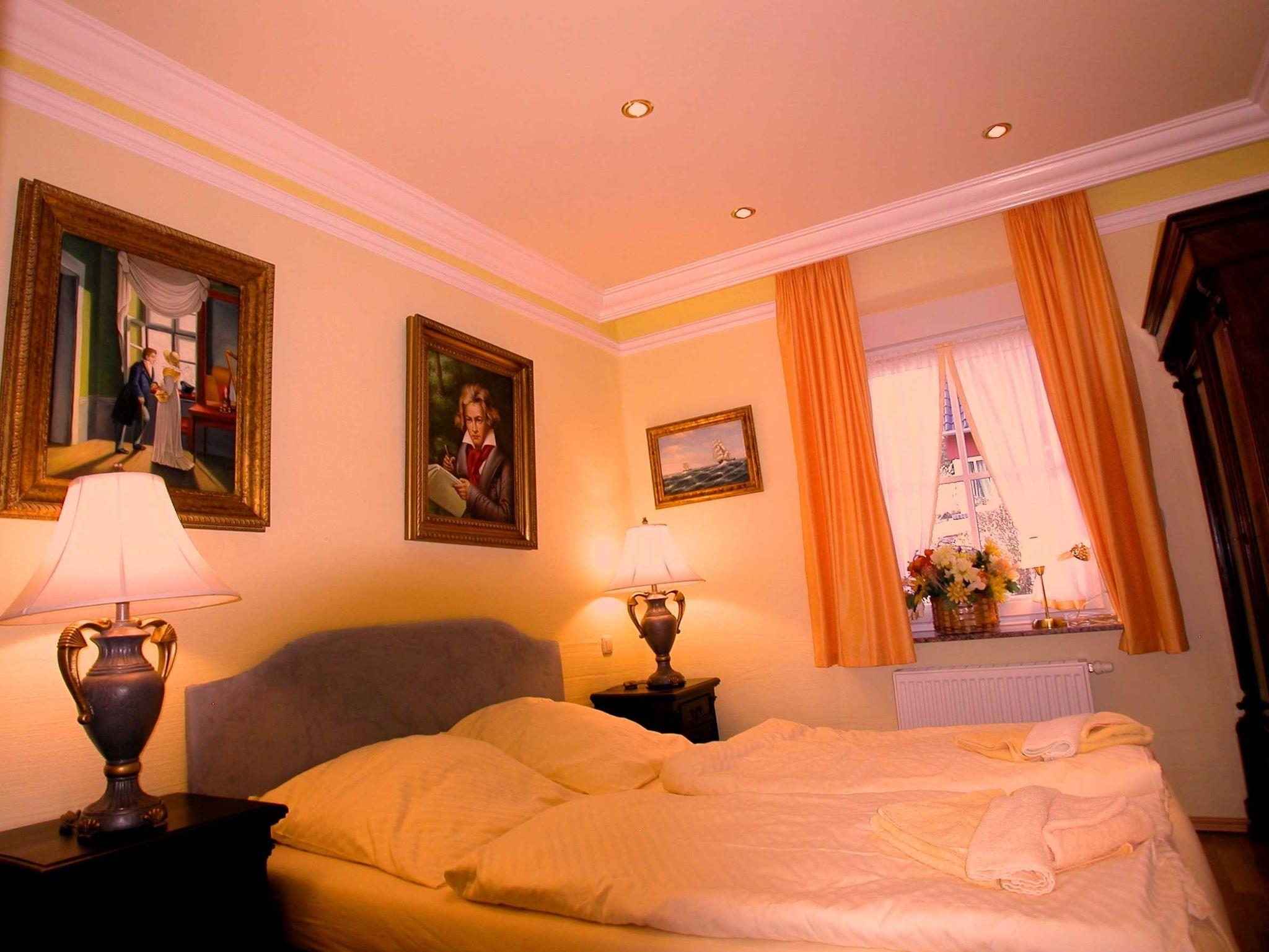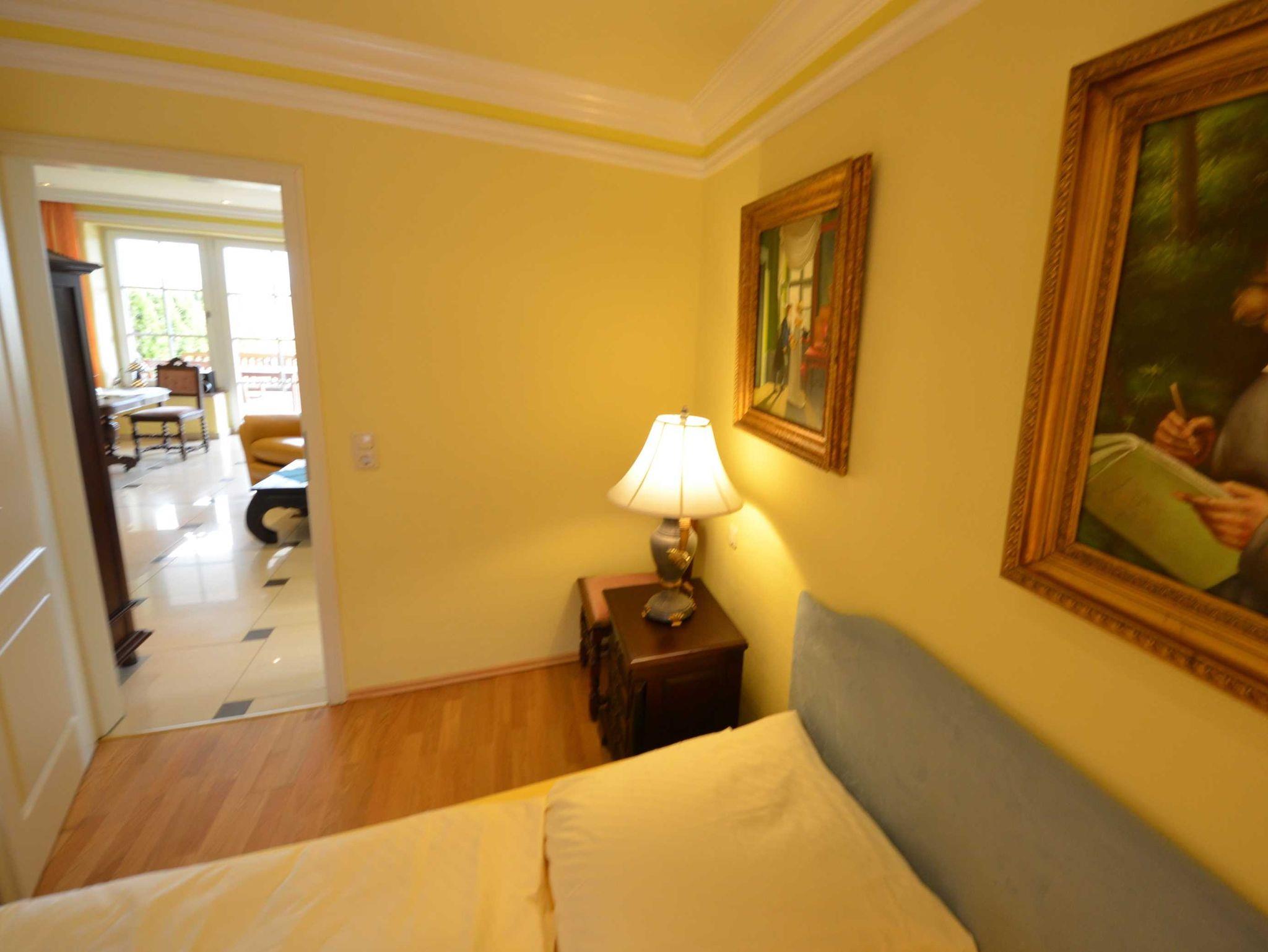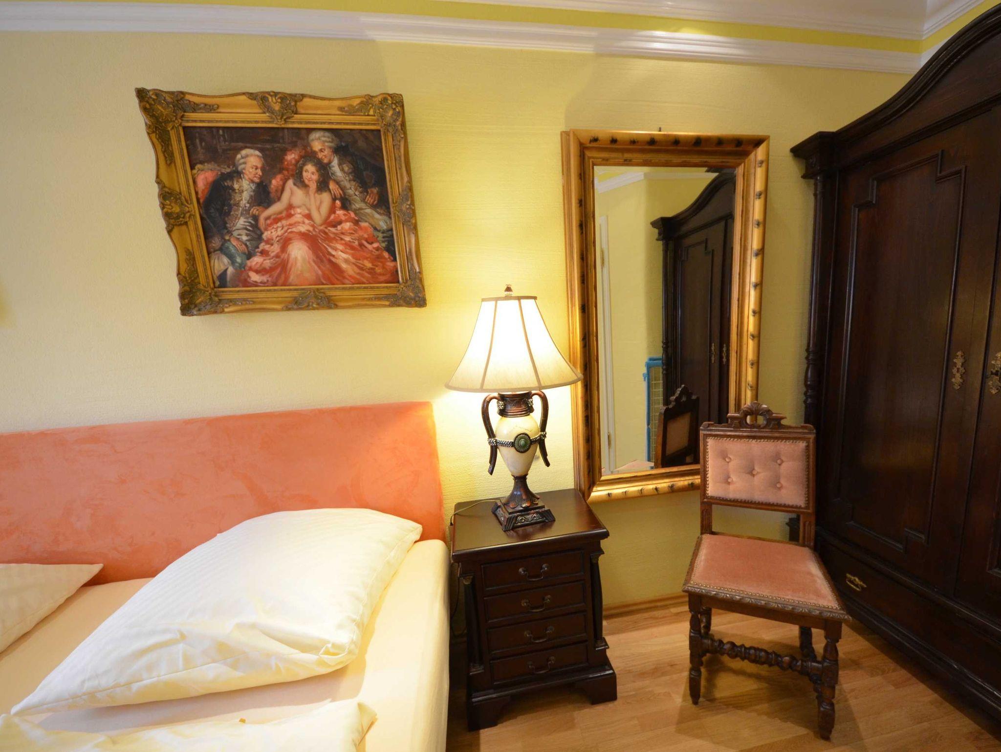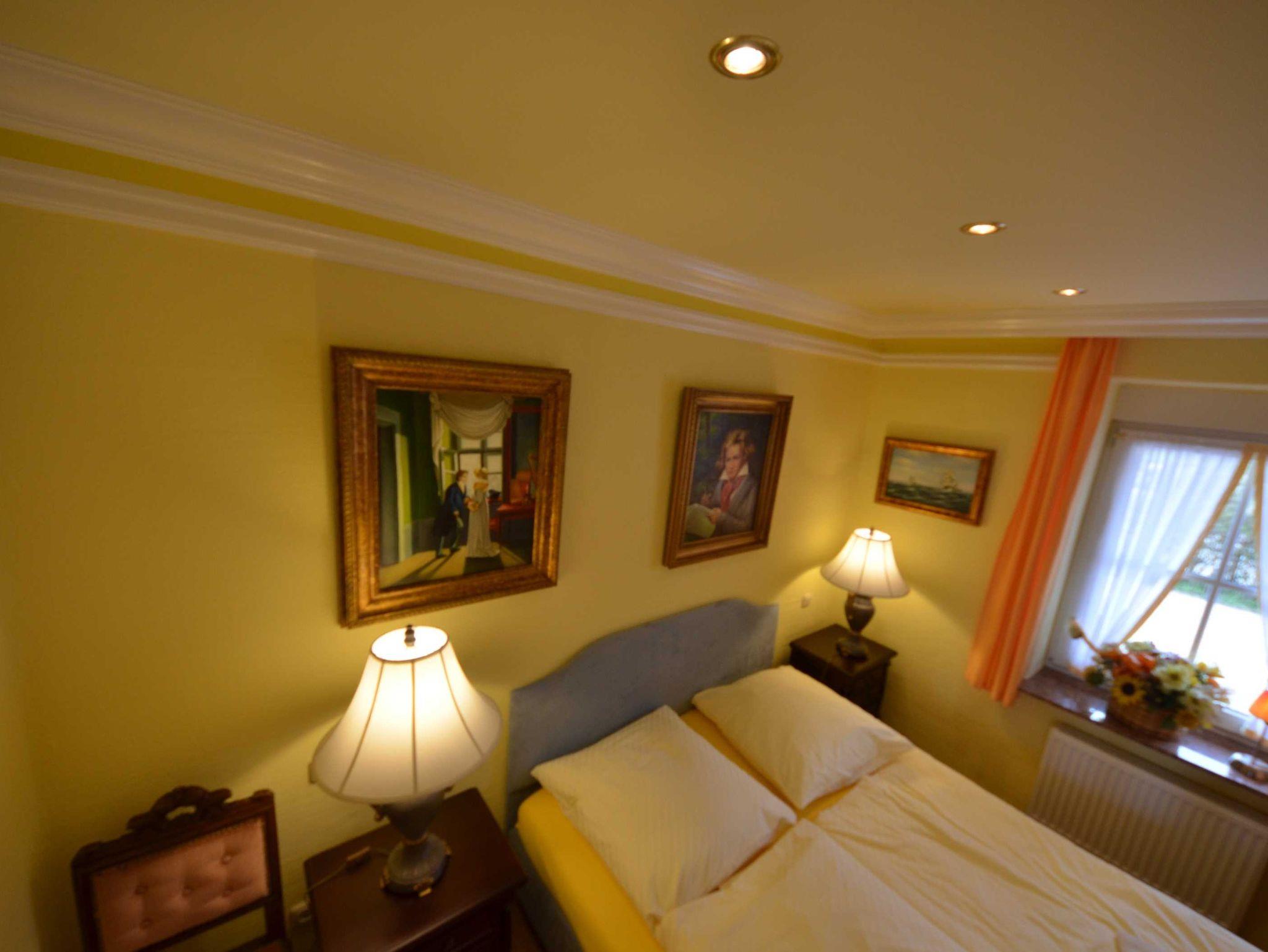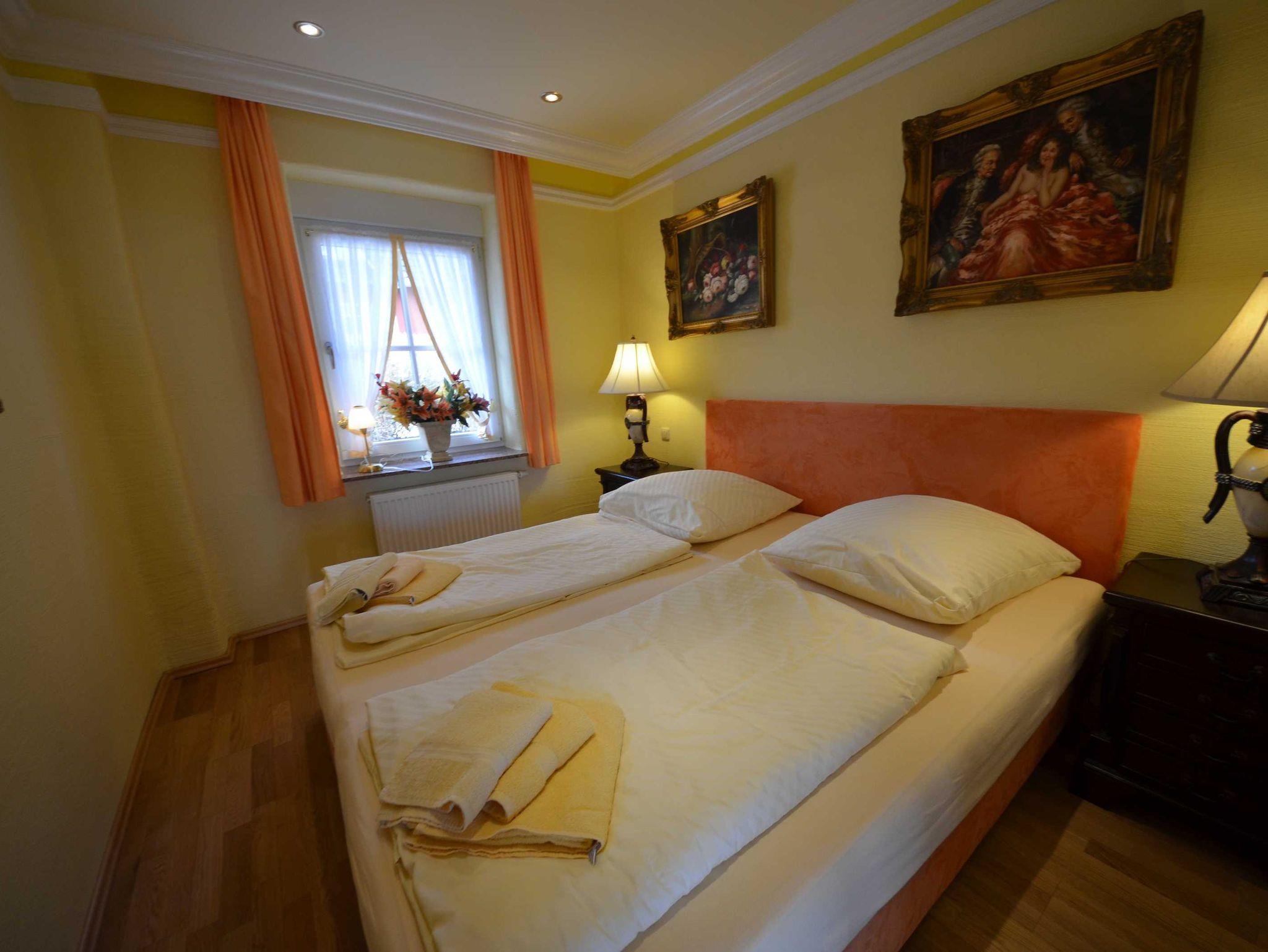 Zwei Doppel-Schlafzimmer mit Doppelbett 1,80 x 2,00 m und einmal mit 1,60 x 2,00 m und aufgezogener Bettwäsche. Radiowecker, Wände mit Bildern dekoriert, antiker Gründerzeit-Wäsche-/Kleiderschrank, elektrische Rollläden, Fenster mit Mückenschutz. Nach Voranmeldung: ein Babyreisebett (kostenlos) mit Bettwäsche.