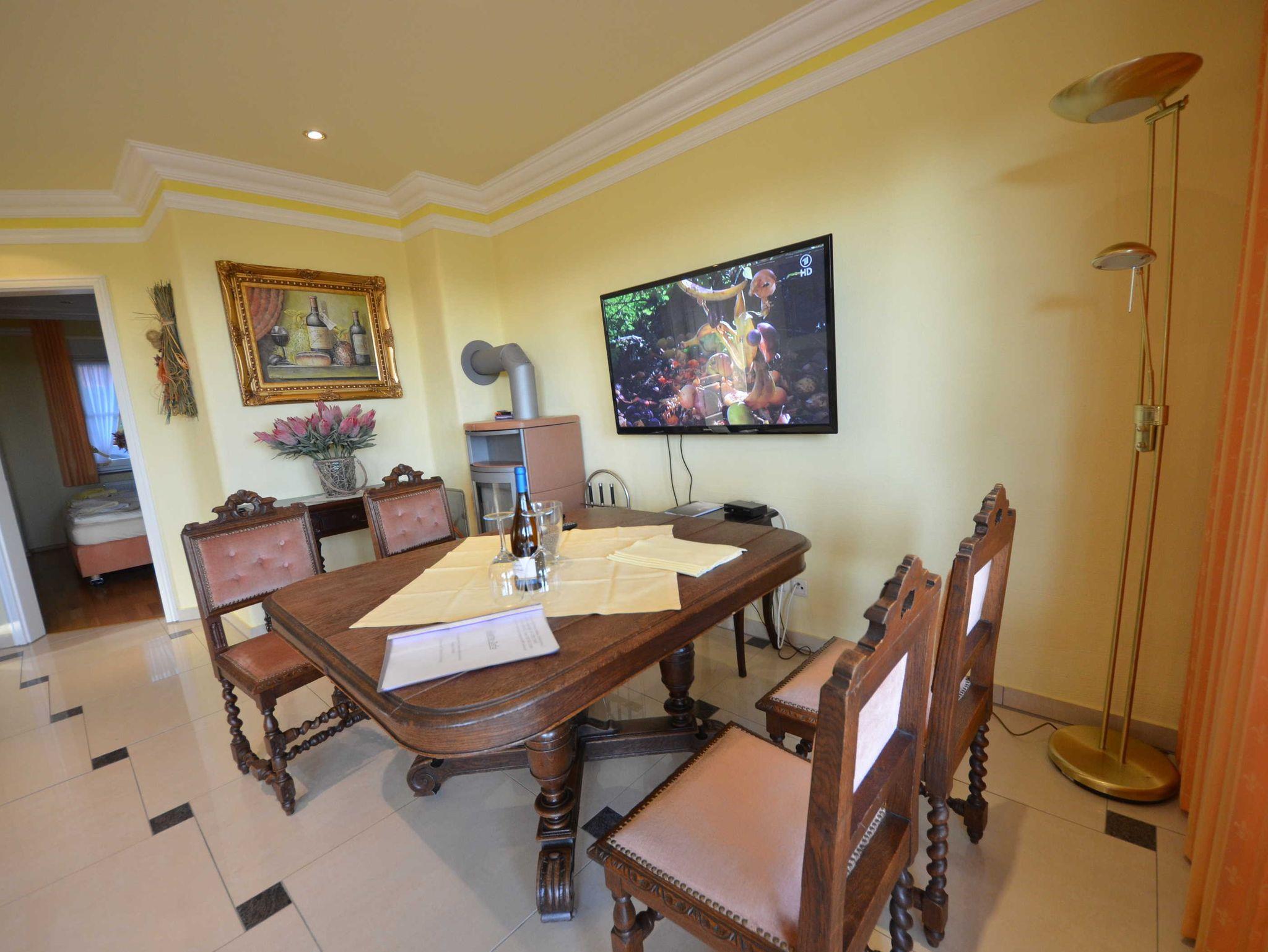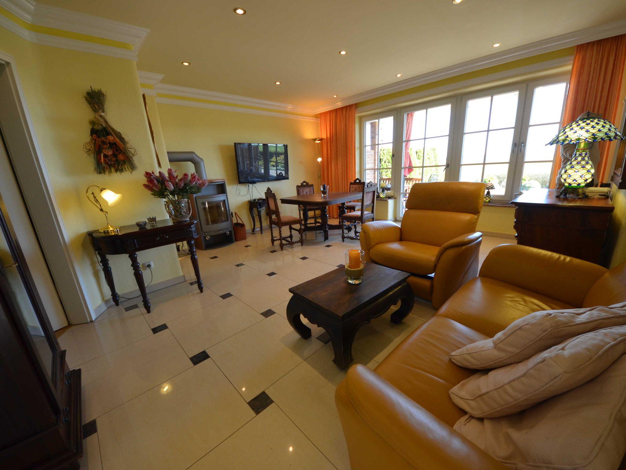 Die Sprossenfenster vermitteln eine gemütliche Atmosphäre und passen zum Charakter des Dorfes. Großzügiges Wohn-/Esszimmer, mit Stereo, CD, teils antike Schränke, Garderobe, Schuhschrank, Ledergarnitur, Opiumtisch, Geschirrschrank, Spiegel, Wände dekoriert mit Gemälden. Die Schlafzimmer sind mit Spiegeln und Gemälden dekoriert, teils elektrische Rollläden und Fliegenrollos mit antiken oder Einbauschränken.