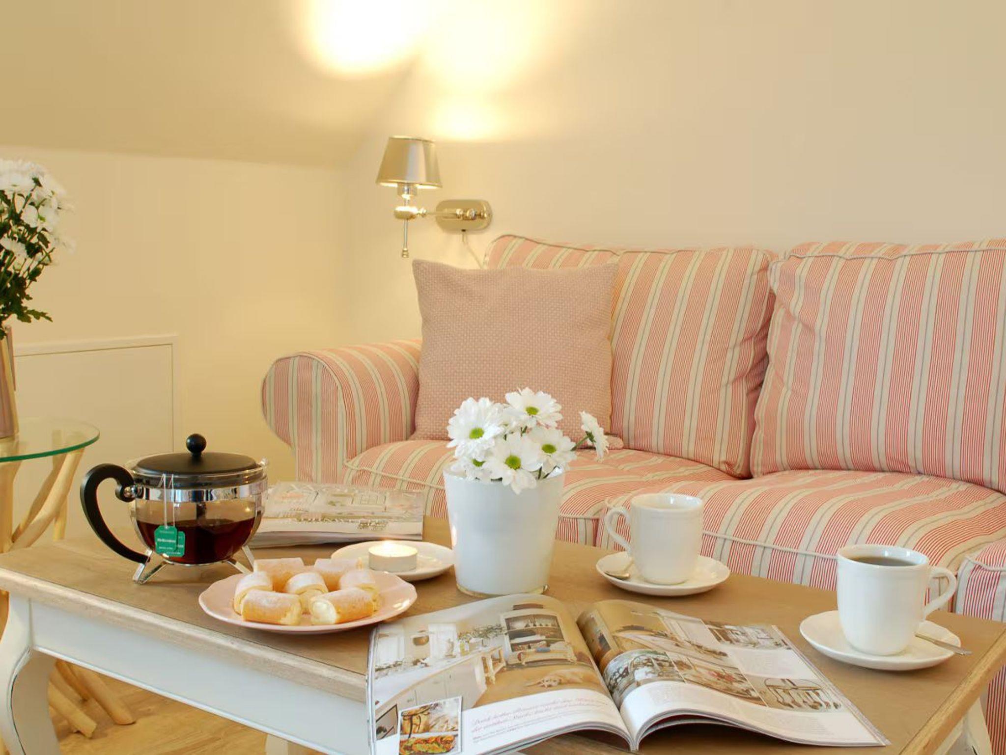 Gemütliche Obergeschosswohnung im Landhaus Uhlenhof mit Meer- und Bergblick, großem Sonnenbalkon und moderner Ausstattung.