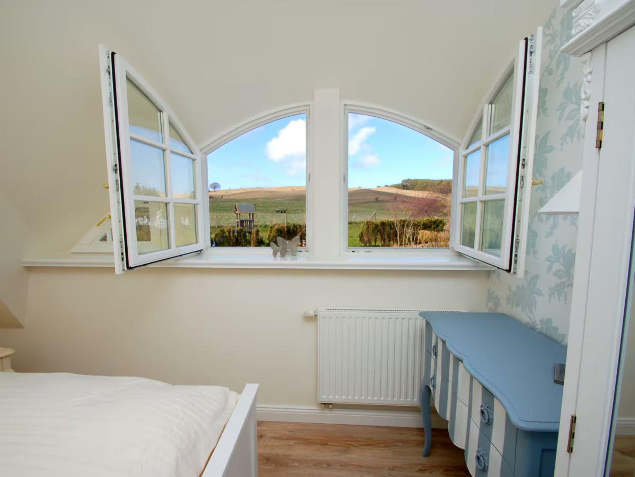 Schöne halbrunde Gauben mit Sprossenfenstern in Verbindung mit den Dachschrägen sorgen für ein besonderes Wohlfühl-Flair.