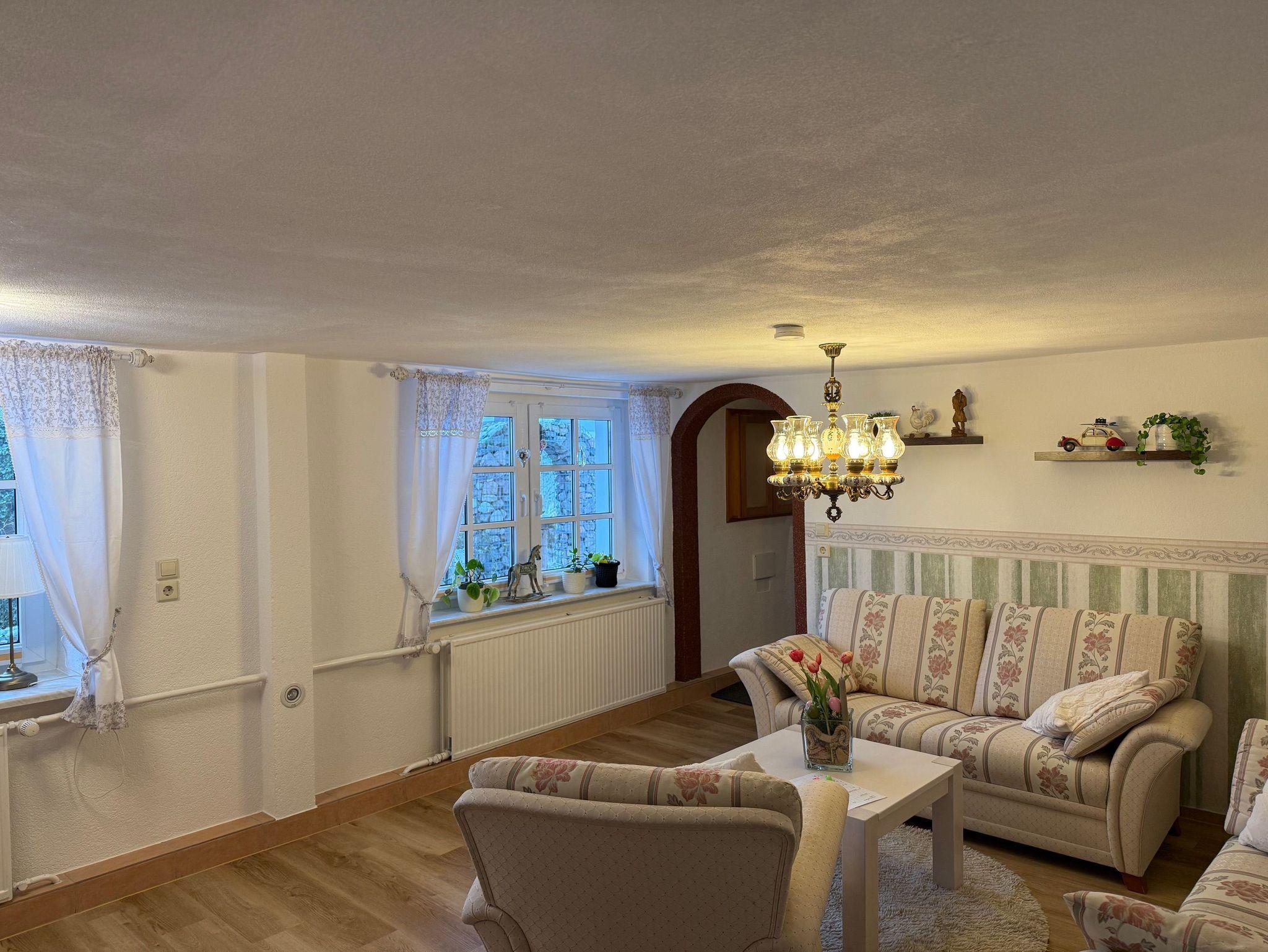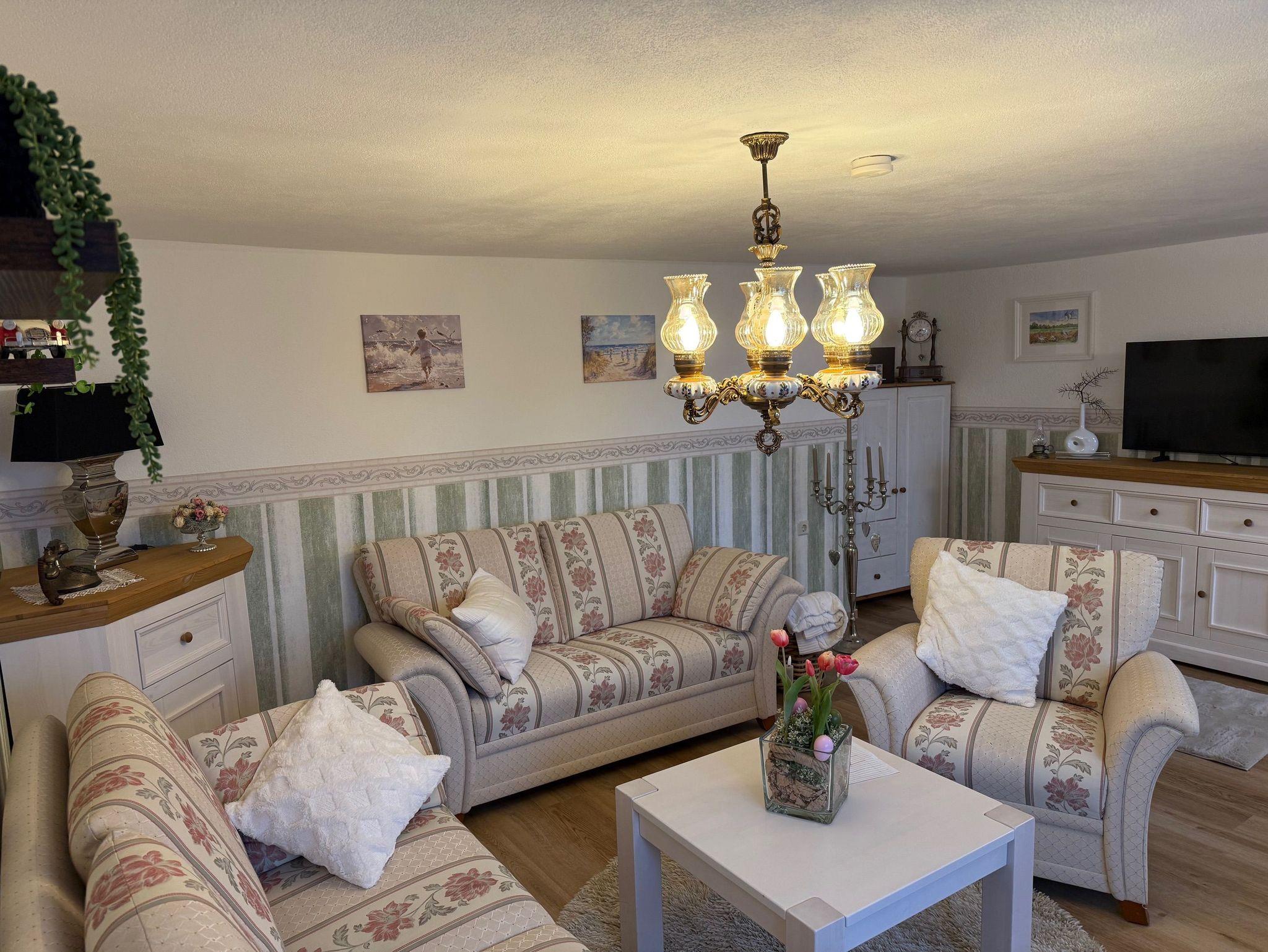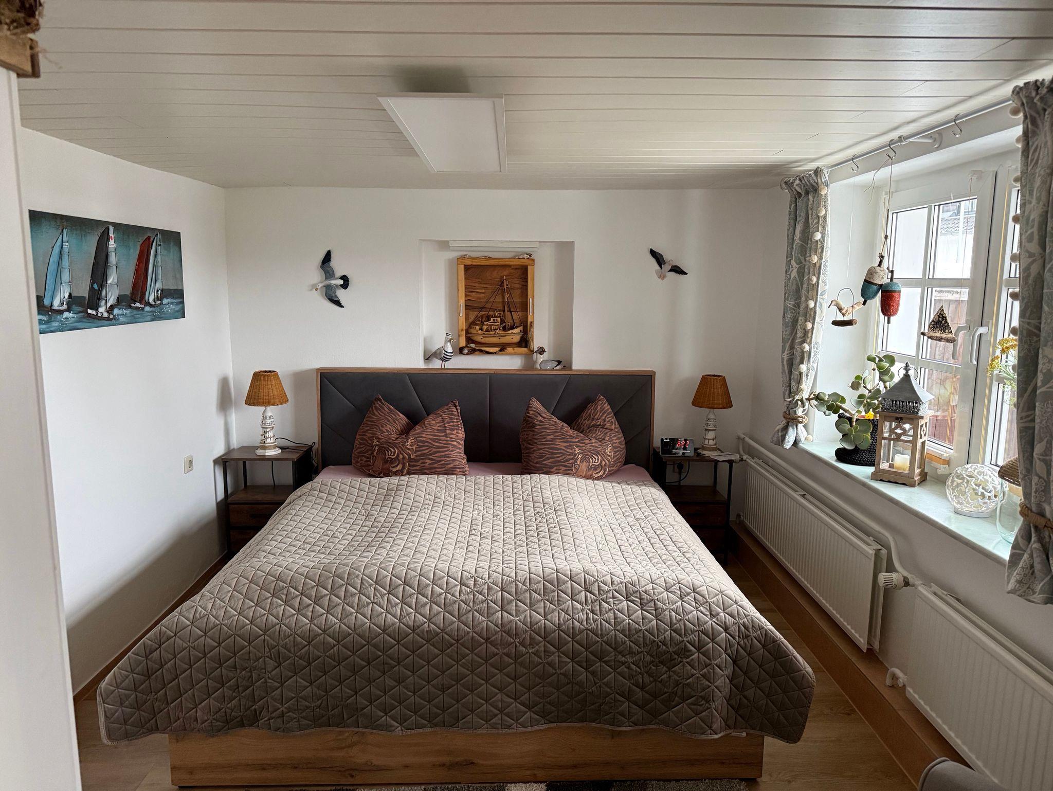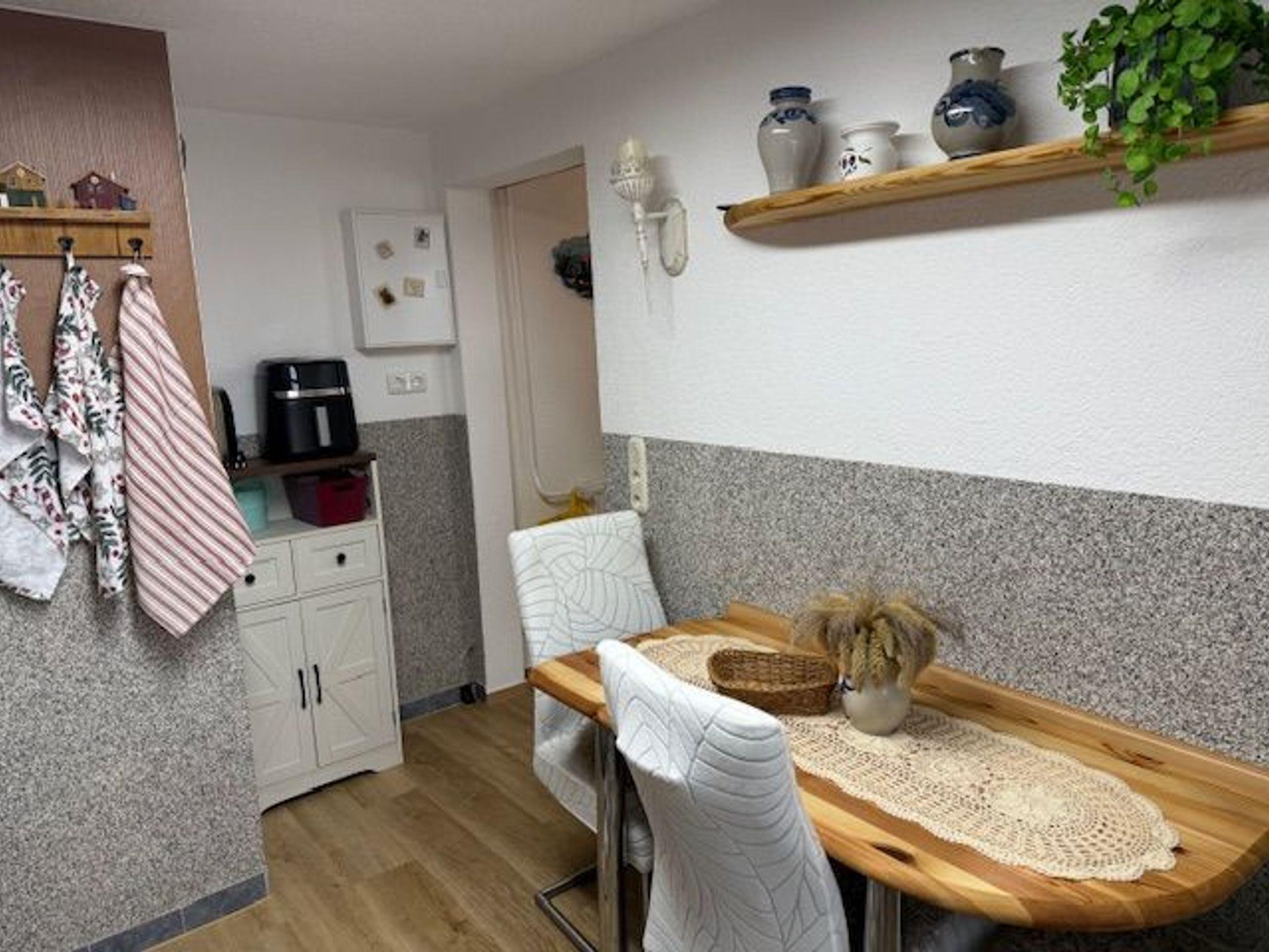 Die großzügige Ferienwohnung (Nichtraucher) bietet mit seinen ca. 63 qm ausreichend Platz für 2-4 Personen. Der geflieste Wohnbereich umfasst eine gemütliche Couchecke mit Couchtisch, 1 Schlafcouch (Aufbettung für 3/4 Person), ein Sideboard mit Radio und TV-Gerät. Das Schlafzimmer verfügt über ein Doppelbett mit Nachtischkonsolen und einen Kleiderschrank. Die separate Küche bietet Ihnen eine Essecke sowie eine Einbauküche mit einem 4 Platten-Herd, kleinen Backofen, Abzugshaube, Spüle, Kaffeemaschine, Wasserkocher, Toaster sowie diverse Küchenutensilien. Das geflieste Tageslichtbad verfügt über eine Dusche, WC, Waschtisch und einen Fön. WLAN inklusive. Die bestuhlte und Gemeinschaftsterrasse lädt zum Verweilen ein. Das separate und gemütliche Blockhaus auf dem Grundstück der Vermieter, steht allen Gästen der Pension zur Verfügung. Ein gemütlicher Grillabend findet in der Saison 1 x wöchentlich zusammen mit dem Vermieter statt. Genauere Informationen erhalten Sie vor Ort. Auf Anfrage können Sie vor Ort ebenfalls den Brötchenservice in Anspruch nehmen sowie das Frühstück p.P. für 7,00 Euro dazu buchen. Bis 14 Tage vor Anreise können Sie die Erstausstattung eines Wäschepaketes für 6,00 Euro p.P. dazu buchen bzw. durch eigene ergänzen. Ein Haustier ist gegen einen Aufpreis ein gern gesehener Gast.