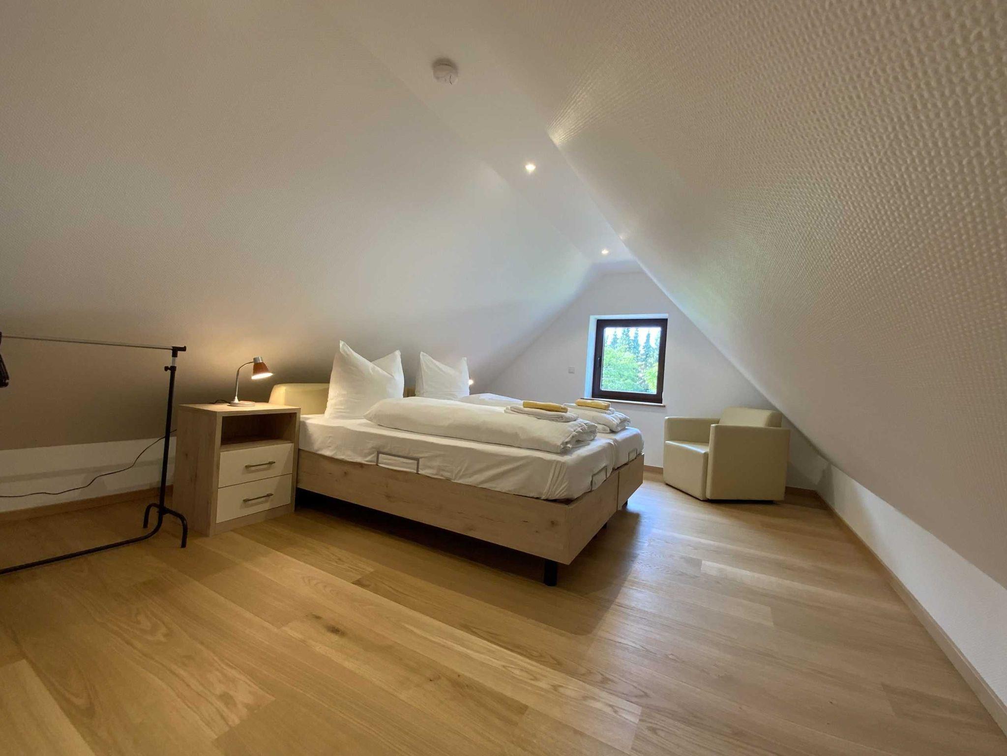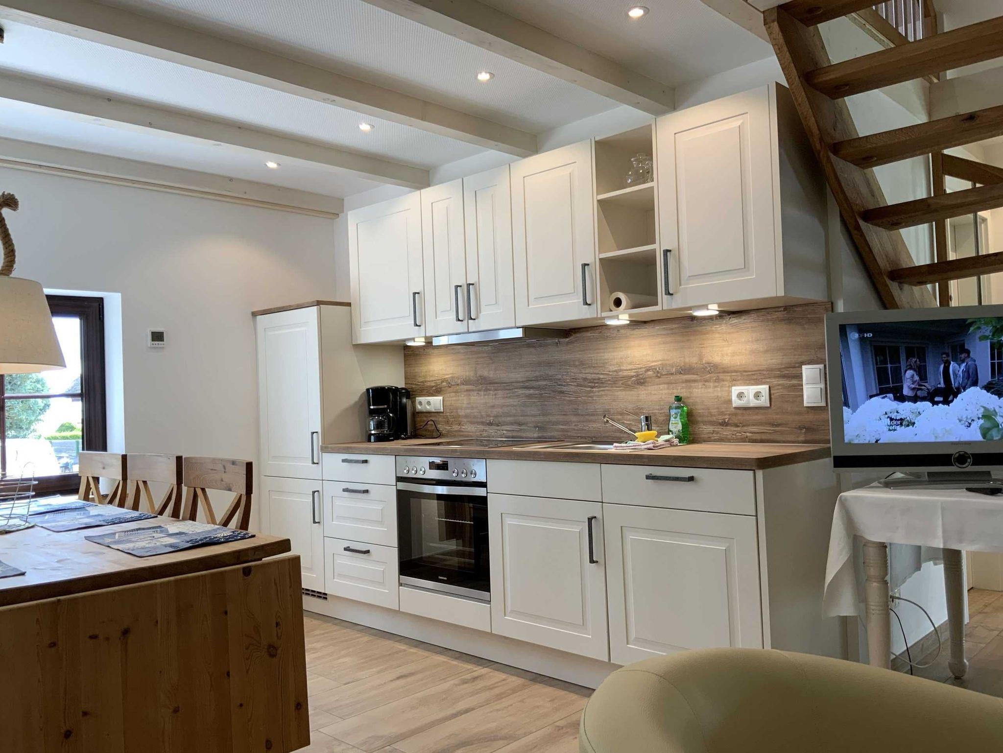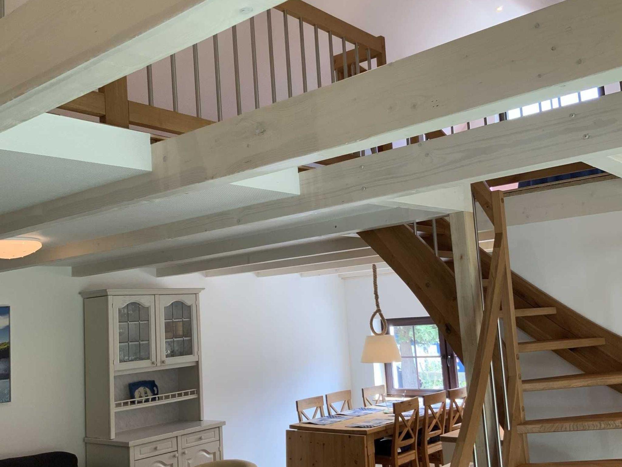 Das Ferienhaus besteht in der unteren Etage aus dem großzügigen Wohnbereich mit der offenen Küche und dem Essplatz, einem Schlafzimmer mit Doppelbett sowie den beiden Duschbädern. In der oberen Etage finden Sie ein Galeriezimmer mit Blick auf den Bodden und das zweite separate Schlafzimmer. Die Aufbettungsmöglichkeit besteht im Galeriezimmer auf dem Schlafsofa (200x150 cm). Eine große Terrasse, mit der Möglichkeit zum Grillen, läd zu gemütlichen Abenden ein.