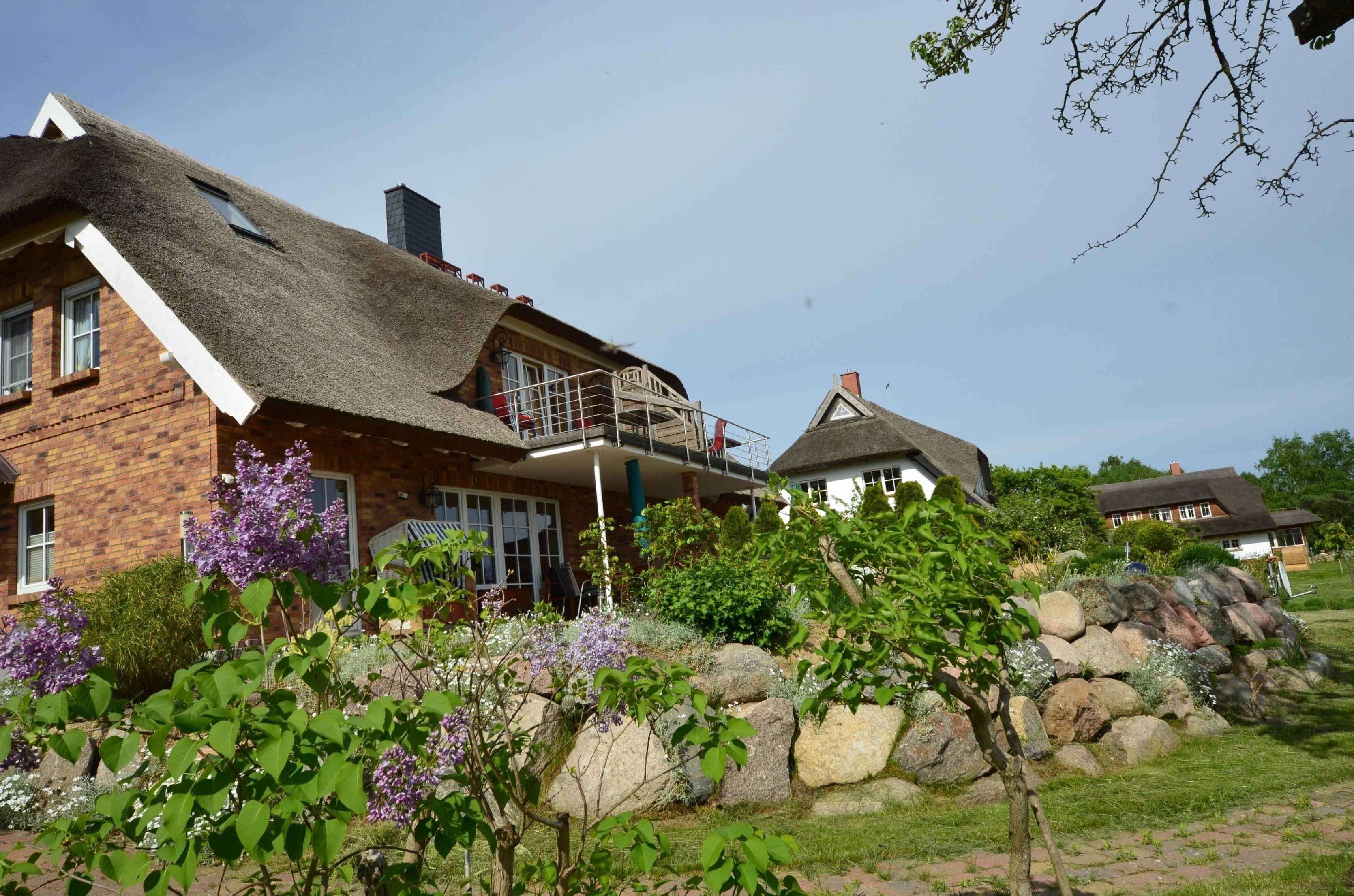 Ferienwohnung "Sonnenkamp" im Obergeschoß der 2008 neu errichteten reetgedeckten und verklinkerten Doppelhaushälfte in Groß Zicker/Halbinsel Mönchgut auf Rügen, Boddenstr. 8B.