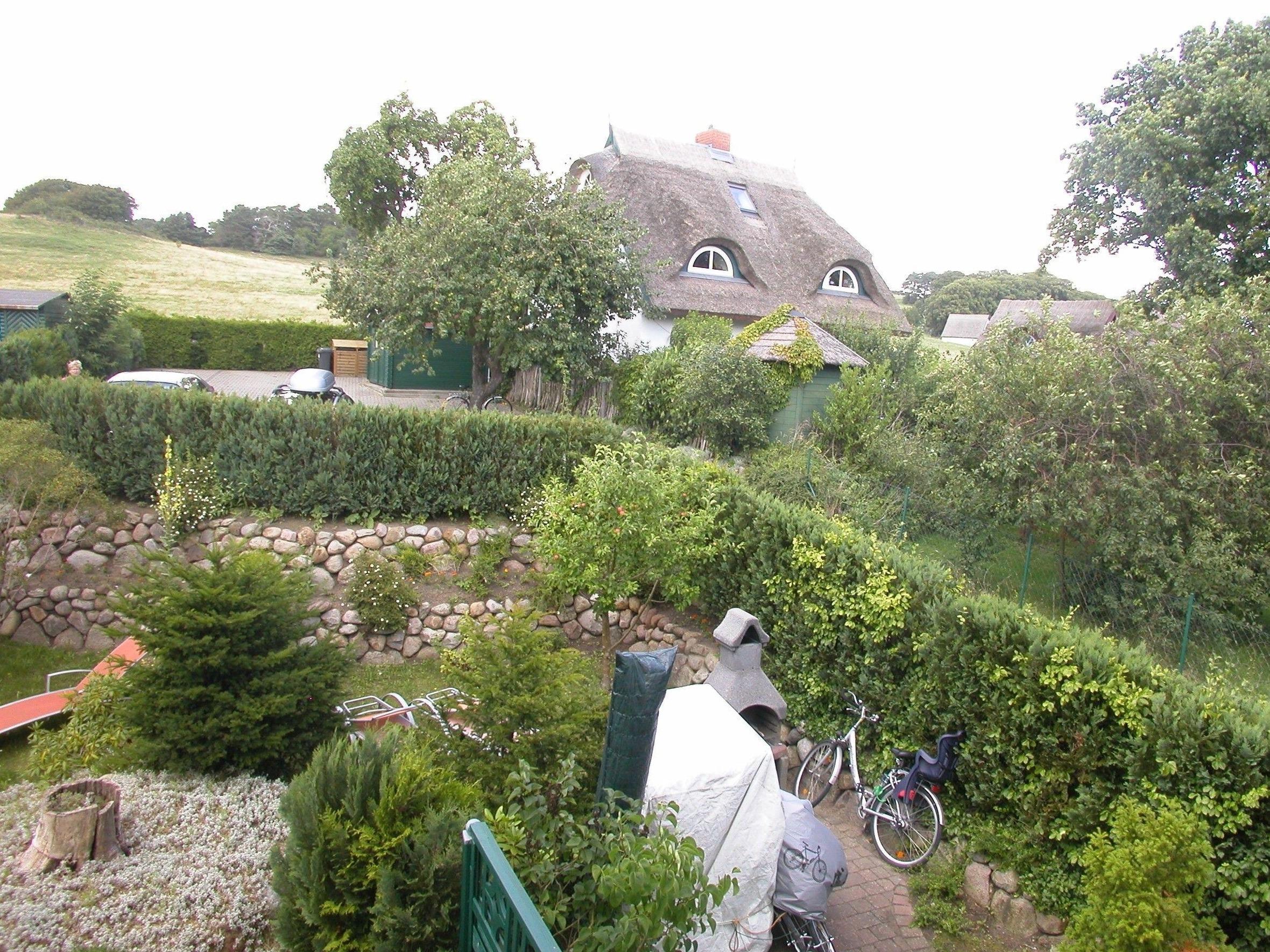 der in Steinwälle eingefassten reetgedeckten Häusern unter