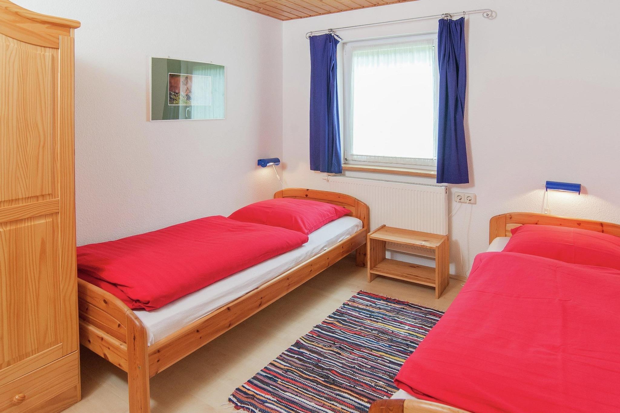 Parterre: (Schlafzimmer(Doppelbett), Schlafzimmer(Einzelbett, Etagenbett oder 2 Einzelbetten), Badezimmer(Badewanne, Dusche, Waschbecken, Toilette)) In der 1. Etage: (offene Küche(Backofen, Spülmaschine, Kühl-/Gefrierkombination), Wohn/Esszimmer(Schlafcouch 1 Pers., TV(Satellit, digital)), Toilette, Flur(von außen erreichbar), Abstellraum) Trockner(gegen Gebühr), Waschmaschine(gegen Gebühr), Balkon, Heizung(Zentral), Garten(Gemeinschaftliche Nutzung mit anderen Gästen), Gartenmöbel, Grill, Parkplatz, Sandkasten, Tischtennisplatte