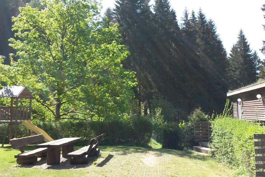 Das Feriendorf Bad Hundertpfund lliegt idyllisch, sonnig und ruhig mitten im Wald, direkt an einem kleinen Bach. Wir verfügen über verschiedene Häuser unterschiedlicher Größe (eines davon behindertengerechnt) bestens geeignet für Familie und Gruppen (siehe auch Inserat Nr. 51776). Das Ferienhaus Typ B ist ein großzügig, modern und komfortabel ausgestatteted Ferienhaus für 1-7 Personen, 96qm, 2 Schlafzimmer, voll ausgestattete Küche, Bad mit Badewanne, Dusche/WC, sep. WC, Wohn-Esszimmer, zwei Balkone, TV-Sat, Kinderausstattung, Gas-Zentralheizung (Abrechnung von Gas und Strom nach Verbrauch), Haustiere auf Anfrage, großer Lagerfeuerplatz, Grill- und Sitzmöglichkeiten auf der Spielwiese.