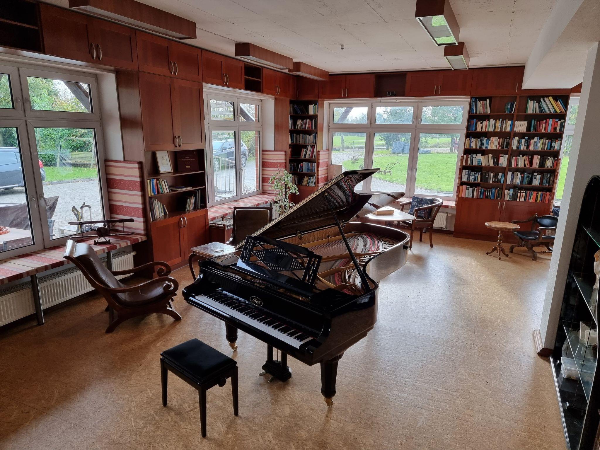 Modernes Apartment mit Klavier, Terrasse und Blick ins Naturschutzgebiet in Ostfriesland.