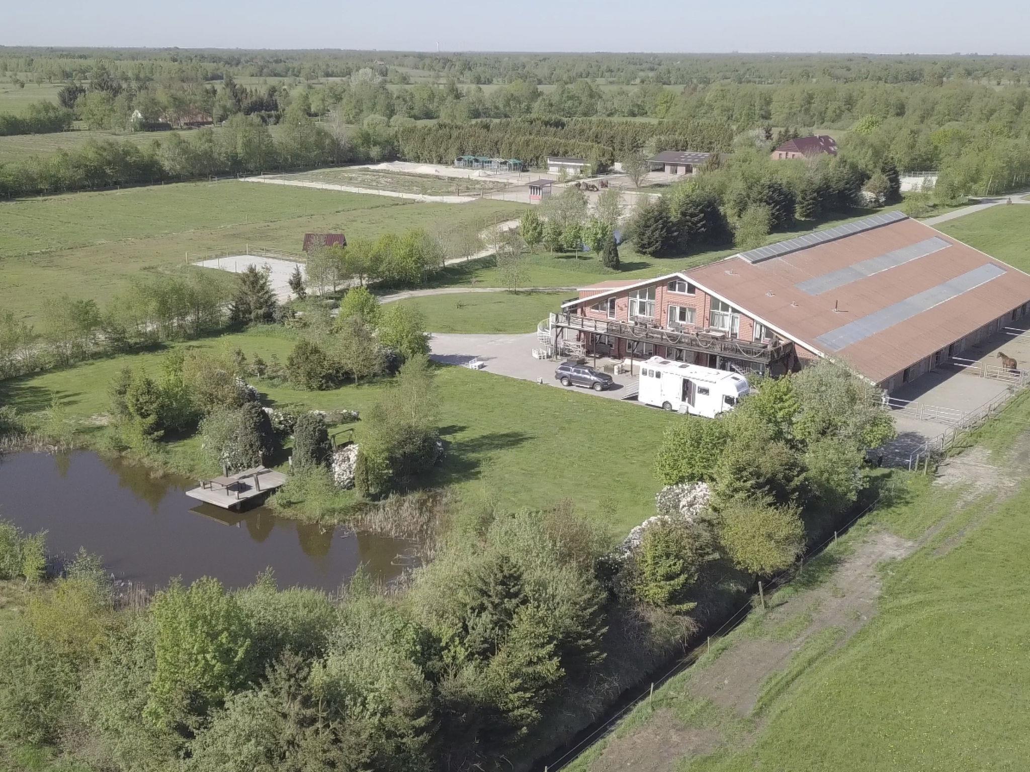 Ein Traumgelände um sich zu erholen. Verschiedene lauschige Liegewiesen und allein nutzbare Nischen laden zum Entspannen ein. Mit Blick auf die Natur, auf die Pferdetrails oder auf den hauseigenen See. Die große überdachte Terrasse mit Sitzgelegenheiten, einem Gas- und Holzkohlegrill sowie einem Feuerkorb bietet viele Möglichkeiten für gemütliche Abendstunden mit der Familie und Freunden.