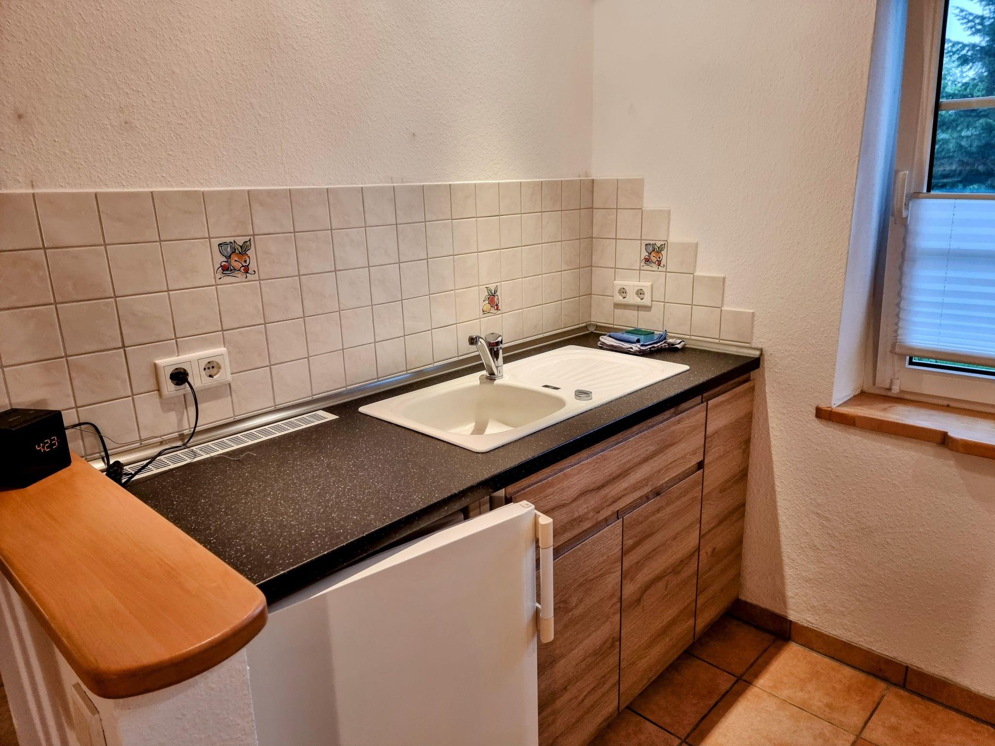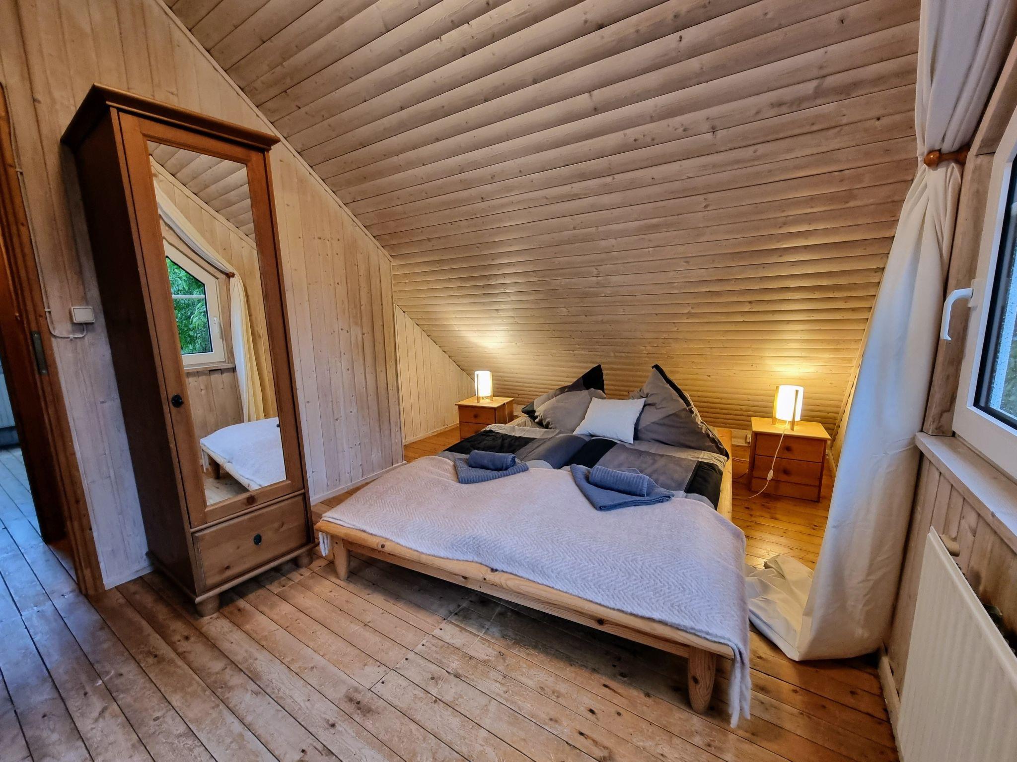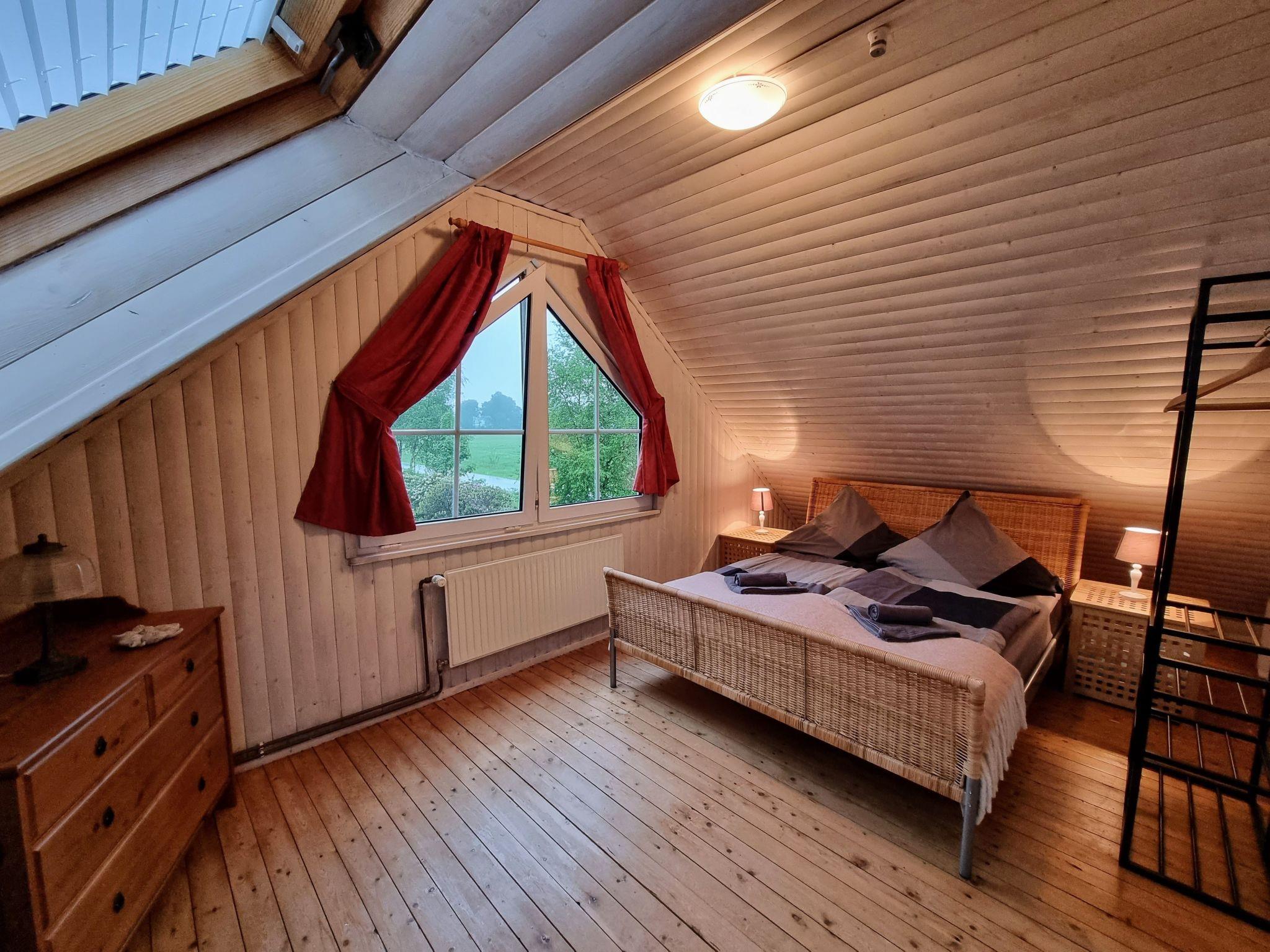 Im Inneren erwartet Sie eine gemütliche Atmosphäre, die durch das besondere Stück – ein restauriertes, Schellack handpoliertes schwarzes Bechstein Klavier – im Wohn- und Essraum untermalt wird. Neben diesem Highlight verfügt das Haus über zwei einladende Schlafräume mit Doppelbetten, die über eine leicht steilere Holztreppe zu erreichen sind, sowie ein praktisch eingerichtetes Duschbad. Die kleine, offene Küche ist ausgestattet mit einem 2-Platten-Herd, einem Cerankochfeld, einer Kaffeemaschine sowie einem Wasserkocher – alles, was Sie für die Zubereitung einfacher Mahlzeiten benötigen.