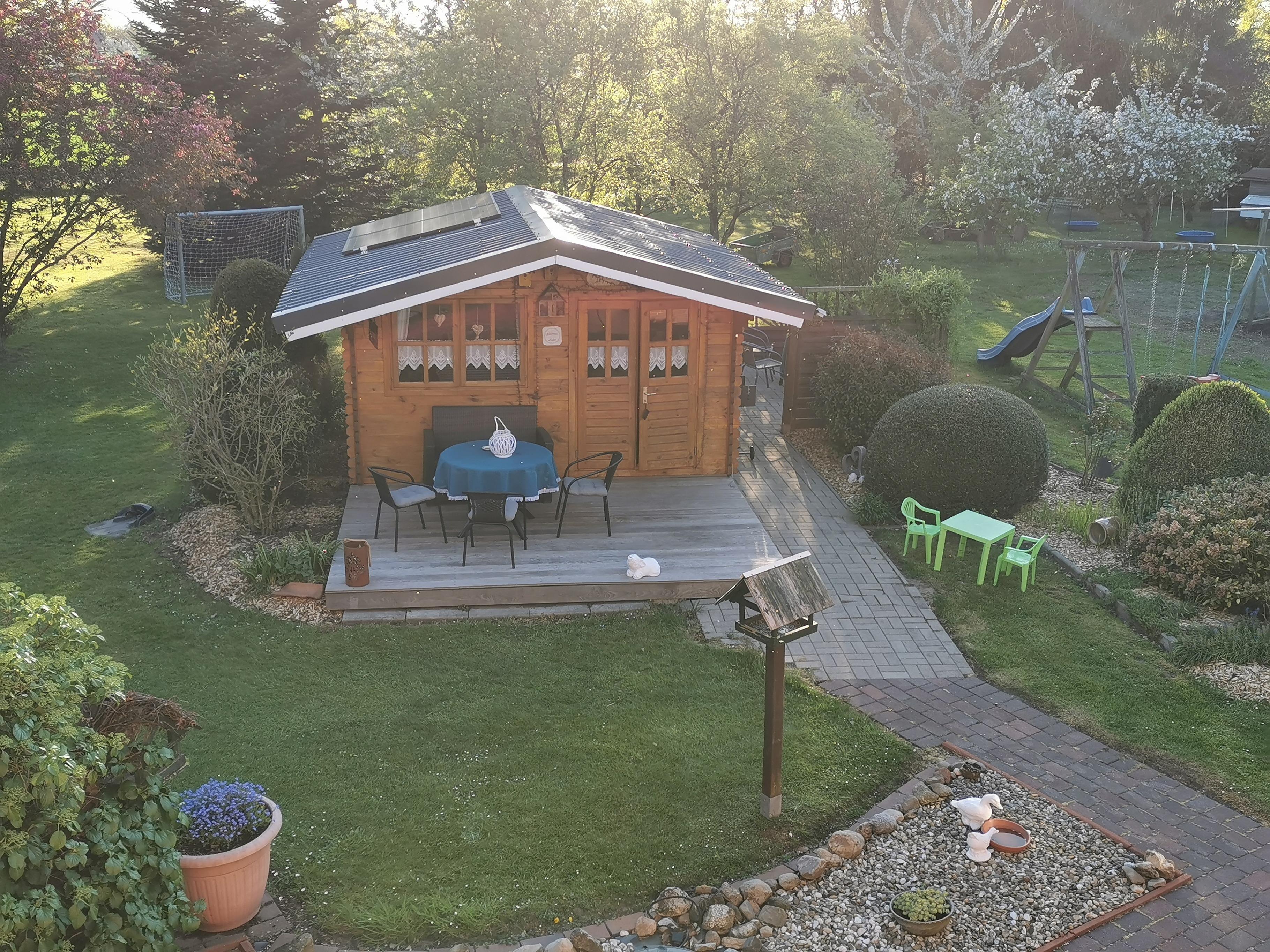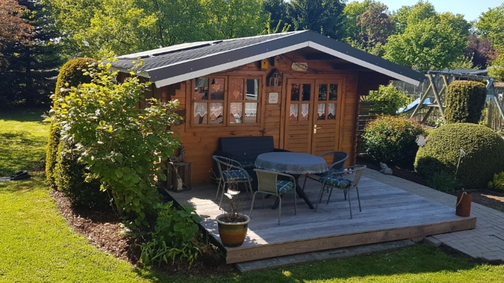 Unser Gartenhaus mit Veranda kann genutzt werden.