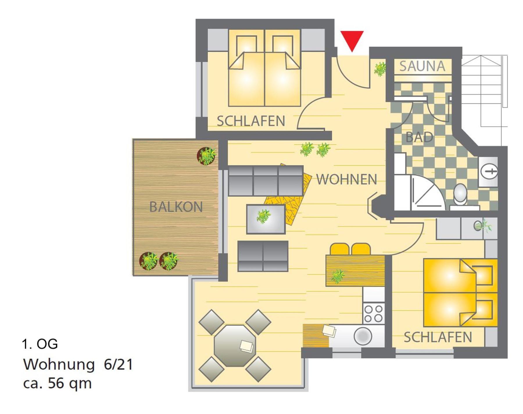 Die Ferienwohnung Sonnenschein 21 verfügt über kostenloses WLAN und befindet sich im 1. Obergeschoss des Hauses Sonnenschein im Strandpark Großenbrode.
