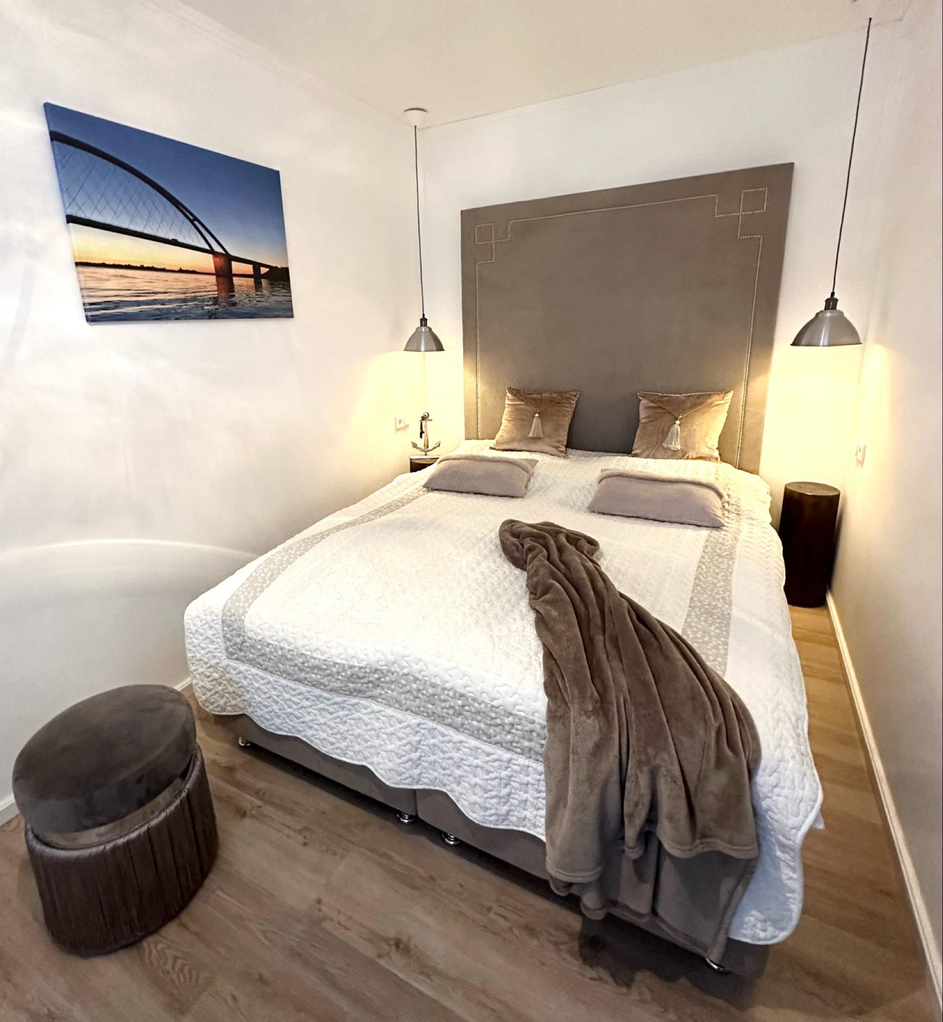 Das Meer ist in Richtung Hafen vom Balkon aus zu sehen. Hier haben sie auch Sitzgelegenheiten, um das alles zu genießen. Es steht ihnen ein Strandkorb (saisonal)am Strand zur Verfügung, Strandkorb im Innenhof ganzjährig und wir halten für sie eine Fasssauna bereit. VillARTwinzig verfügt im Erdgeschoss über 1 Schlafzimmer mit Boxspringbett, Badezimmer, Küche und Wohnzimmer. Im ersten Stock gibt es 2 Schlafzimmer eins mit Balkon und eins mit einer zusätzlichen Schlafgelegenheit im Oberdeck mit Loftnetz. Ein Badezimmer mit Dusche und Regenschauer. VillARTwinzig ist in der Hauptsaison nur wöchentlich buchbar.