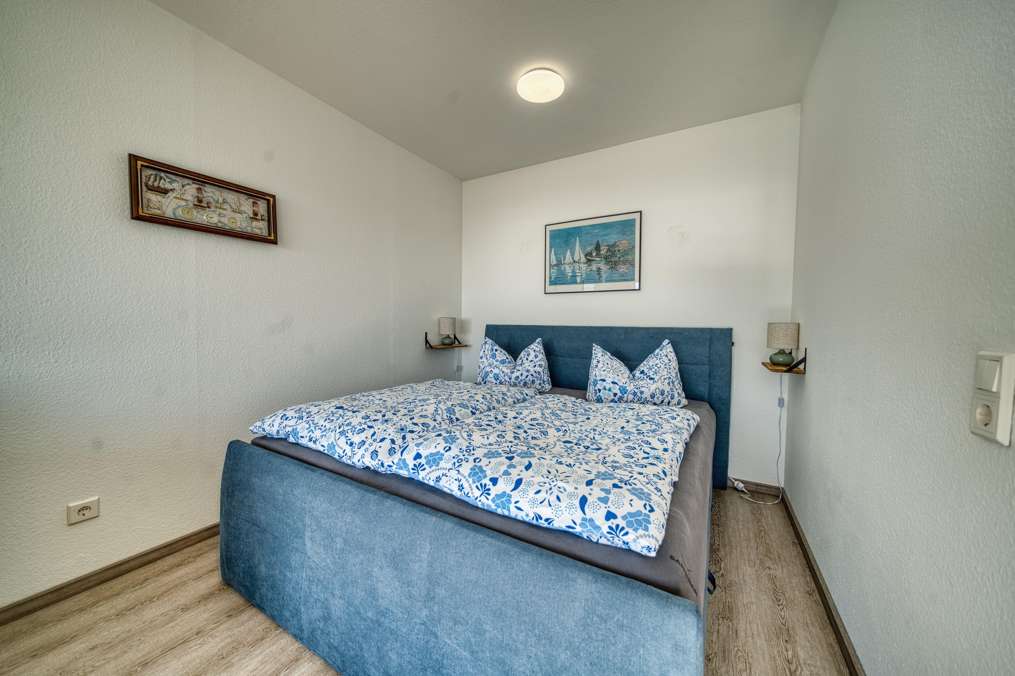 Meerblick beim Aufwachen: Gemütliches Doppelbett mit Blick auf die Wellen.