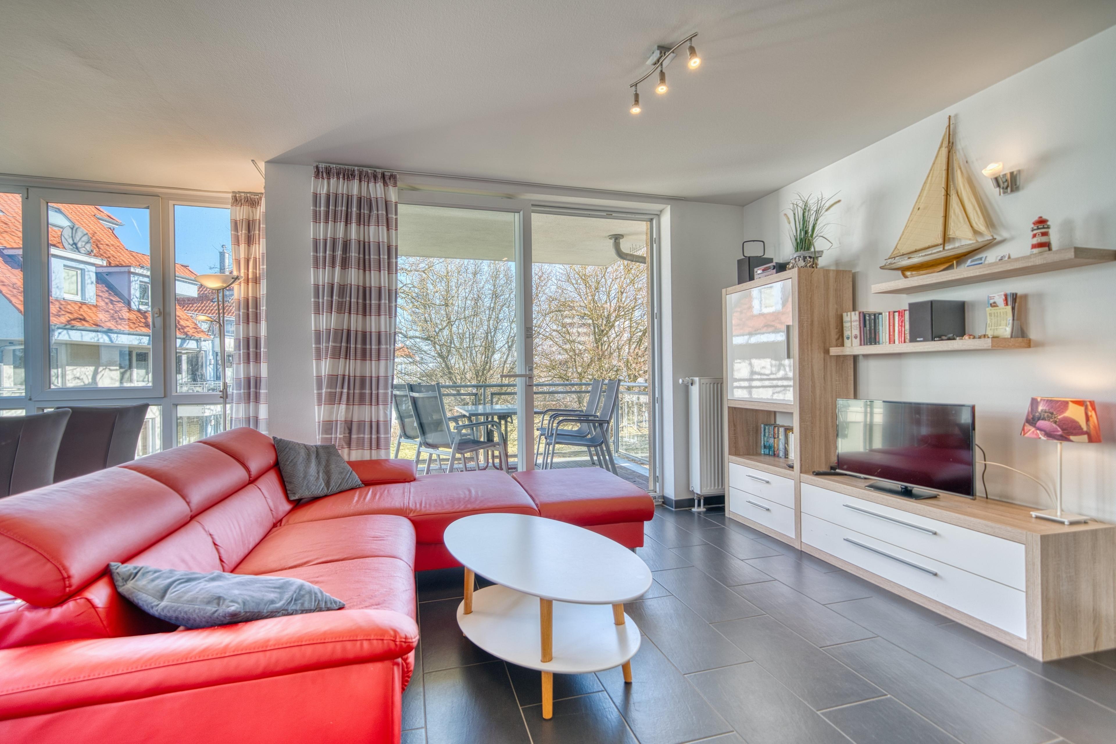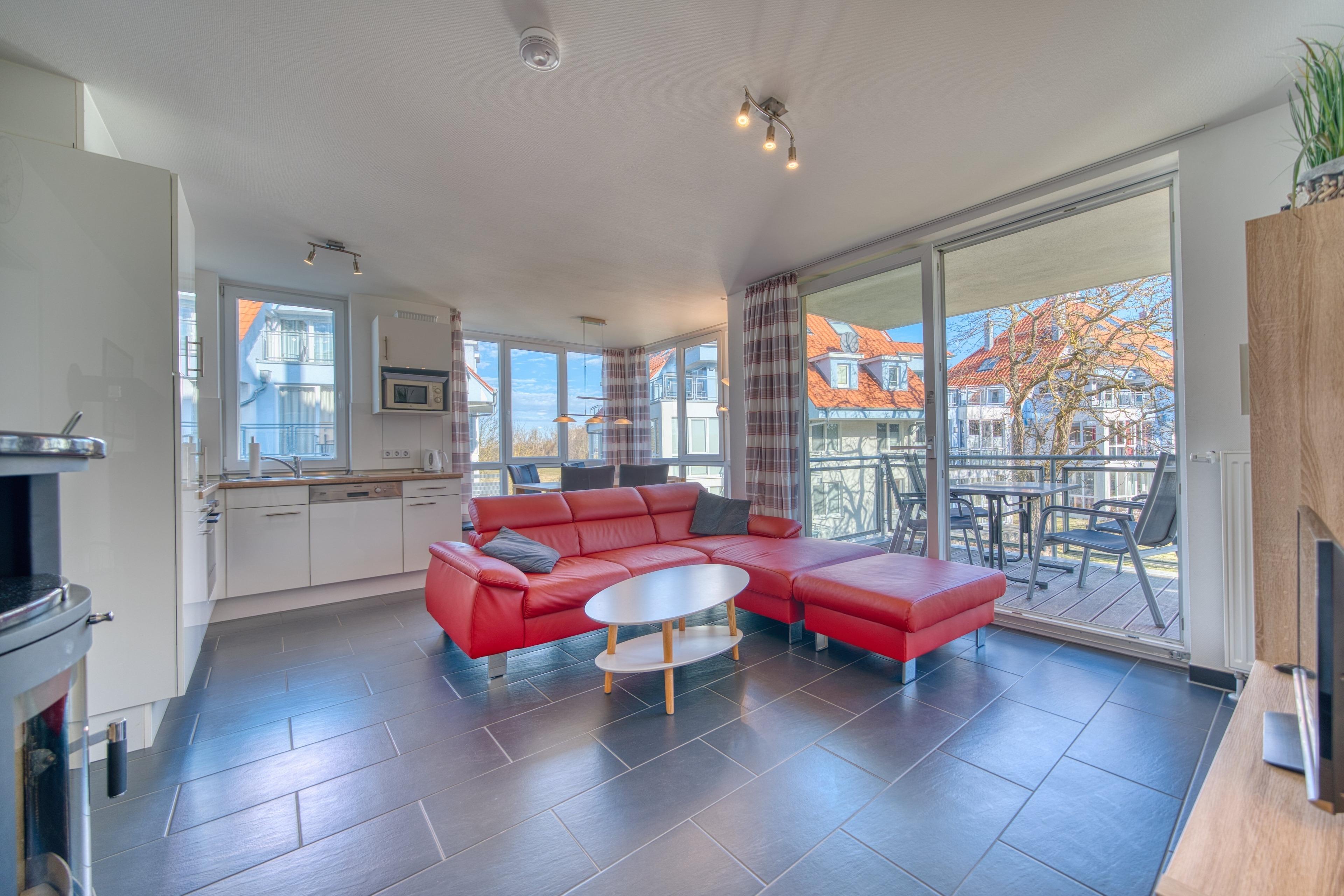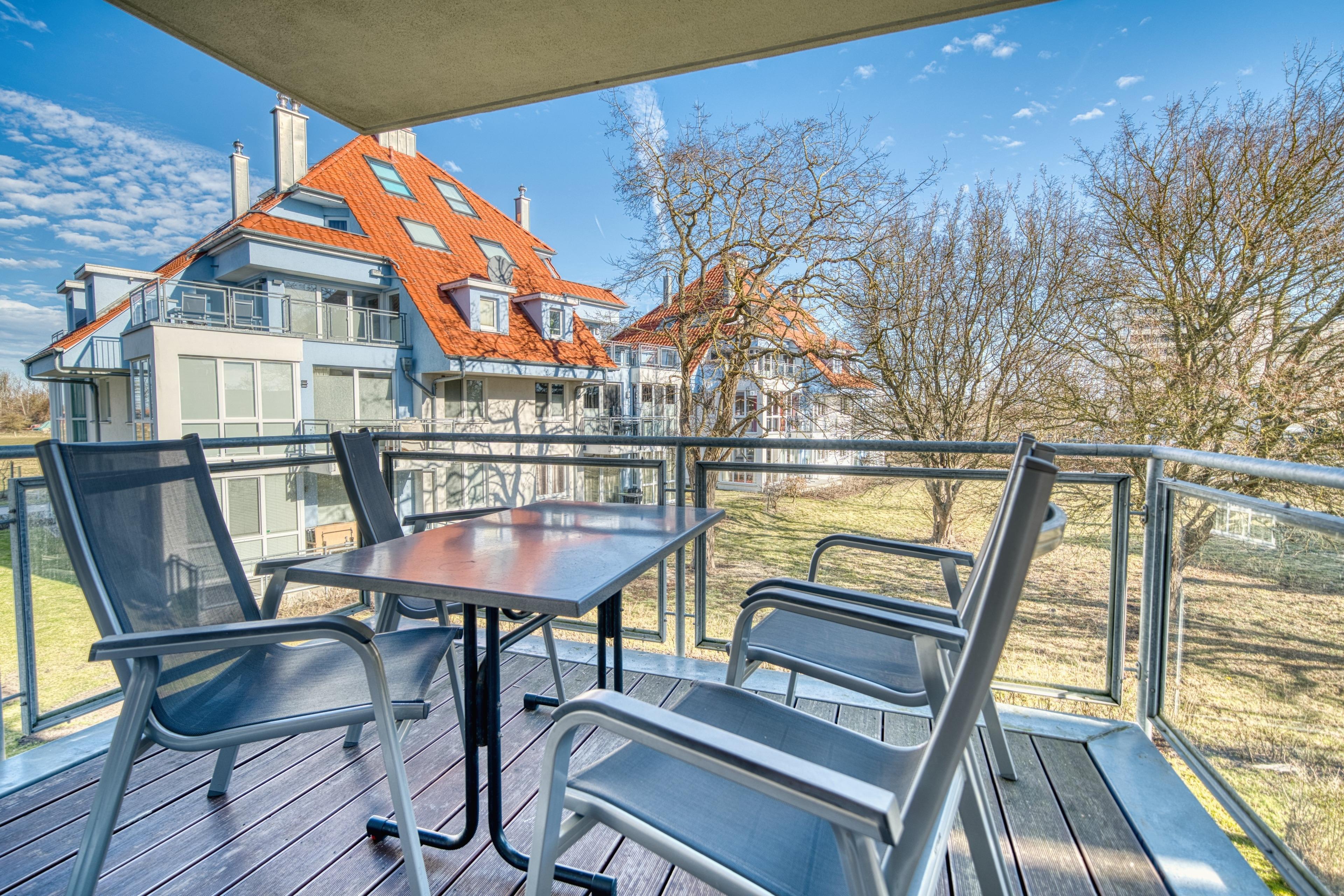 Traumhaft sonnige 3-Zimmer-Ferienwohnung im 1. Obergeschoss im Haus Meeresrauschen im Strandpark Großenbrode mit 57 m² Wohnfläche für bis zu 4 Personen. Der Ostseesandstrand ist nur etwa 150 m entfernt. Die Wohnung verfügt über Balkon in Nord-Ost-Lage.