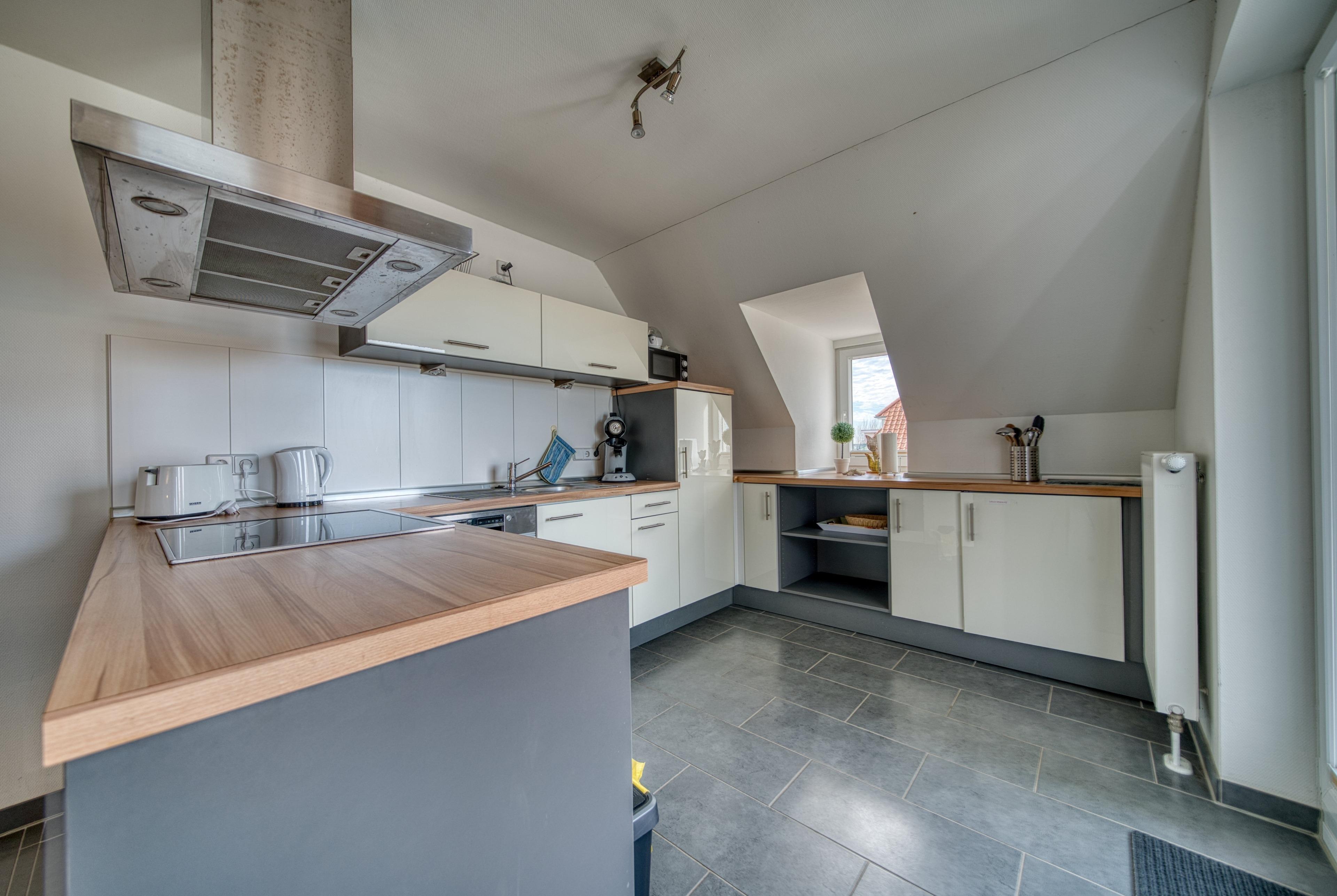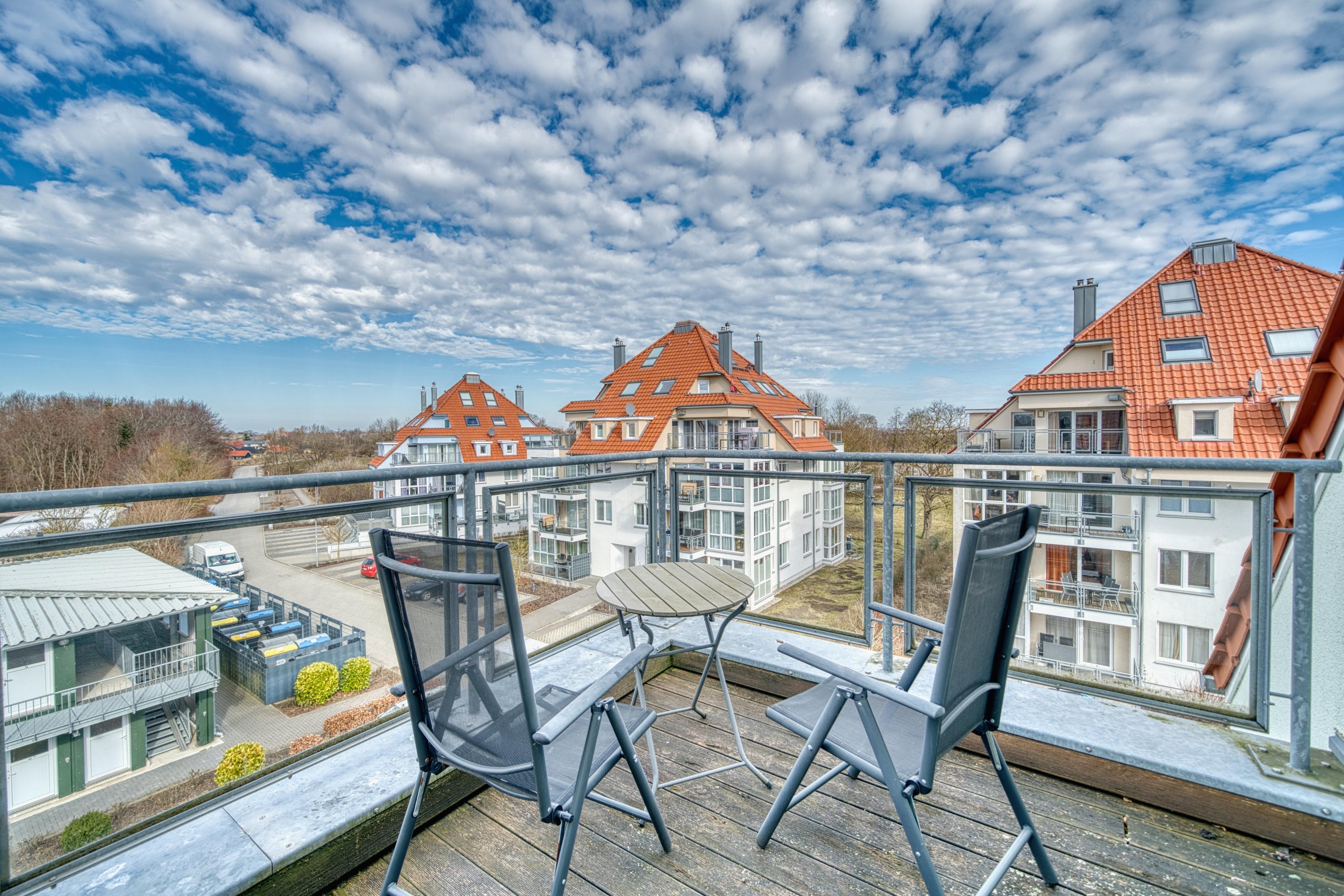 Liebevoll gestaltete Penthouse-Ferienwohnung im 3. Obergeschoss im Haus Möwennest im Strandpark Großenbrode mit 97 m² Wohnfläche für bis zu 5 Personen (max. 4 Erwachsene). Der Ostseesandstrand ist nur etwa 150 m entfernt. Die Wohnung verfügt über zwei Dachterrassen in Süd-West-Lage, am Horizont ist sogar die Ostsee zu erkennen.