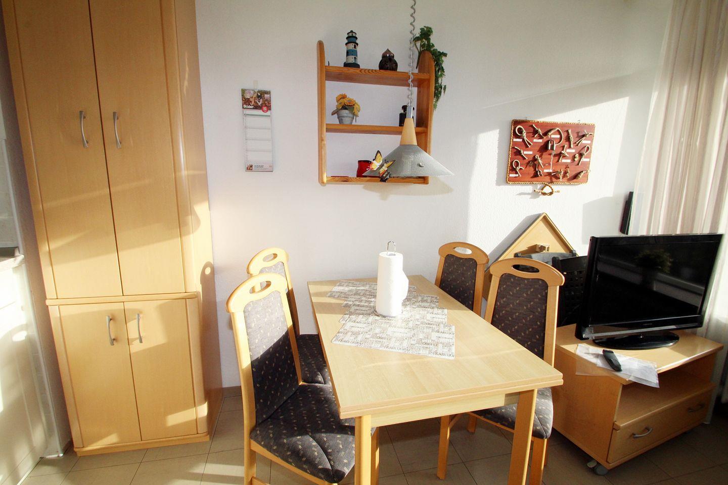 Der Essbereich bietet Platz für 4 Personen - hier lässt es sich auch mit Besuch gemeinsam Essen, Spielen und Klönen.