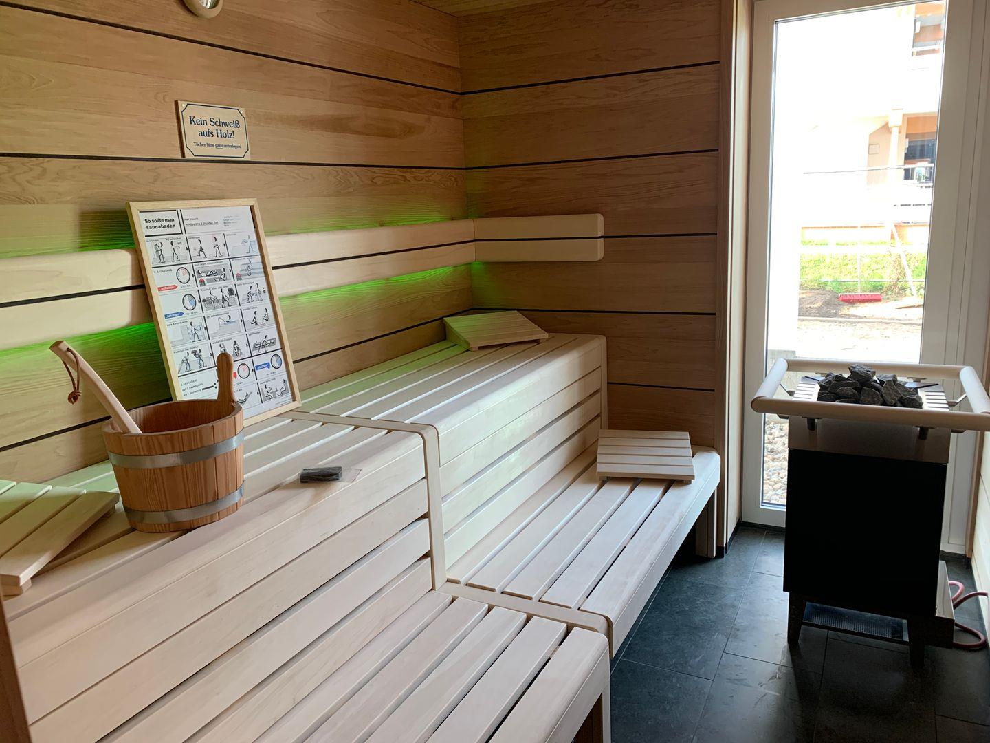 Auf Wunsch nutzen Sie ganz nach Belieben, die attraktiven Annehmlichkeiten der Apartmentanlage Meerblickvilla - im Erdgeschoss befindet sich ein moderner Saunabereich mit finnischer Sauna, Bio-Sauna und ein Ruheraum mit kleiner Terrasse.