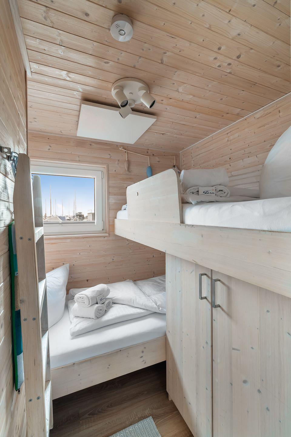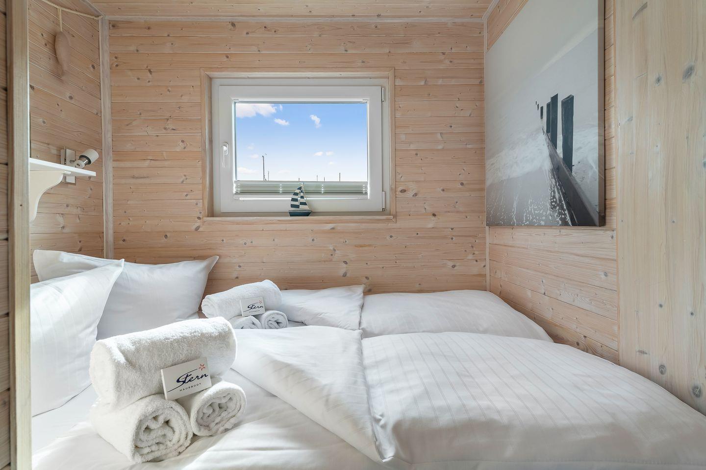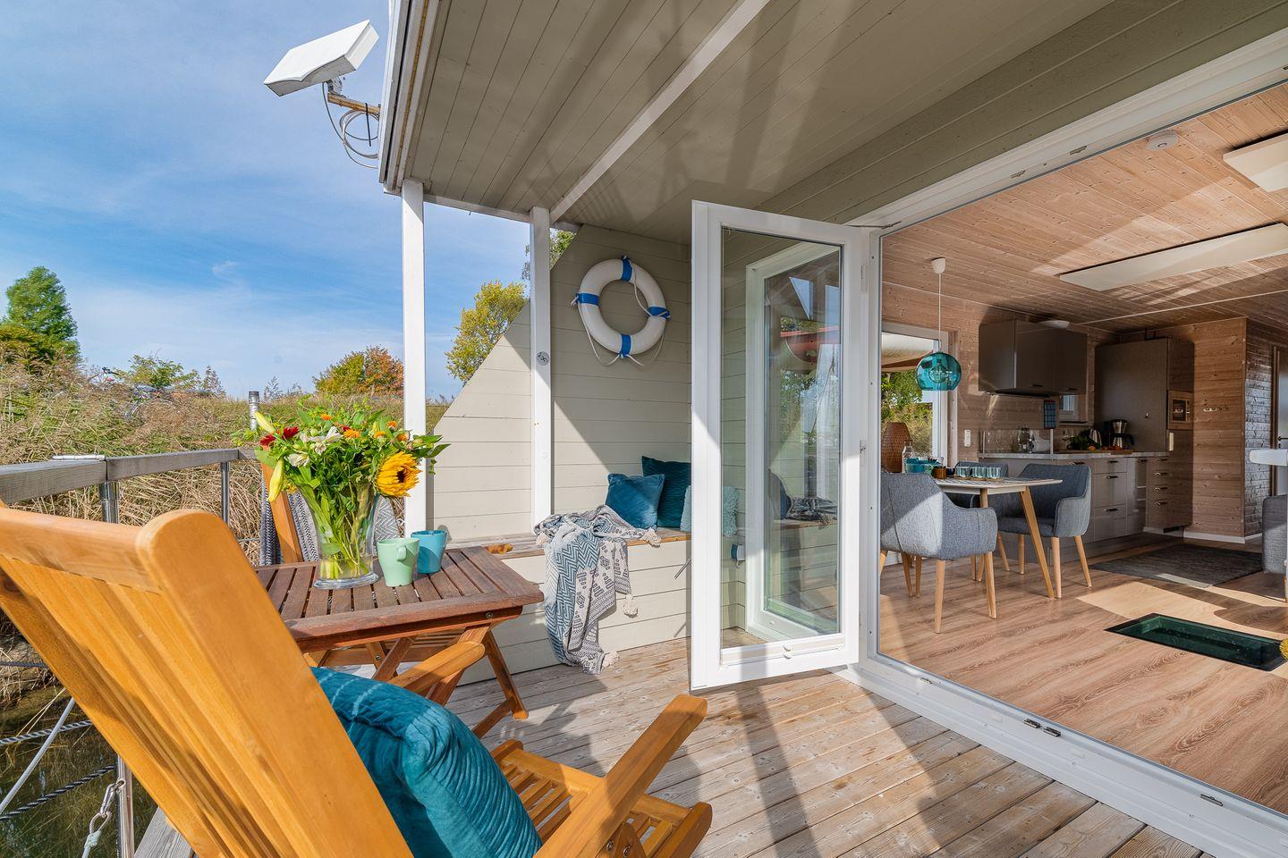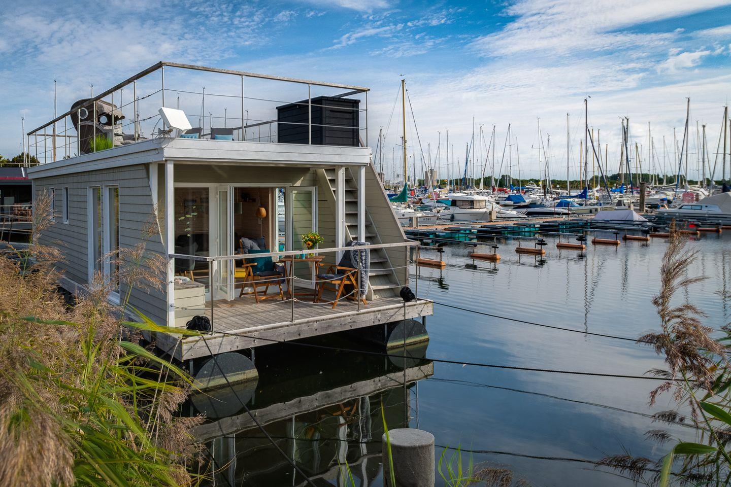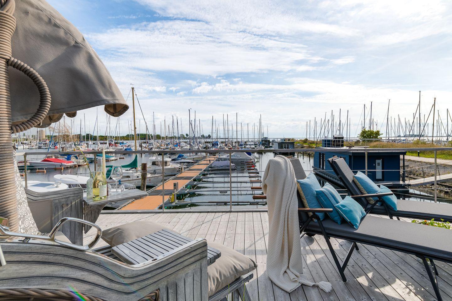 Erleben Sie traumhaften Hausboot-Urlaub in Großenbrode mit Blick auf Hafen und Ostsee, modern und gemütlich für bis zu 4 Personen.
