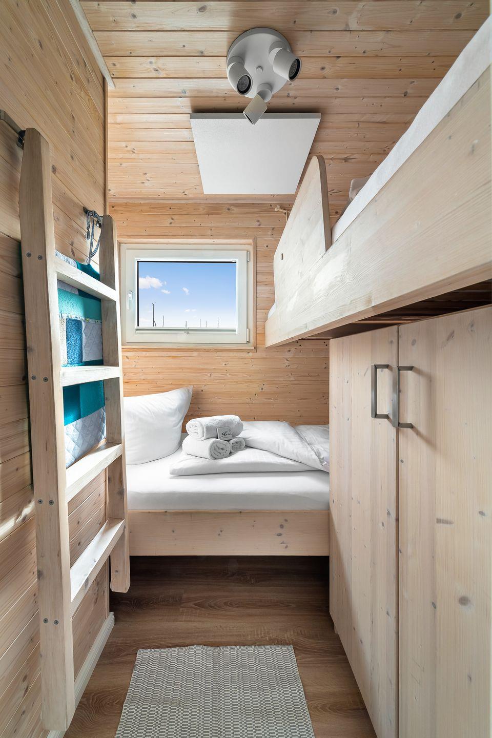 und einmal zwei Einzelbetten (200x90 cm) davon ein Hochbett mit Leiter und Rausfallschutz.