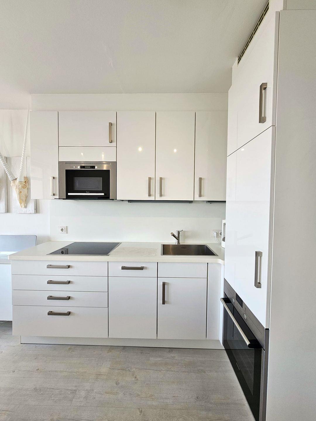 In der hochwertigen Einbauküche finden Sie jede Menge Stauraum für Lebensmittel, einen Backofen, ein 4-Feld-Ceranherd und eine integrierte Mikrowellen als Kombigerät, einen Geschirrspüler sowie umfassende Ausstattung zum Kochen und anschließendem Genießen.