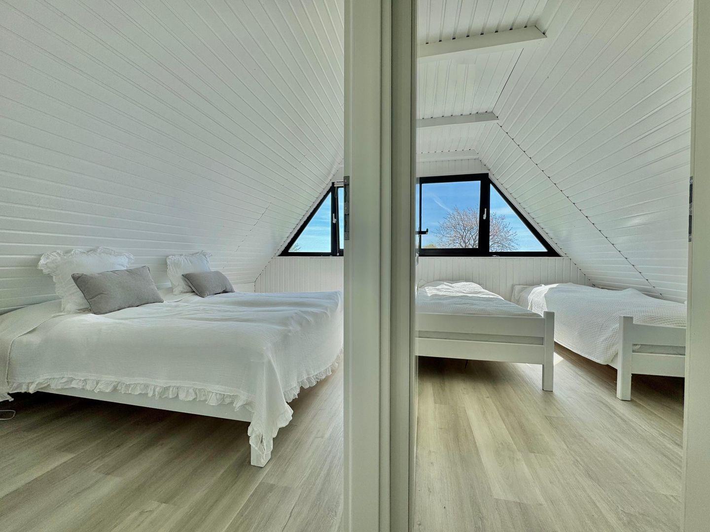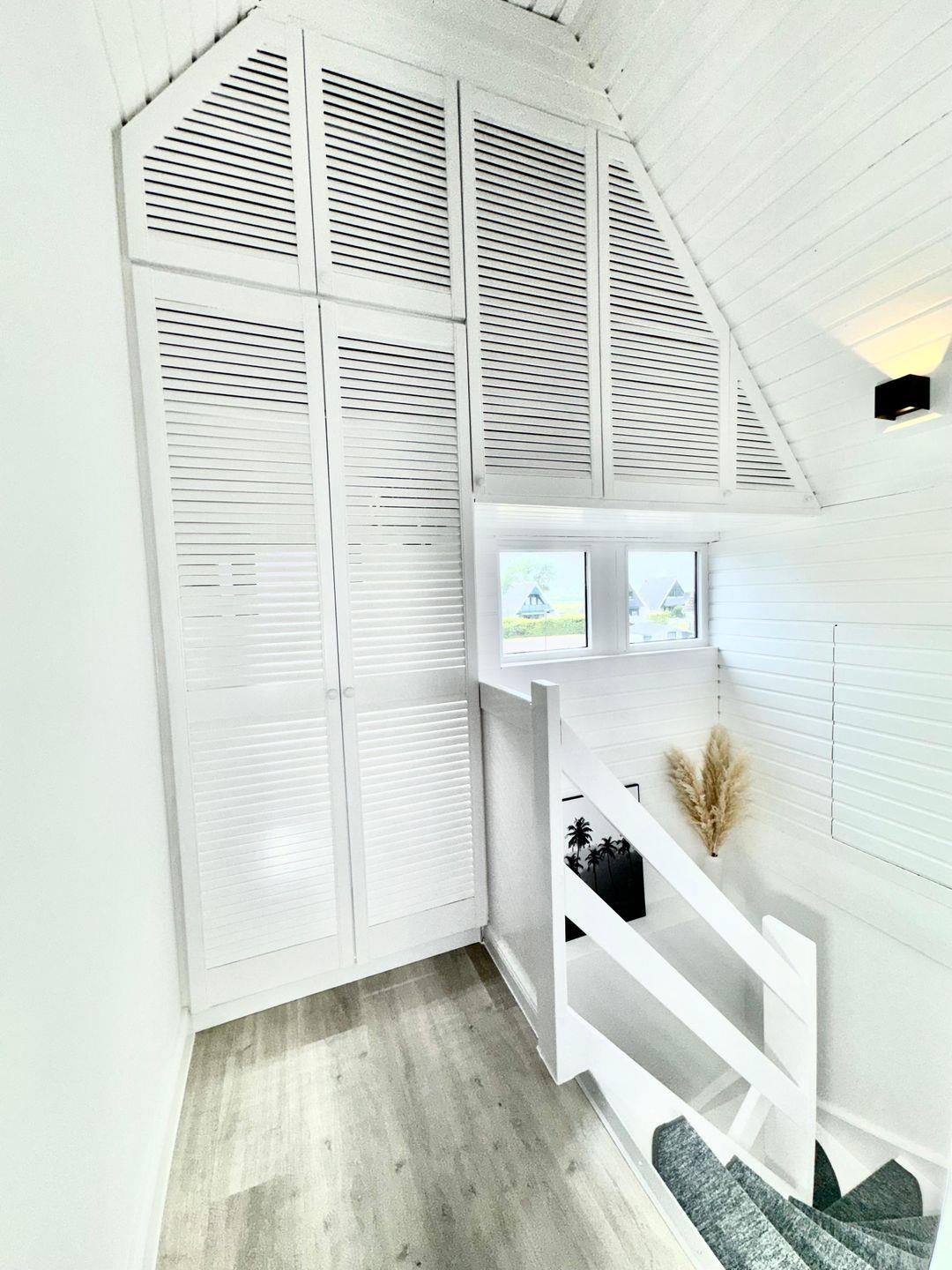 Die komplett in 2025 sanierte Unterkunft bietet Platz für bis zu fünf Personen in zwei einladenden Schlafzimmern, die mit modernem Vinylboden ausgestattet sind. Das Hauptschlafzimmer bietet viel Platz und Stauraum für ihre Urlaubsgarderobe, während das zweite Schlafzimmer, ebenfalls hell und einladend, zusätzlichen Komfort für Ihre Familie oder Freunde bietet. Der offene Wohnbereich ist mit einer gemütlichen Sofaecke ausgestattet, die zum Entspannen einlädt. Zusätzlich verfügt das Wohnzimmer über einen Samsung Ambilight Smart TV mit Sat TV. Ein großer Esstisch im Essbereich lädt dazu ein, gemeinsame Mahlzeiten zu genießen und die Erlebnisse des Tages auszutauschen.