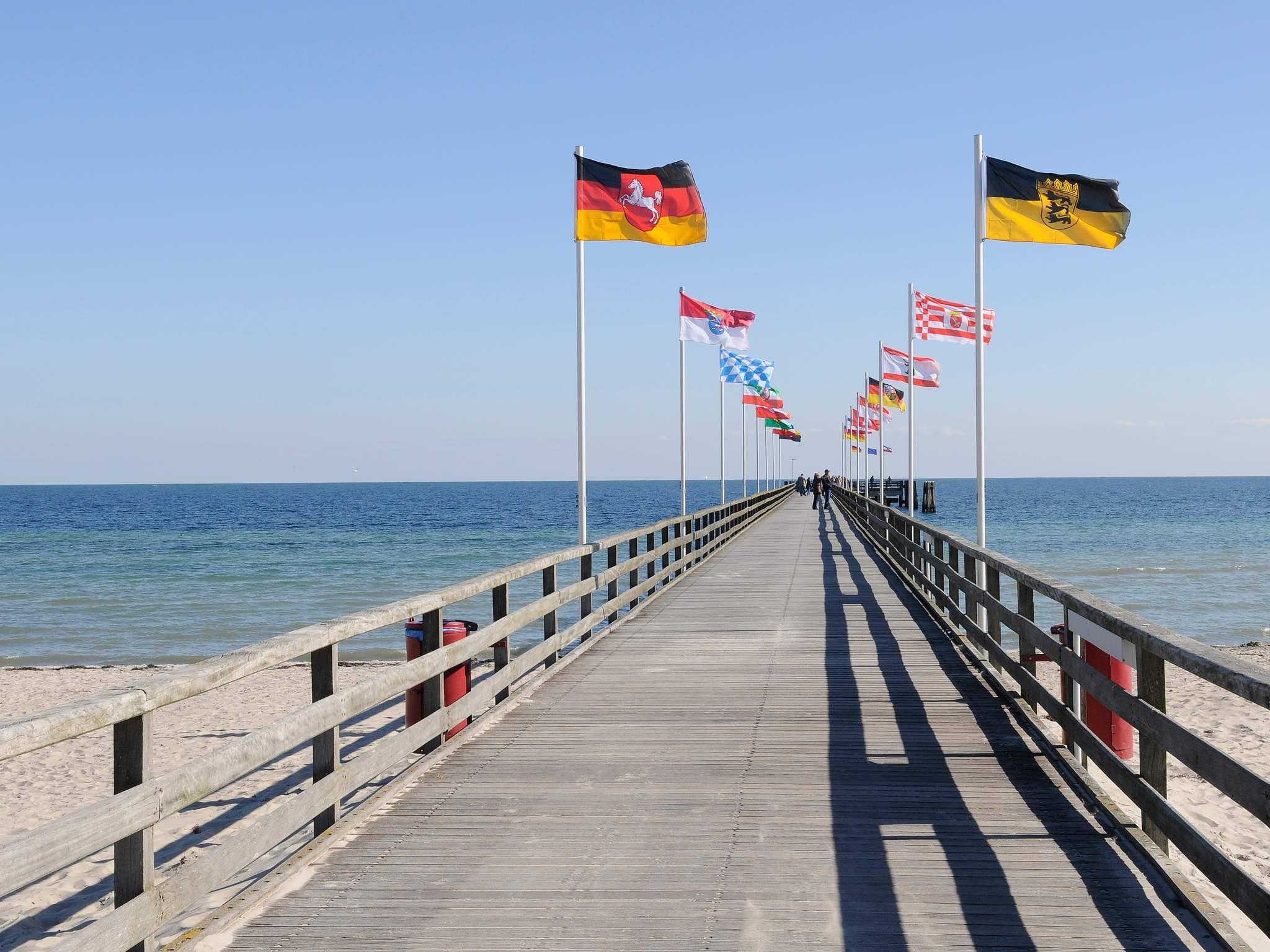In Großenbrode finden Sie einen wunderschönen 1,5 km langen Südstrand mit weißem, feinkörnigen Sand. Genießen Sie hier sonnige Stunden im gemütlichen Strandkorb, während Sie planschenden Kinder im sanft abfallenden Wasser dabei immer im Blick haben. Außer dem herrlichen Strand zum Spielen und der Ostsee zum Planschen freuen sich Kinder über die zahlreichen Freizeitaktivitäten. Direkt neben der Seebrücke liegt das große Piratenschiff "Grobi" und auch der Minigolfplatz und die Skateanlage liegen unmittelbar am Südstrand. Für die kulinarische Pause lohnt sich ein Bummel auf der 1,5 km langen Promenade, hier finden Sie gemütliche Restaurants, leckere Imbisse, köstliche Eisdielen und verschiedene Geschäfte. Mit nur ca. 150 m zum Strand und der Promenade bietet die Wohnung einen hervorragend Ausgangspunkt für schöne Strandferien sowie Möglichkeiten, die landschaftlich reizvolle Umgebung zu erforschen. Für den Strandbesuch mit Hunden eignet sich der Weststrand, wo Sie die Möglichkeit haben, Ihren Hund an der Leine mitzuführen. Für den freien Auslauf ist eine gesonderte Fläche „Am Kai“ zur Verfügung gestellt. Nach einem aktiven Tag in der Natur und mit vielen Unternehmungen können Sie sich anschließend wunderbar in der Sauna entspannen. Ganz in der Nähe befinden sich auch die Fehmarnsundbrücke und der bekannte und beliebte Freizeitpark Hansapark.