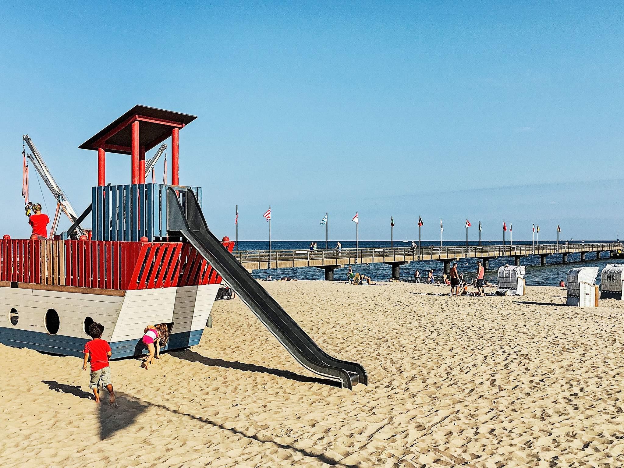 In Großenbrode finden Sie einen wunderschönen 1,5 km langen Südstrand mit weißem, feinkörnigen Sand. Genießen Sie hier sonnige Stunden im gemütlichen Strandkorb, während Sie planschenden Kinder im sanft abfallenden Wasser dabei immer im Blick haben. Außer dem herrlichen Strand zum Spielen und der Ostsee zum Planschen freuen sich Kinder über die zahlreichen Freizeitaktivitäten. Direkt neben der Seebrücke liegt das Piratenschiff "Grobi" und auch der Minigolfplatz und die Skateanlage liegen unmittelbar am Südstrand. Für die kulinarische Pause lohnt sich ein Bummel auf der 1,5 km langen Promenade, hier finden Sie gemütliche Restaurants, leckere Imbisse, köstliche Eisdielen und verschiedene Geschäfte.