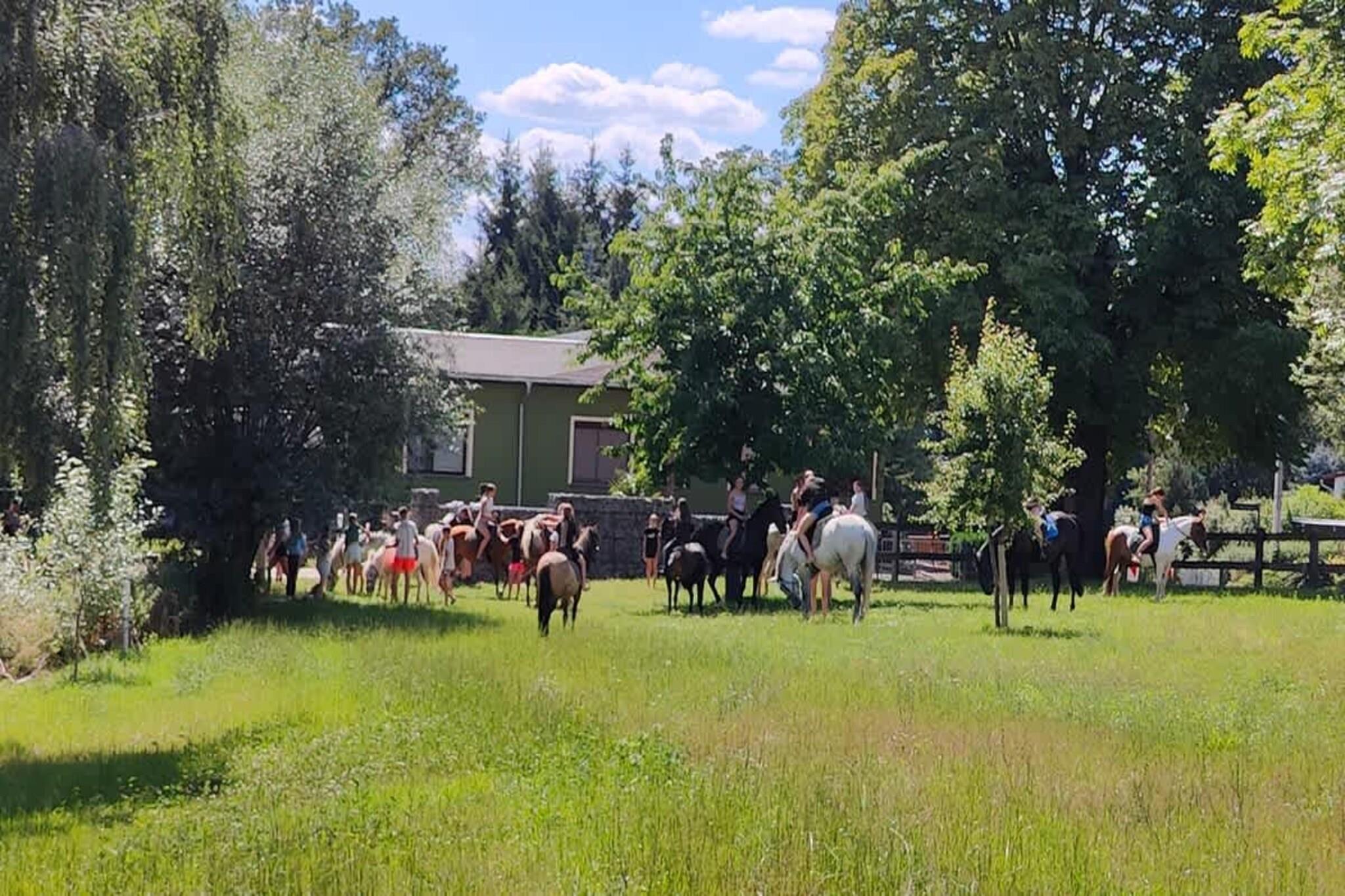 Dieses charmante Tiny House liegt eingebettet zwischen zwei kleinen Naturteichen und begeistert mit einer riesigen Terrasse samt Grill und gemütlichem Kaminofen. Umgeben von Pferdekoppeln, einem Offenstall in Sichtweite und der bekannten Reitanlage Hexenburg, genießen Sie hier pure Erholung in ländlicher Umgebung. Das modern ausgestattete Ferienhaus verfügt über eine Spülmaschine, einen Kühlschrank mit Gefrierfach sowie ein eigenes Bad mit Dusche und WC. Für erholsame Nächte stehen zwei Schlafgalerien mit Doppelbetten für insgesamt fünf Personen bereit. Zusätzlich kann die großzügige Sofalandschaft als Schlafgelegenheit genutzt werden – perfekt für Familien oder kleine Gruppen. Highlight: Ab sofort steht Ihnen eine holzbeheizte Fasssauna (gegen Gebühr) im Innenhof zur Verfügung. Nach einer Wanderung in der Sächsischen Schweiz oder einem Ausflug nach Dresden bietet sie die ideale Möglichkeit, zur Ruhe zu kommen und neue Energie zu tanken. Das gesamte Umfeld mit den beiden Teichen sowie der Reitanlage kann mitgenutzt werden. Bitte betreten Sie die Stallungen nur nach Rücksprache mit den Pferdebesitzern und verzichten Sie darauf, die Pferde eigenständig zu füttern oder zu streicheln. Wer mag, kann direkt vor Ort Reitunterricht oder einen Geländeritt im Reitzentrum buchen. Für längere Aufenthalte stehen zudem eine Waschmaschine und ein Trockner zur Verfügung (jeweils 5 EURO Gebühr). Die Sauna ist ebenfalls gegen Gebühr.