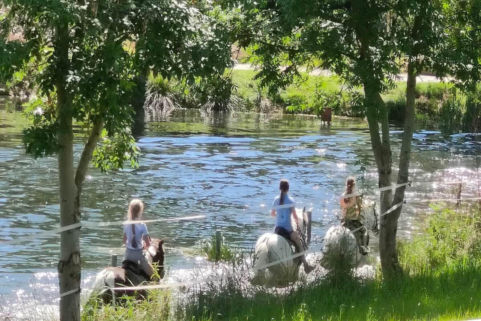 , Wohnzimmer(Doppelschlafcouch, Esstisch, Kaminofen), Küche(Kochplatte, Wasserkocher, Wasserkocher, Toaster, Kaffeemaschine, Kühlschrank), Galerieschlafzimmer(Einzelbett, Doppelbett), Galerieschlafzimmer(Doppelbett), Badezimmer(Dusche, Waschbecken, Toilette, Föhn), Sauna(Gemeinschaftliche Nutzung mit anderen Gästen, gegen Gebühr), Erste-Hilfe-Station, Erlebnissee, Kinder Spielparadies, Trockner(Gemeinschaftliche Nutzung mit anderen Gästen, gegen Gebühr), Heizung, Klimaanlage, Terrasse, Tischtennisplatte, Hochstuhl, Bügeleisen, Föhn, Fliegenfenster, Plancha, Ladestation für Elektroautos, Babybett (kostenpflichtig), Carbon monoxide detector, Cleaning before checkout, Cleaning products, Emergency exit, Extra pillows and blankets, Long term stays allowed, Room-darkening shades, Rural, Shower gel, Village, Washer in common space, Wine glasses
