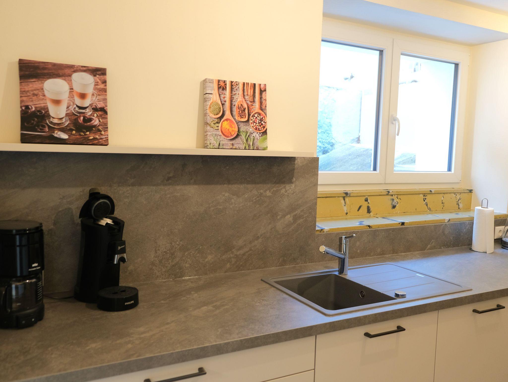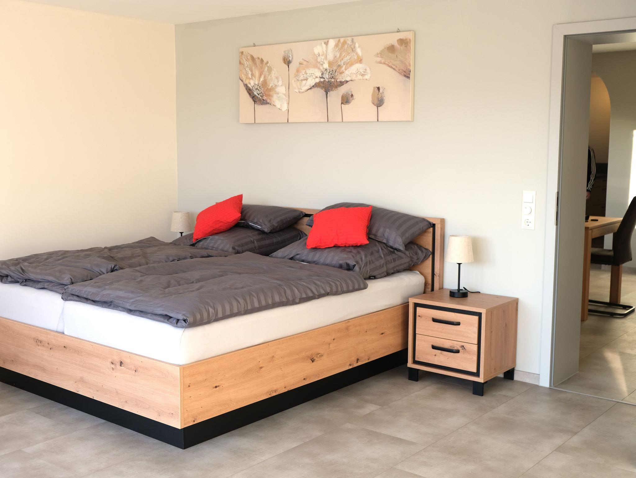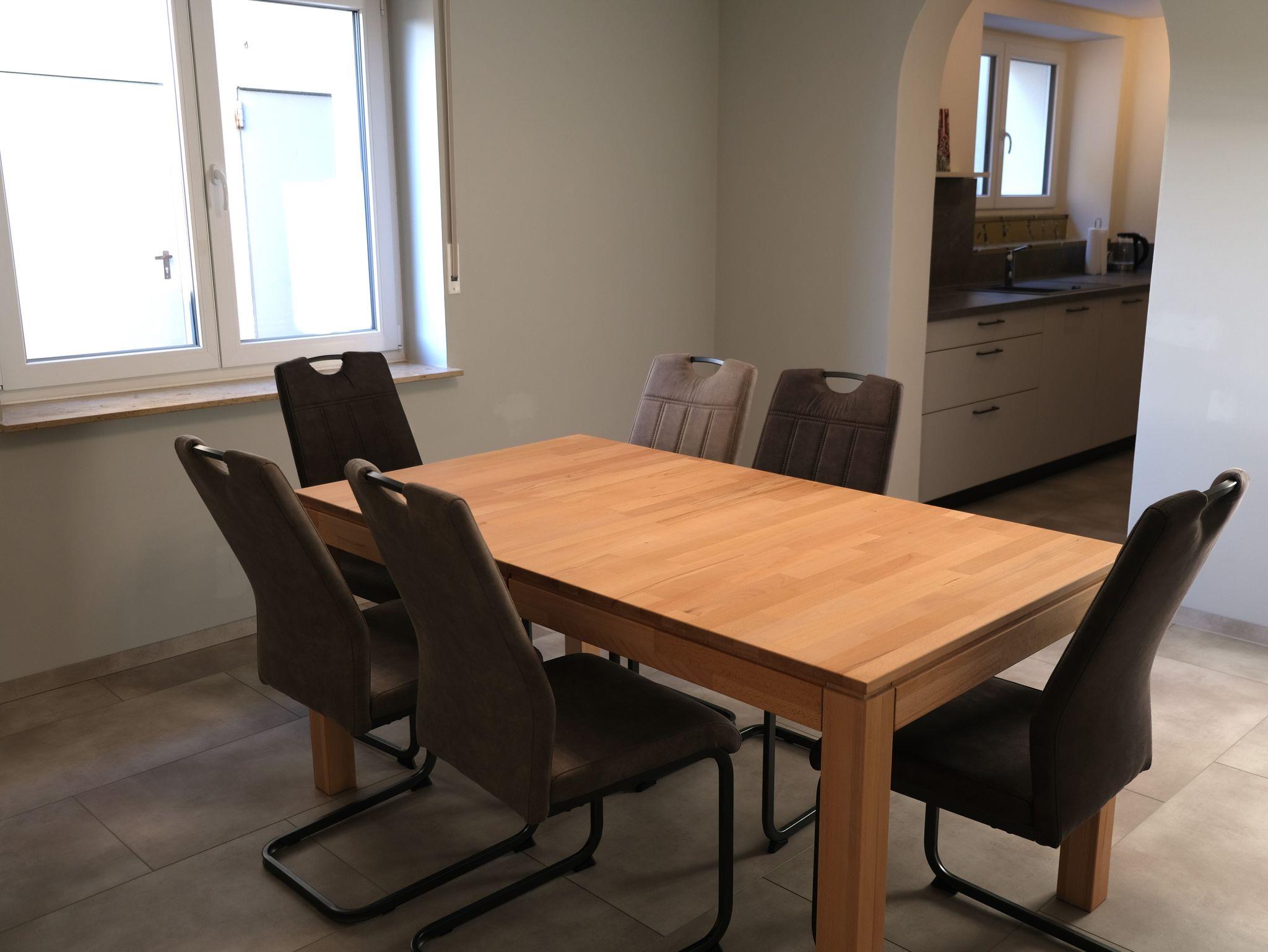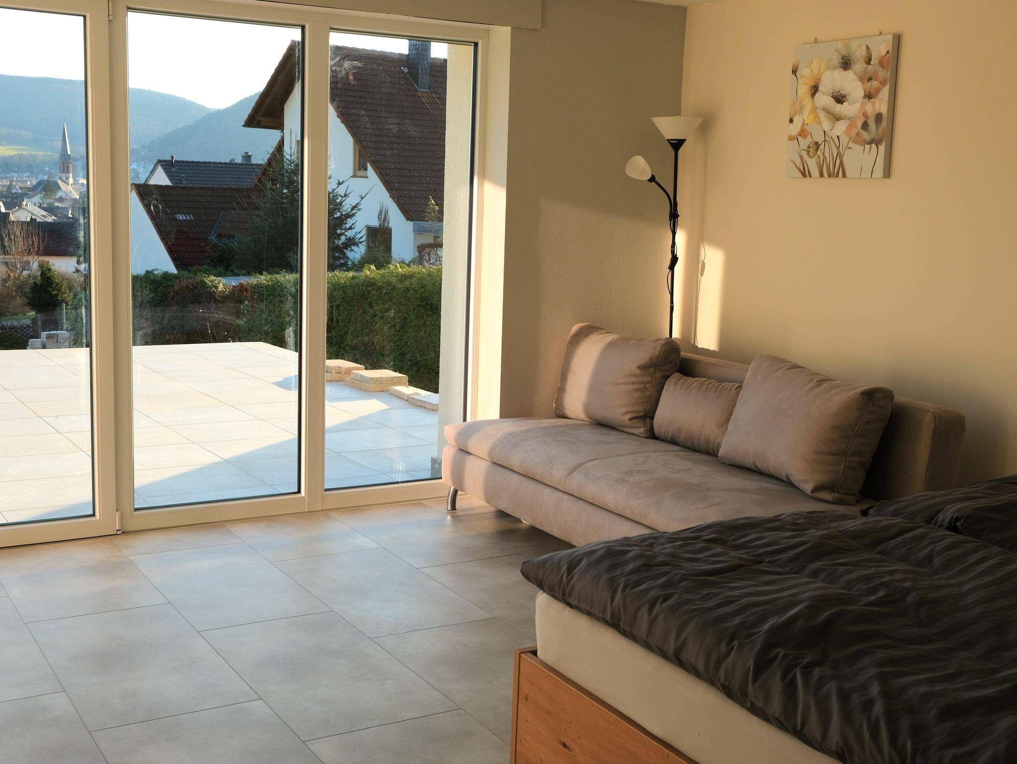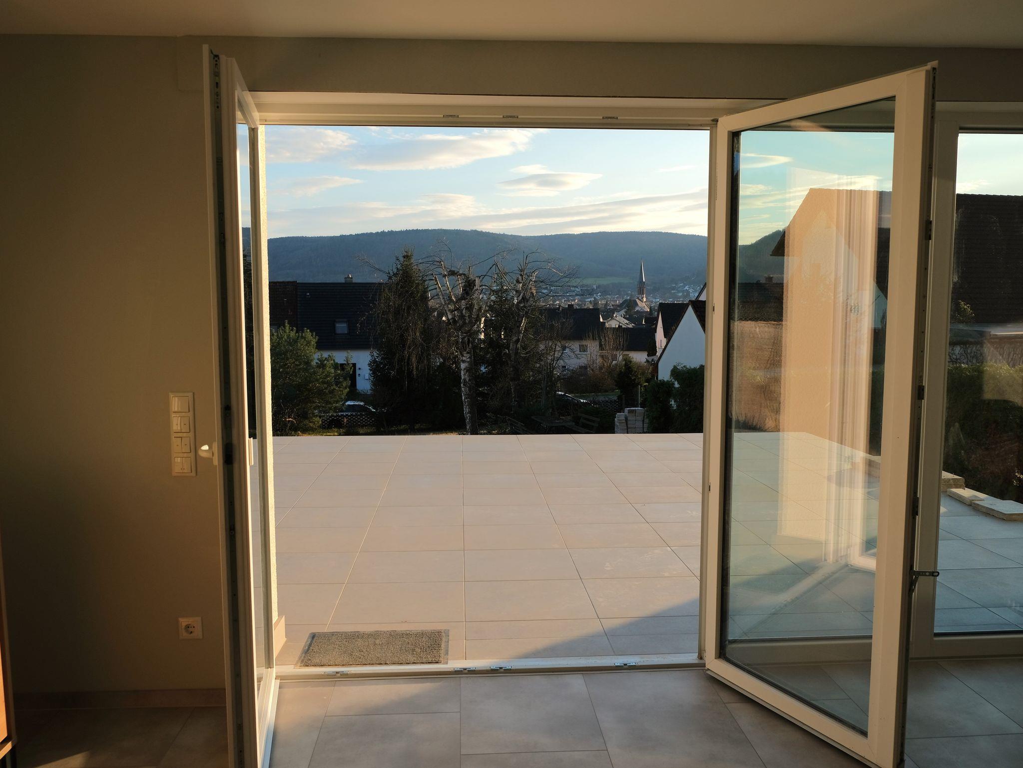 Unsere kernsanierte Ferienwohnung mit ca. 74m² Wohnfläche bietet Platz für bis zu 5 Personen. Die riesige, 50m² Sonnenterasse mit Blick auf den Spessart und Odenwald sowie auf das Kloster Engelberg, lädt zum Entspannen oder zum gemeinsamen Essen ein. Das Appartement verfügt über 2 Schlafzimmer mit jeweils sehr komfortablem Doppelbett und einem hochwertigen Smart TV mit Sattelitenfernsehen. Beide Schlafzimmer sind durch ihre Fenster taghell und das größere hat direkten Zugang zur Terrasse. Die komplett ausgestattete Wohnküche mit Geschirrspüler, Kühlschrank inkl. Gefrierfach, Herd, Backofen, Mikrowelle, Wasserkocher, Eierkocher, Toaster und Kaffeemaschine lässt keine Wünsche offen. Der große Tisch mit seinen bequemen Stühlen und der 65 Fernseher, sowie vorhandene Gesellschaftsspiele eignen sich super für entspannte Familienabende. Das geräumige Badezimmer mit ebenerdiger Rainshower, großem Spiegel und Föhn rundet das Gesamtbild ab. Darüber hinaus gibt es ein zweites, separates WC. Waschmaschine und ein Trockner stehen ebenfalls zur Verfügung. Die Fewo verfügt über eine eigene separate Haustür. Das WLAN und die Parkplätze vor dem Haus können Sie kostenfrei nutzen.