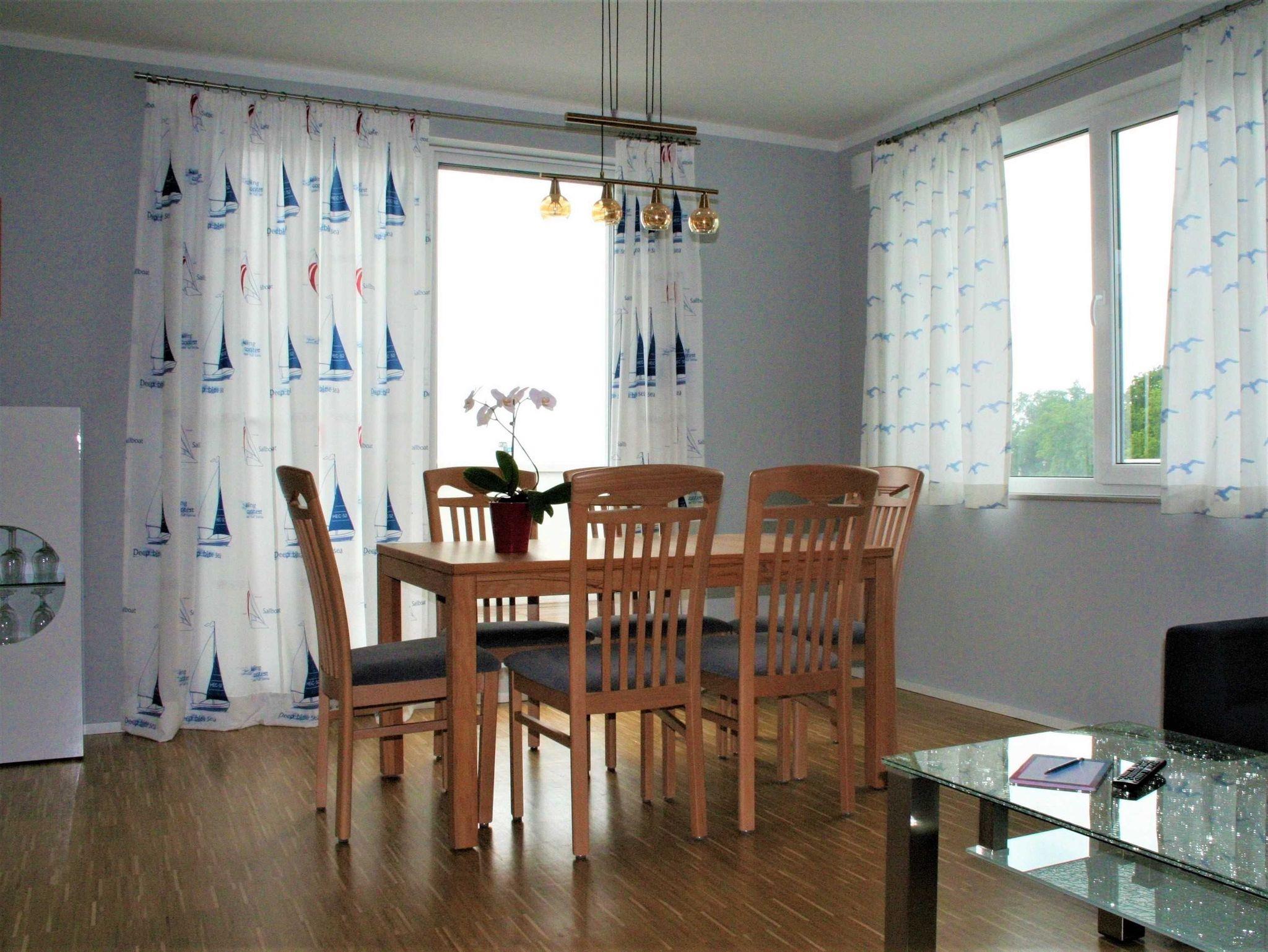 - Grosszügiges Wohn-/Esszimmer mit ausziehbarem Esstisch (bis 8 Personen + Kinderstuhl), Schlafsofa, Flachbild-TV, Radio, Internet