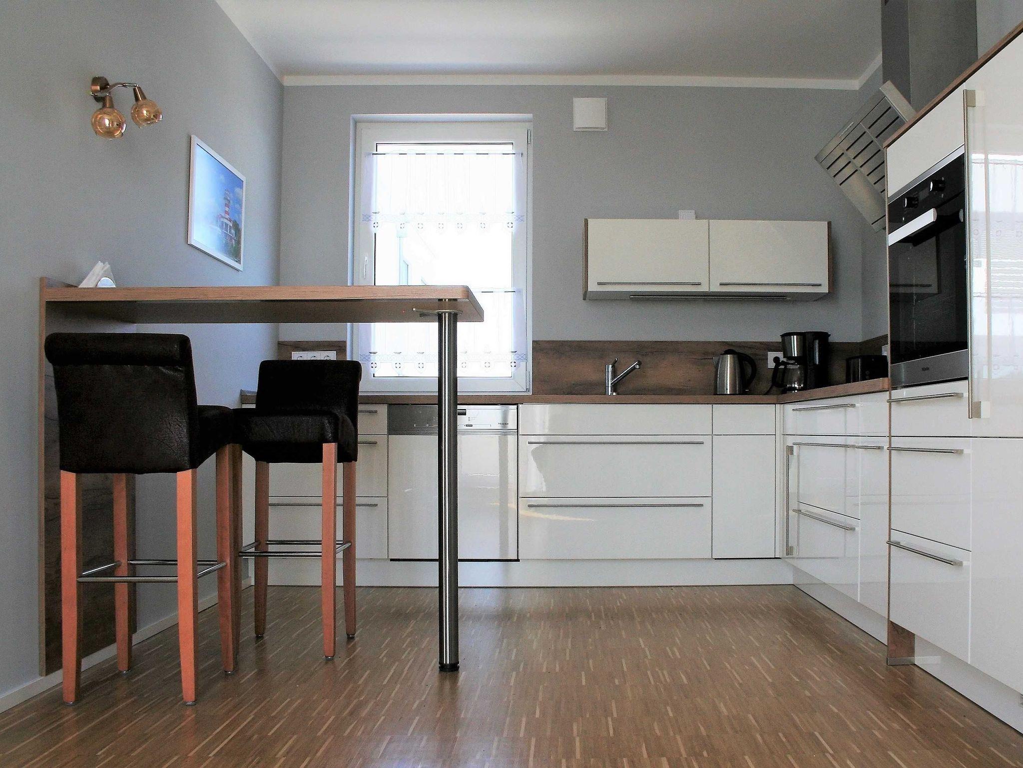 - Exklusiv ausgestattete Küche mit Ceran-Kochfeld, Backofen, Kühlschrank, Spülmaschine (alles Miele), Doppelspüle, Kaffeemaschine, Wasserkocher, Bartisch und Barstühle