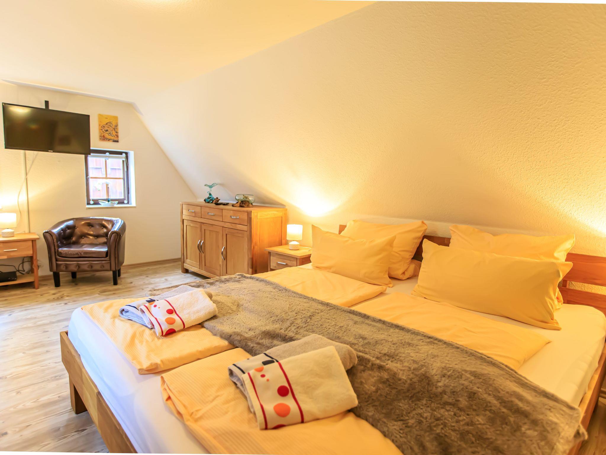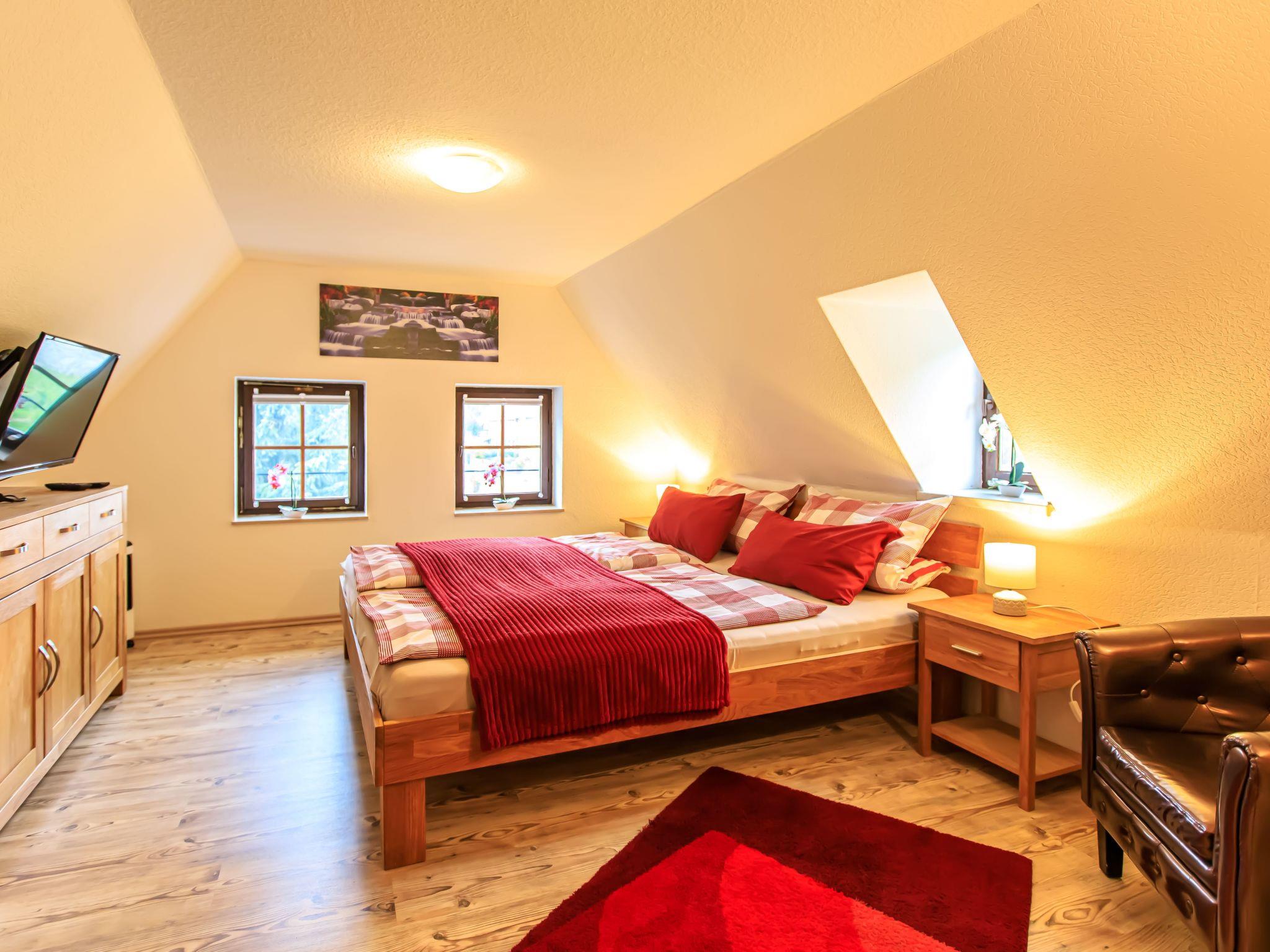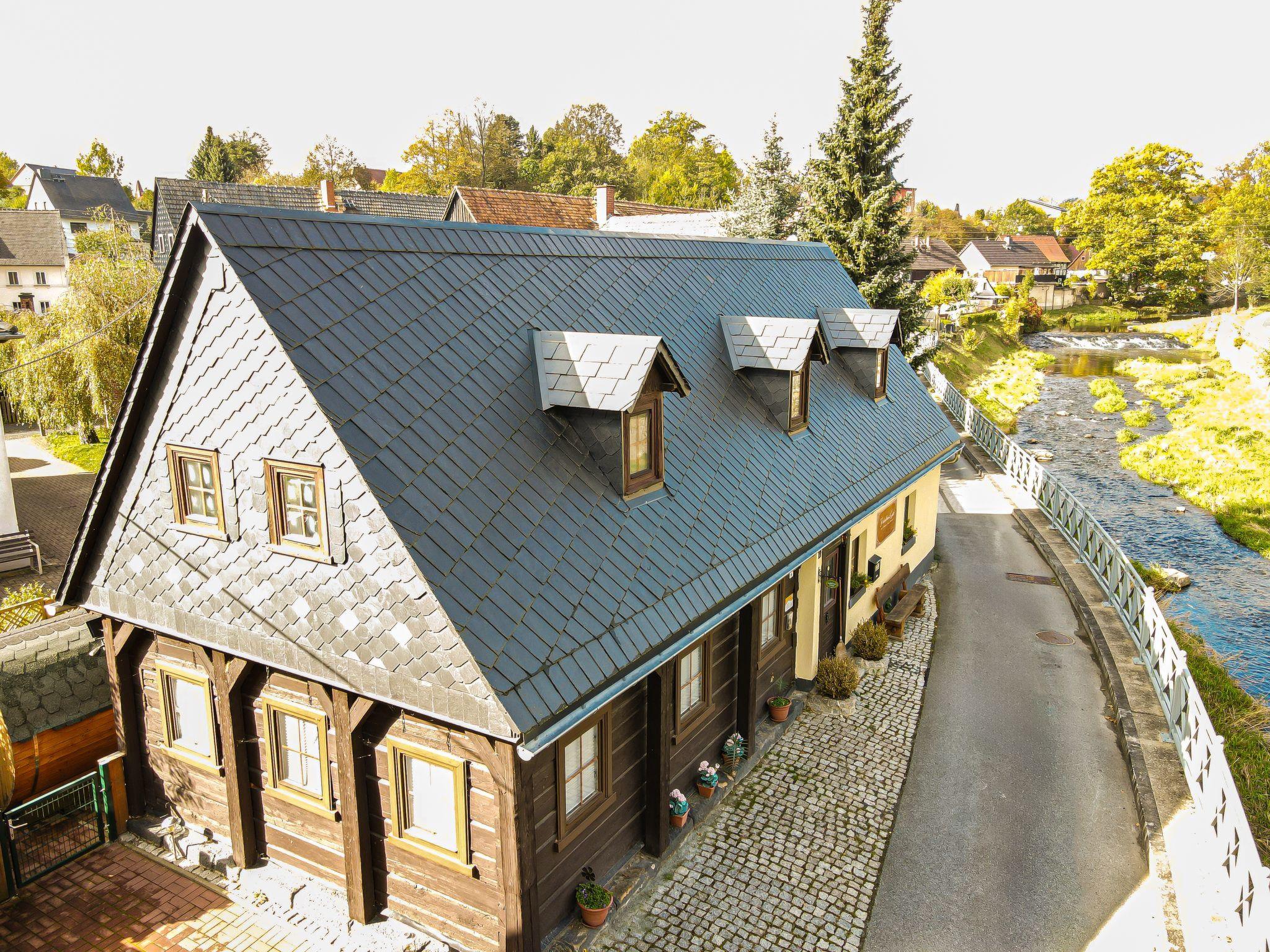 Unser romantisches Umgebindehaus befindet sich im Textildorf Großschönau in der wunderschönen Oberlausitz. Gelegen direkt in der Flußaue der wild-romantischen Mandau und im Dreiländereck Sachsen - Tschechien - Polen. Großschönau zählt zu den schönsten Dörfern der Oberlausitz und ist das Tor zum Naturpark Zittauer Gebirge. Mit einem umfassenden Ensemble an historischen Umgebindehäusern ist unsere kleine Gemeinde ein Freilichtrefugium der besonderen Art. Es gibt überall traumhafte Häuser und eine romantische Landschaft zu entdecken. Unser Ferienhaus befindet sich direkt an der Mandau, einem Flüsschen, dessen Rauschen Balsam für die Seele ist. Vom Haus aus kann man unzählige Spaziergänge und Wanderungen unternehmen, zB entlang der Mandau, viele Wege sind gerade und damit für jedes Alter von Mensch und Tier geeignet. Das Ferienhaus Sissi wurde 1790 erbaut als klassisches Umgebindehaus. In der ehem. Webstube (Blockstube) befindet sich heute das Wohnzimmer. Alle SZ befinden sich im Dachgeschoss, welches über eine neu installierte, dennoch steile Treppe (welche aber dennoch bequem begehbar ist) erreichbar ist. Das Haus wurde nach dem Hochwasser 2010 umfassend saniert und von Juni 2020 bis Juni 2021 nochmals komplett renoviert und modernisiert. Das Bad ebenfalls 2020 nochmal überarbeitet und um ein Innenwhirlpool ergänzt. Bitte beachten Sie die Deckenhöhe von 2,00 m im gesamten Haus!!! Das Haus "Sissi" wird komplett mit grünem Strom betrieben und ist ganzjährig belegbar. Auch haben wir 2020 eine komplett neue, hochmoderne und umweltfreundliche Elektroheizanlage der Firma Wibo eingebaut. Sie wohnen bei uns vollkommen umweltfreundlich und klimaneutral. Beide Schlafzimmer und das Wohnzimmer verfügen über einen eigenen TV mit DVD-Player, im Wohnzimmer erwartet Sie zudem ein Video Player sowie eine Vielzahl an interessanten DVD- und Videofilmen Die Idealbelegung liegt bei 4-5 Personen, alternative Schlafmöglichkeit im Wohnzimmer. Hunde sind gern gesehen und Willkommen. Das Grundstück ist traditionell bei historischen Umgebindehäusern sehr klein, der hintere Hausbereich ist komplett umzäunt und gepflastert, aber nicht wirklich größer als eine große Terrasse, 45 qm groß. Unseren Gästen steht zudem ein 2 bis 3-Personen-Außenwhirlpool und eine Außen-Faßsauna zur Verfügung, im Haus selber befindet sich eine Infrarot-Saune (Wärmekabine bis 65 Grad, Innen: 1,20 m x 1 m) und ein 1-2 Personen Whirlpool im Badezimmer.