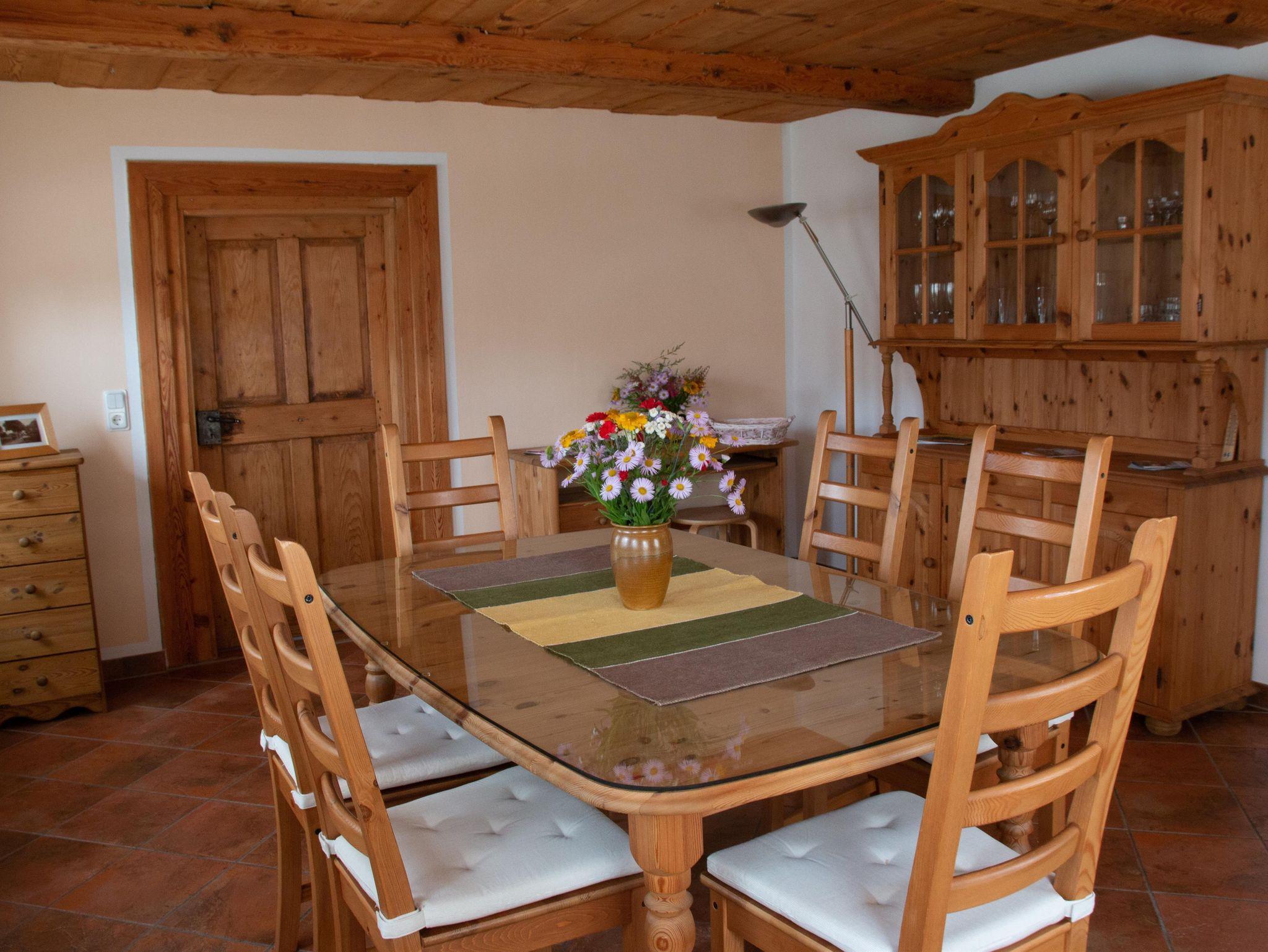 • Küche und Esszimmer mit großem Tisch für gemeinsame Essen