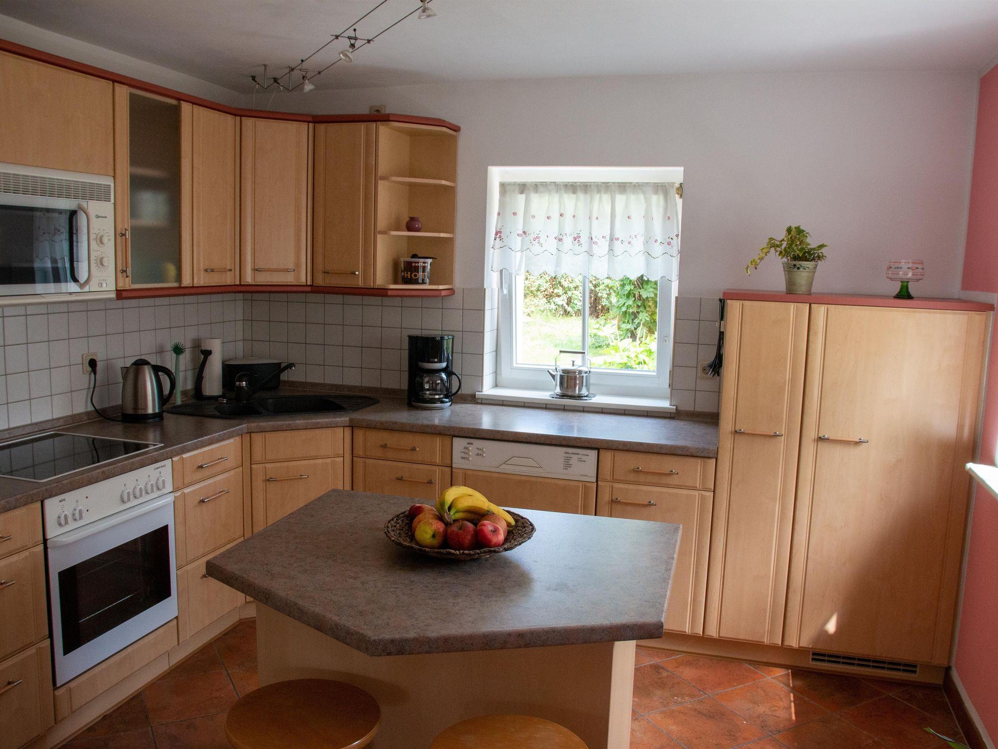 • voll ausgestattete Küche inkl. Cerankochfeld, Backofen, Kühlschrank, Mikrowelle, Spülmaschine, Kaffeemaschine, Wasserkocher, Toaster