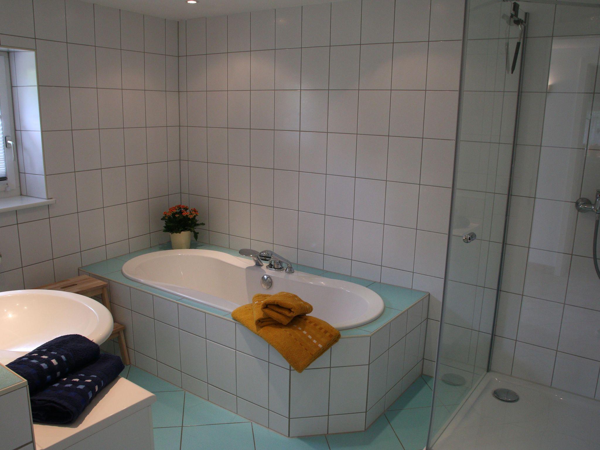 • Badezimmer mit Badewanne, Dusche und WC