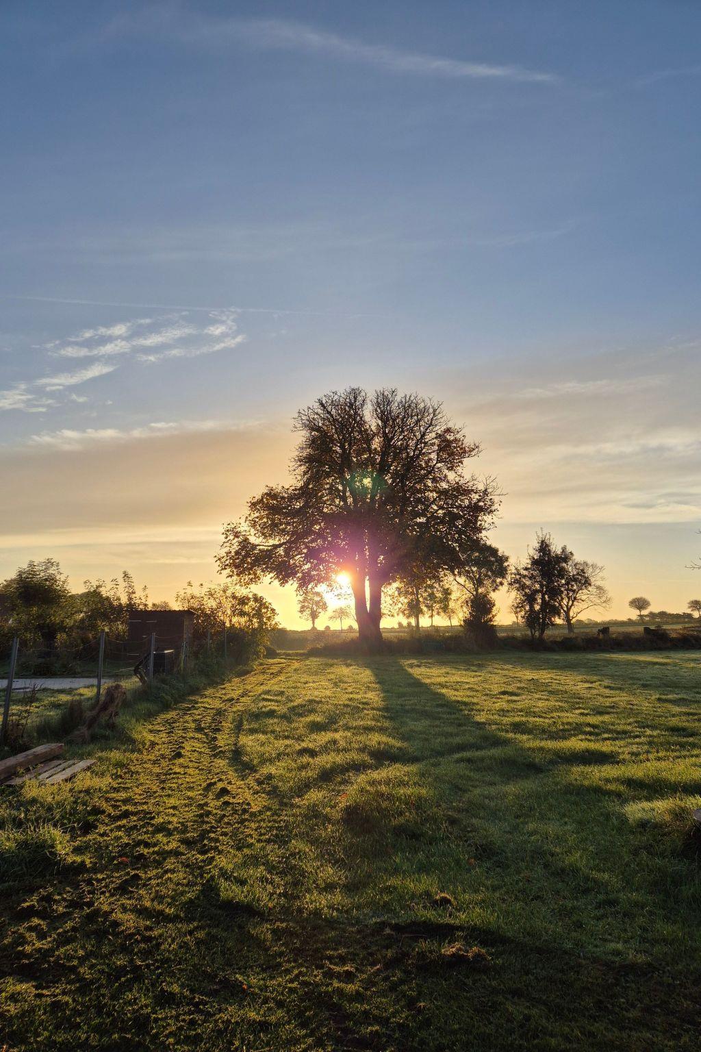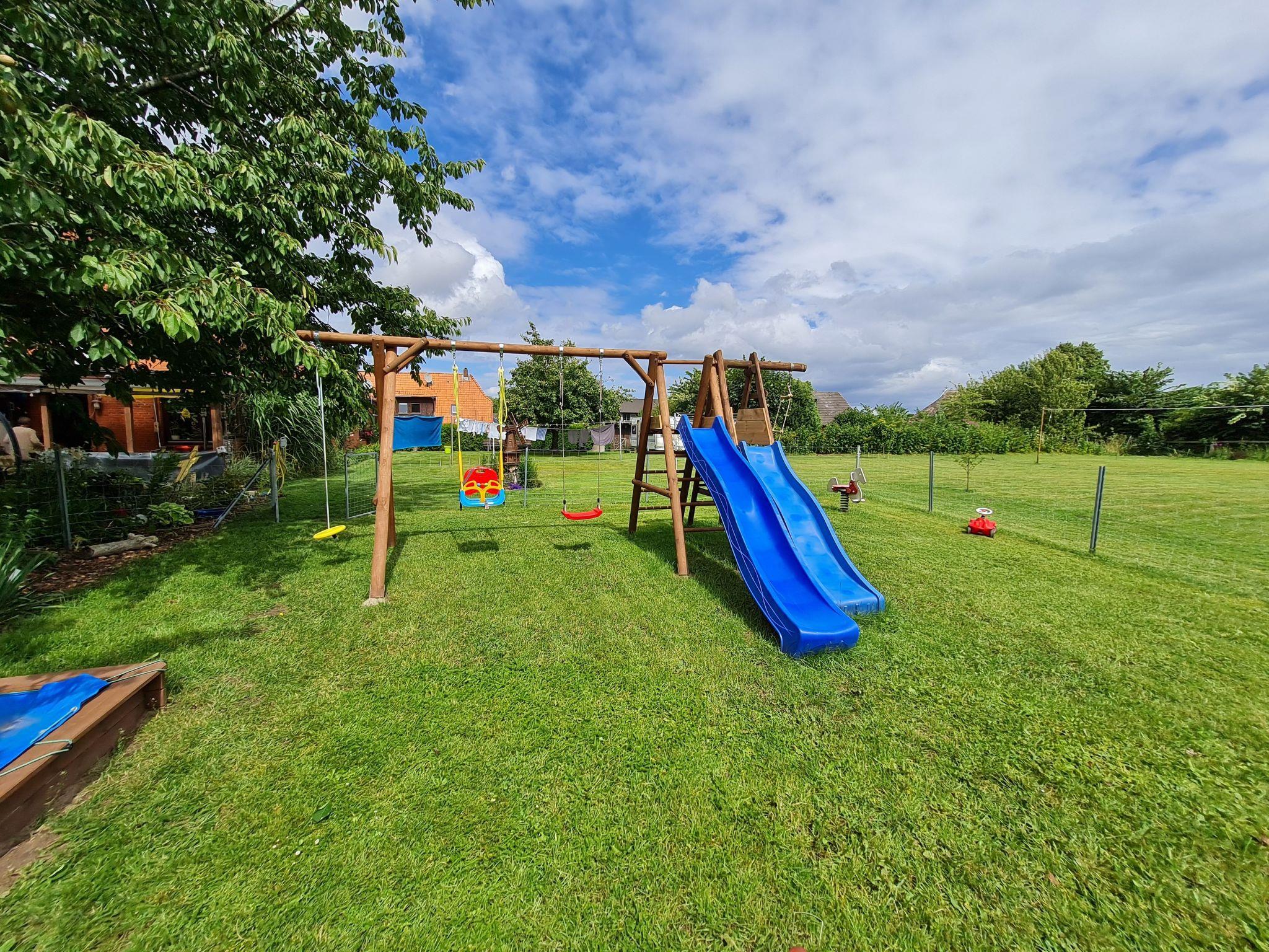 Direkt vorm Haus befindet sich eine nach Westen ausgerichtet Terrasse mit einem Grill.Wenn man um das Haus herum geht gibt es einen kleinen eingezäunten Spielplatz mit Sitzgelegenheiten, dieser wird von uns genutzt und kann von den Gästen mitbenutzt werden.