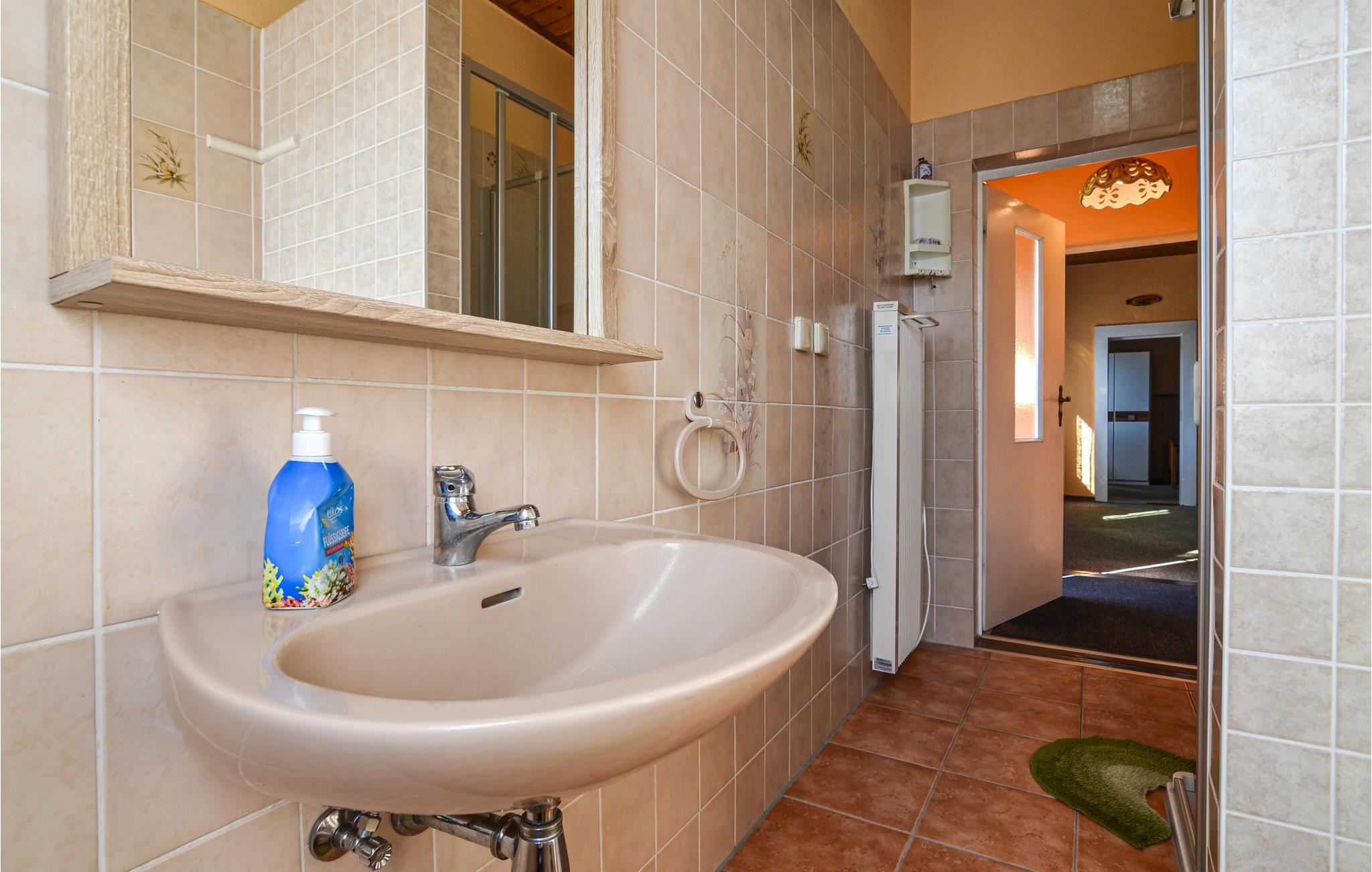 Die Sitzgelegenheit im Wohnraum kann als Schlafcouch für zwei weitere Gäste umfunktioniert werden. Neben dem Wohnzimmer befindet sich ein Schlafzimmer mit zwei Einzelbetten und das helle Badezimmer ist mit einer Dusche ausgestattet.