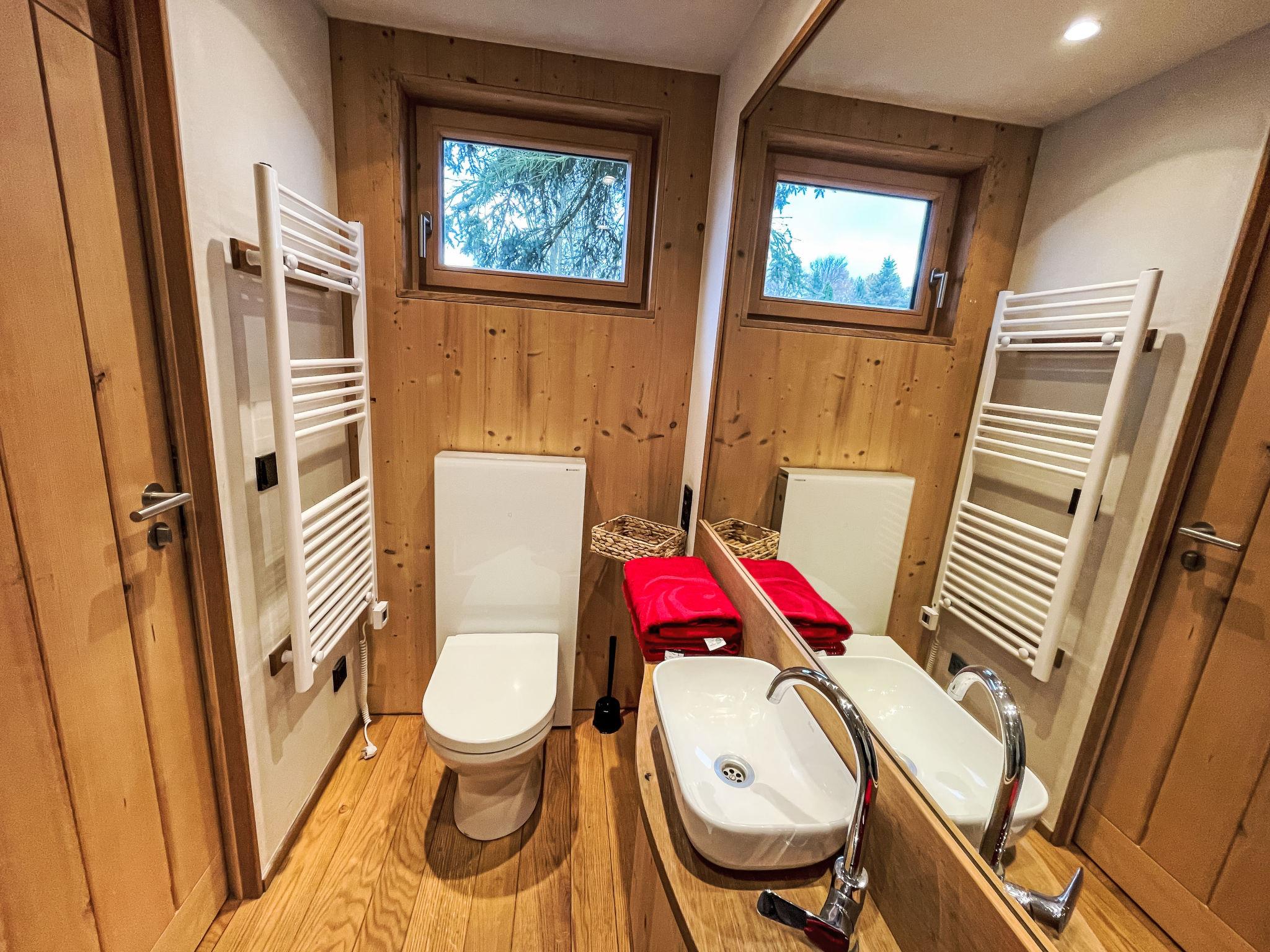 "Tiny House Cottage Herbert", 1-Zimmer-Mobilheim 20 m2. Hell, sehr gemütlich und mit viel Holz eingerichtet: Wohn-/Schlafzimmer mit 1 Doppelbett (2 x 80 cm, Länge 200 cm), 2 Schlafmöglichkeiten (2 x 80 cm, Länge 200 cm), Dusche/WC und Sat-TV. Kleine, offene Küche im Eingang (2 Kochplatten, Backofen, Wasserkocher, elektrische Kaffeemaschine). Holzdielenboden. Kleiner Gartensitzplatz. Terrassenmöbel. Schöne Sicht auf den Garten. Zur Verfügung: Internet (WLAN, gratis). Bitte beachten: Nichtraucher-Haus.