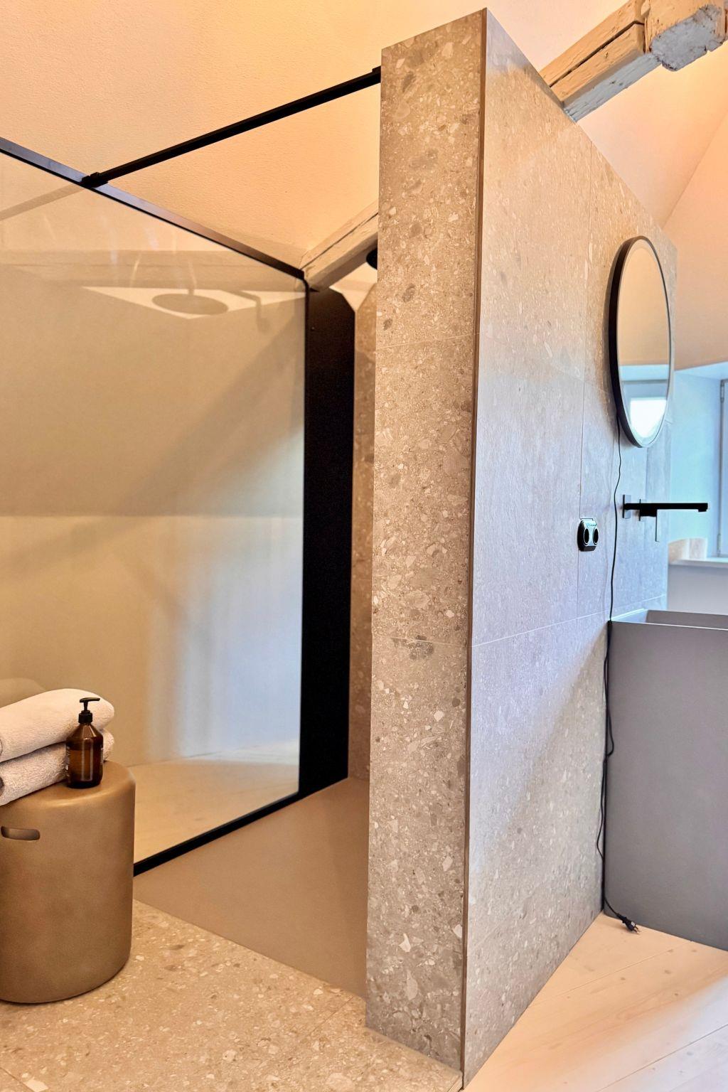 Das denkmalgeschützte Umgebindehaus von 1786 zeichnet sich durch eine hochwertige Innenausstattung mit Holzböden, Naturstein und modernen Möbeln aus, die eine warme und einladende Atmosphäre schaffen. Die Schlafzimmer sind mit komfortablen Betten und flauschiger Bettwäsche ausgestattet, die garantieren, dass Sie sich nach einem erlebnisreichen Tag optimal erholen können. Das Badezimmer ist modern gestaltet und verfügt über eine Dusche, einen Haartrockner sowie hochwertige Sanitäreinrichtungen.