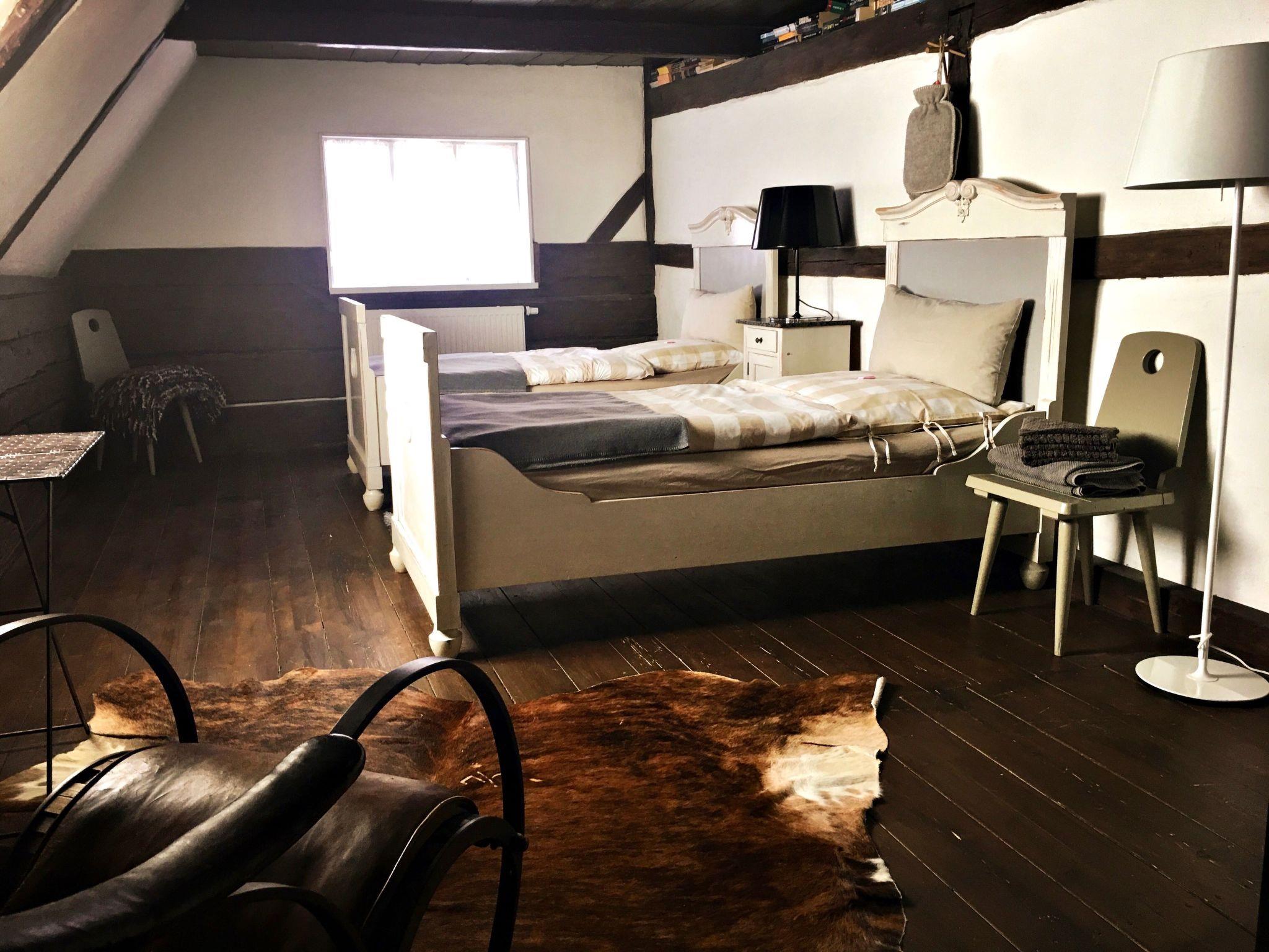 Das Haus bietet Platz für vier bis fünf Personen. Im Erdgeschoss gibt es ein altengerechtes schönes Bad mit Dusche, eine moderne Küche und ein Esszimmer. Über eine steile Treppe gelangen Sie in das Obergeschoss, wo sich zwei romantische Schlafzimmer befinden. Die originale Umgebindestube lädt ein zu gemütlichen Stunden in wohliger Atmosphäre. In jedem Raum werden Sie die Geschichte spüren ohne auf die Annehmlichkeiten unserer Zeit verzichten zu müssen.