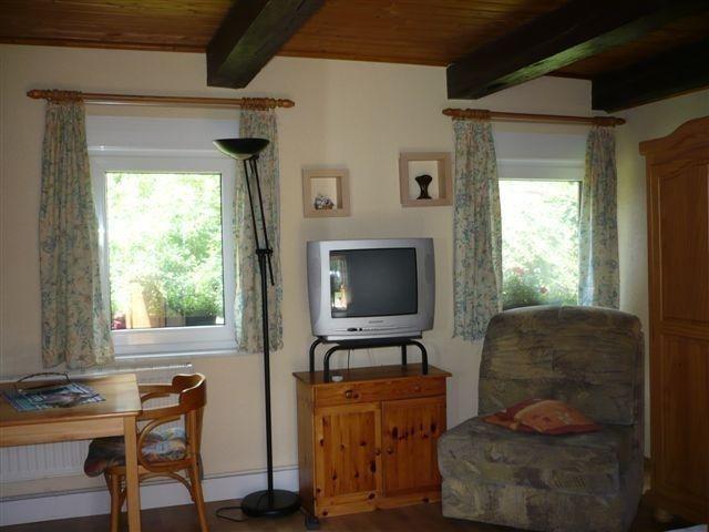 Das Ein Zimmer Appartement befindet sich in einem Fachwerkhaus anbei eine Terasseanliegend ein großzügig angelegter Garten mit Sitzgelegenheit und Grillecke / Ebenerdig. Das Zimmer ist mit einer Dusche, WC, TV, Doppelbett , Zentralheizung sowie mit einer Küchenzeile ausgestattet. Zudem finden Sie im ganzen Garten ausreichend Sitzgelegenheiten. Im angrenzenden Wintergarten kann man sich bei schlechtem Wetter aufhalten. Rad und Wanderweg vor der Haustür.