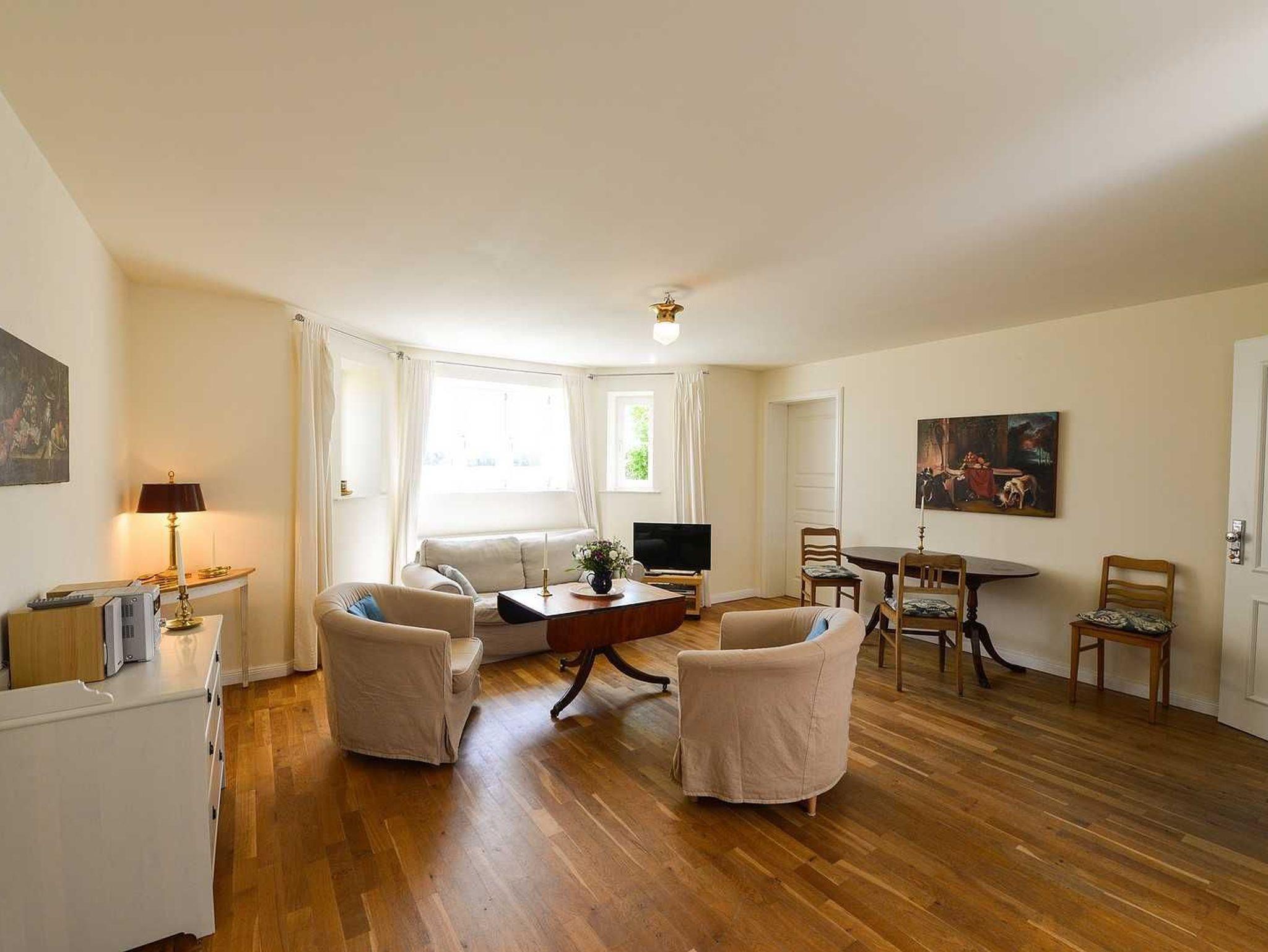 Die Ferienwohnung Nr. 1 befindet sich im Parterre / Souterrain des schönen Gutshauses. Die Wohnung für bis zu zwei Personen und in einer Größe von 50 m² ist mit Liebe zum Detail eingerichtet und besteht aus zwei Zimmern: Ein großes Wohnzimmer mit offener Küche (hochwertige Siemens-Geräte), ein großzügiges Schlafzimmer mit einem Doppelbett, einem großen Badezimmer mit Badewanne und einem kleinen Abstellraum.